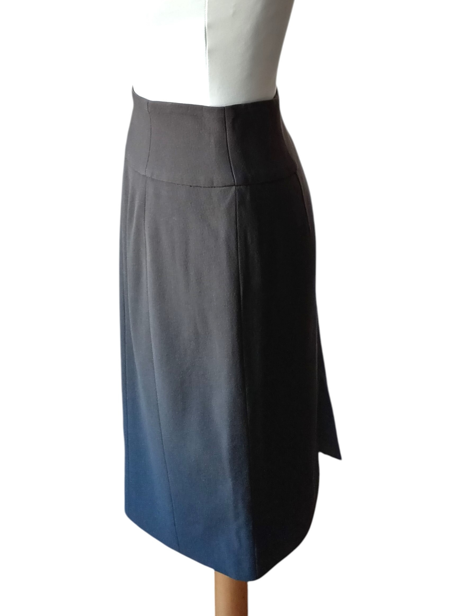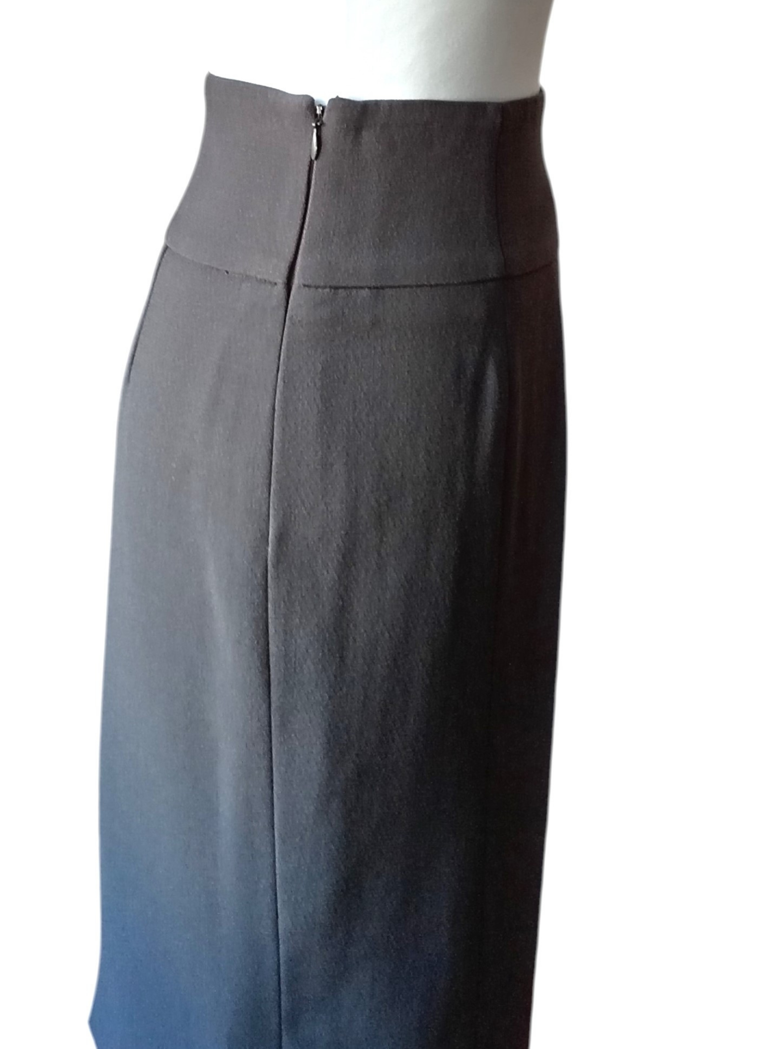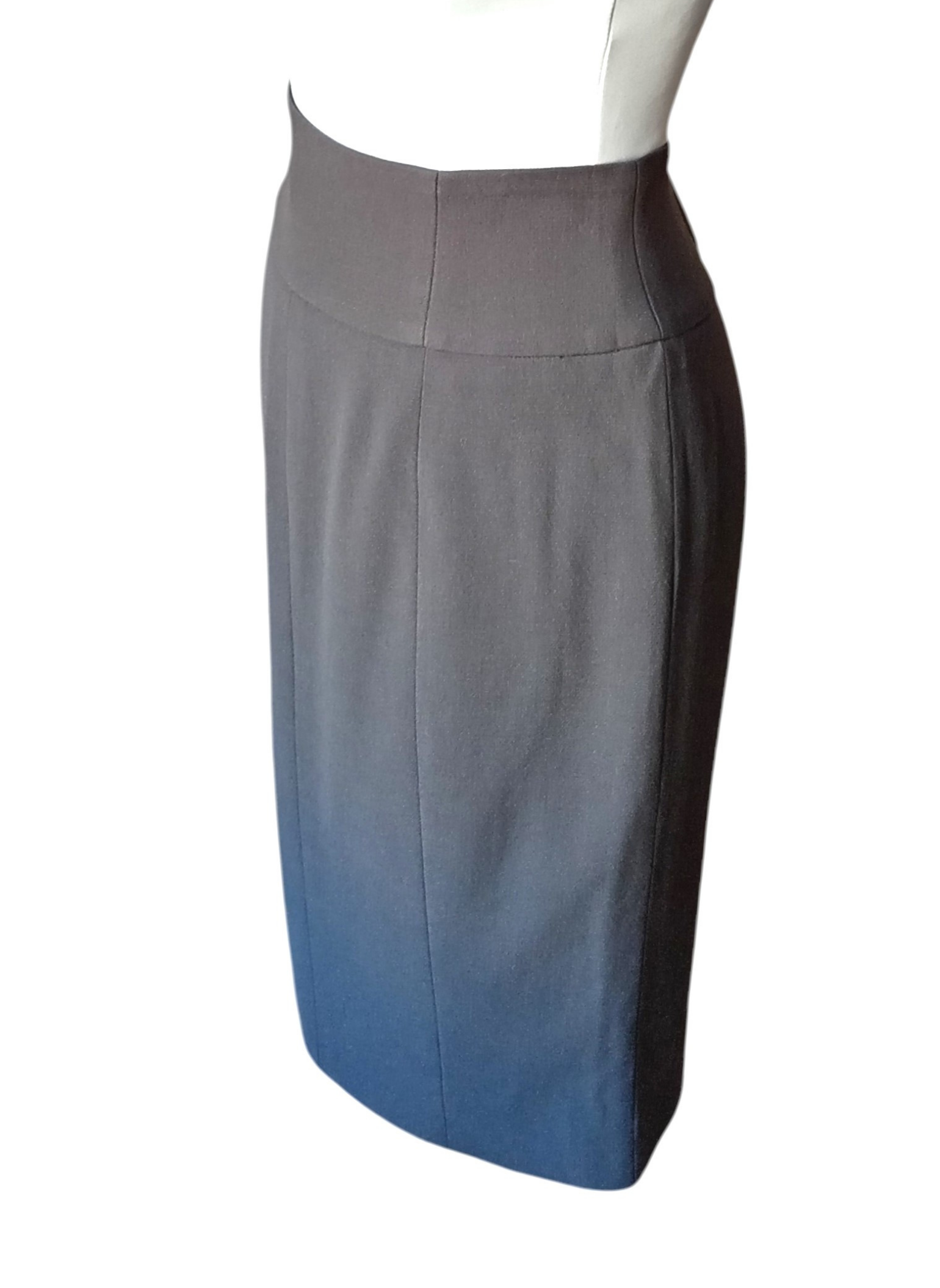 Falda Midi de lana de Giorgio Armani,color gris,lisa,con cintura entalla,cierre de cremallera lateral y abertuda abajo.Muy buen estado .talla 42 Italiana.Medidas: 36 cms de cintura x 46 cms de cadera x 60 cms de largo.