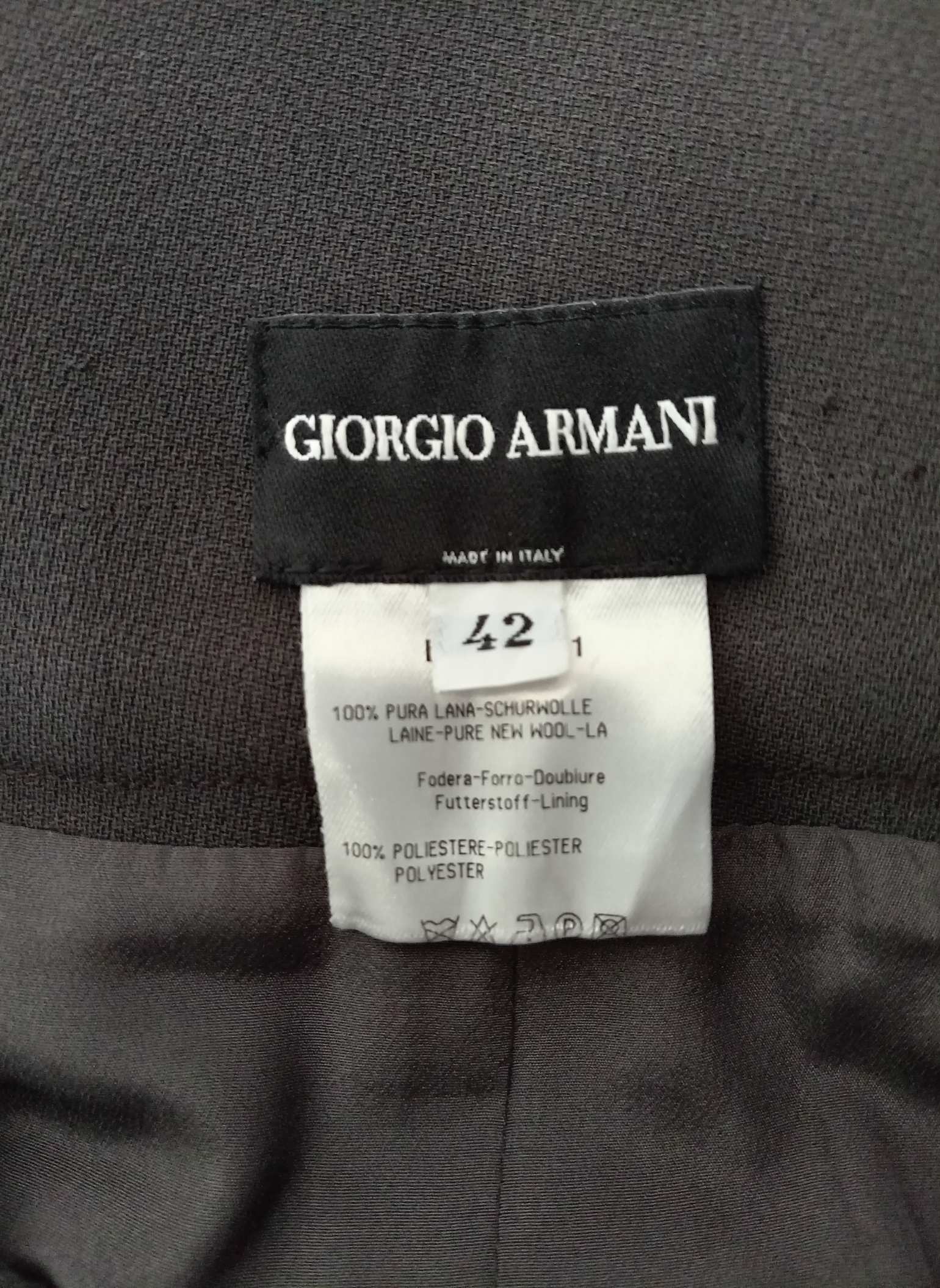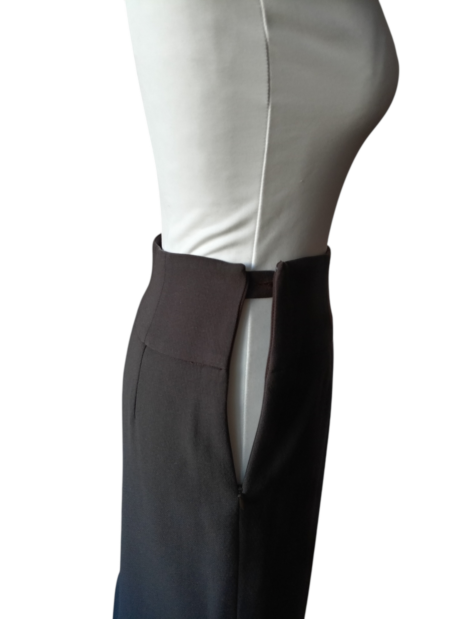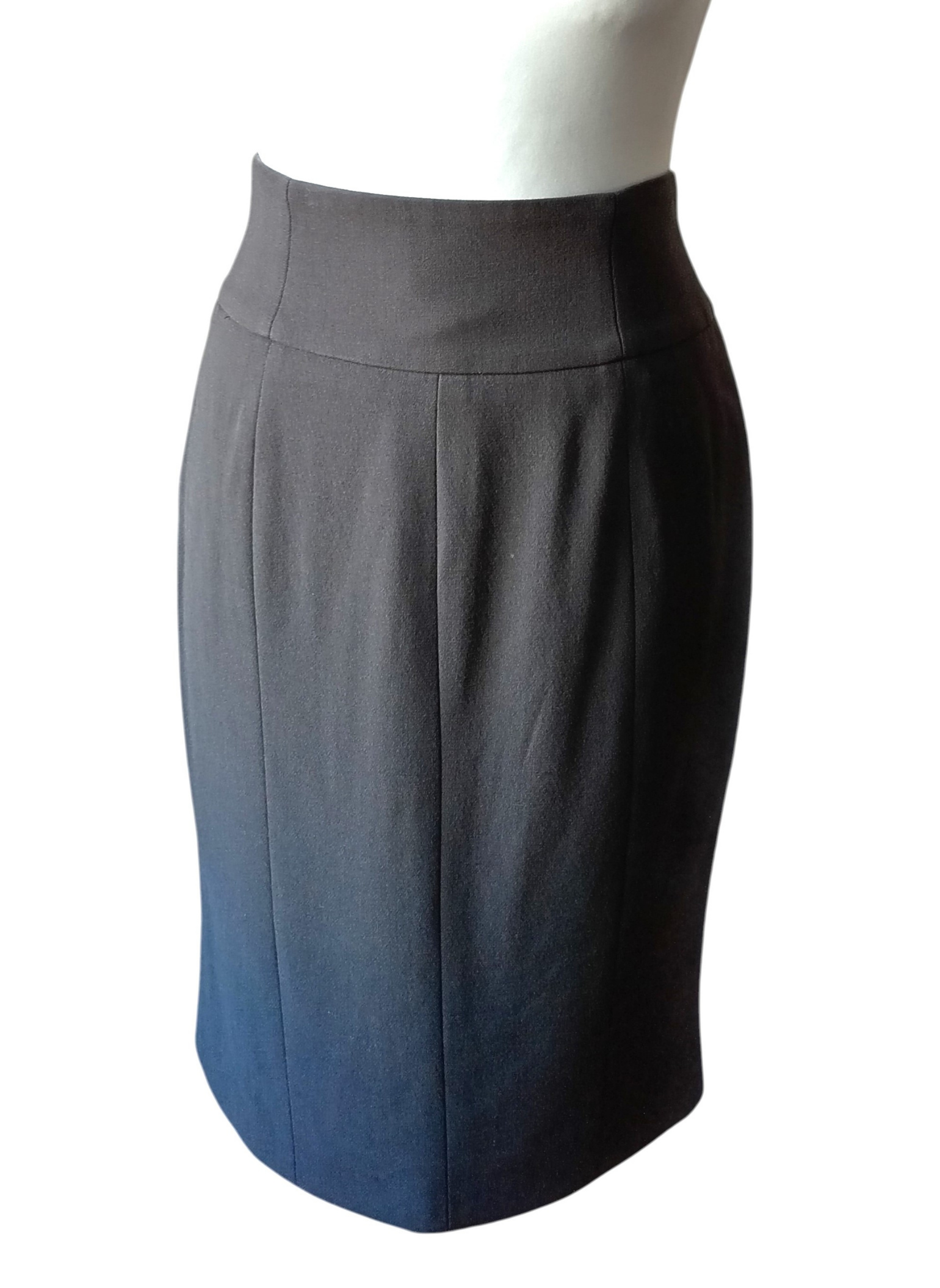 Falda Midi de lana de Giorgio Armani,color gris,lisa,con cintura entalla,cierre de cremallera lateral y abertuda abajo.Muy buen estado .talla 42 Italiana.Medidas: 36 cms de cintura x 46 cms de cadera x 60 cms de largo.