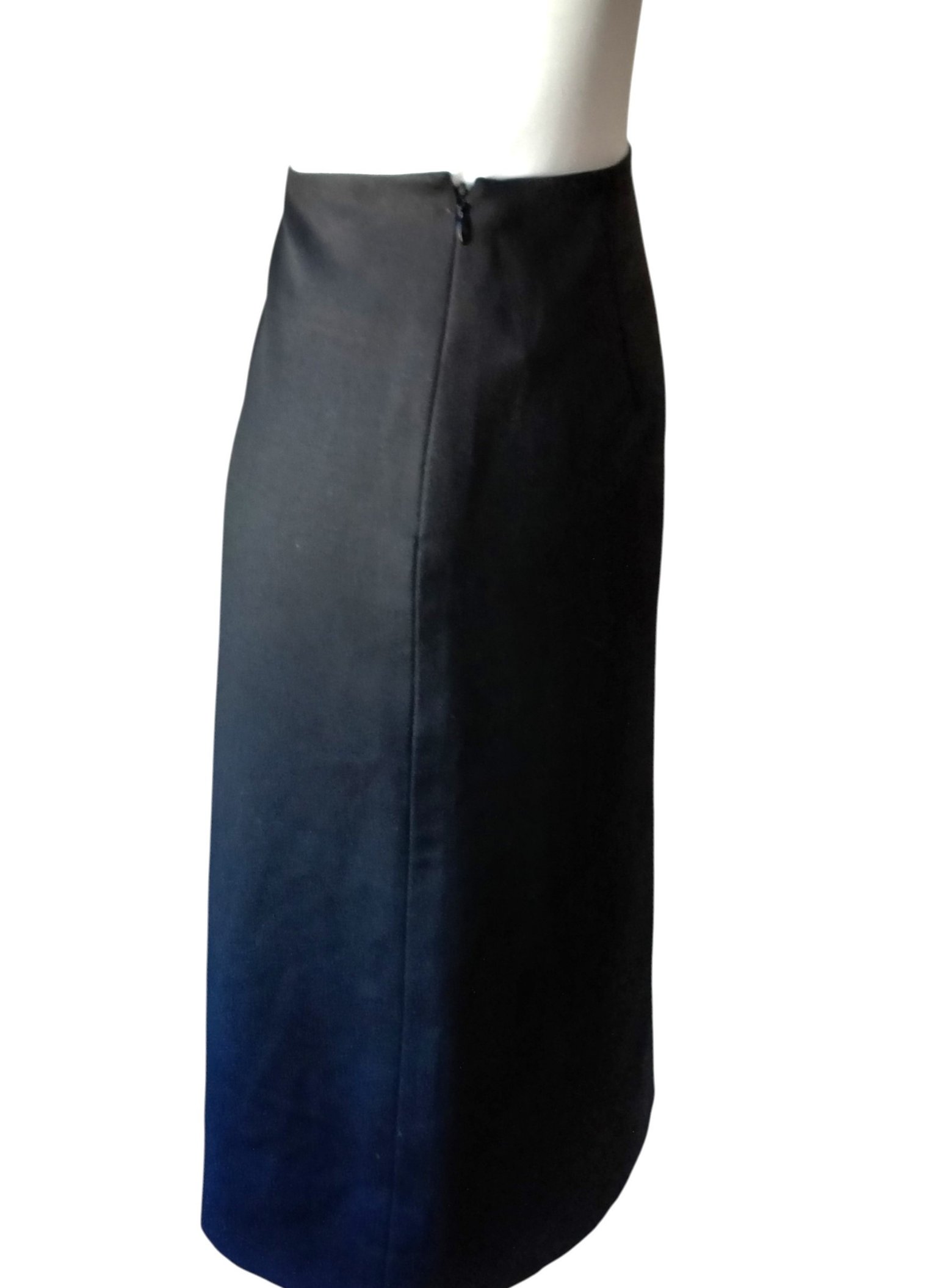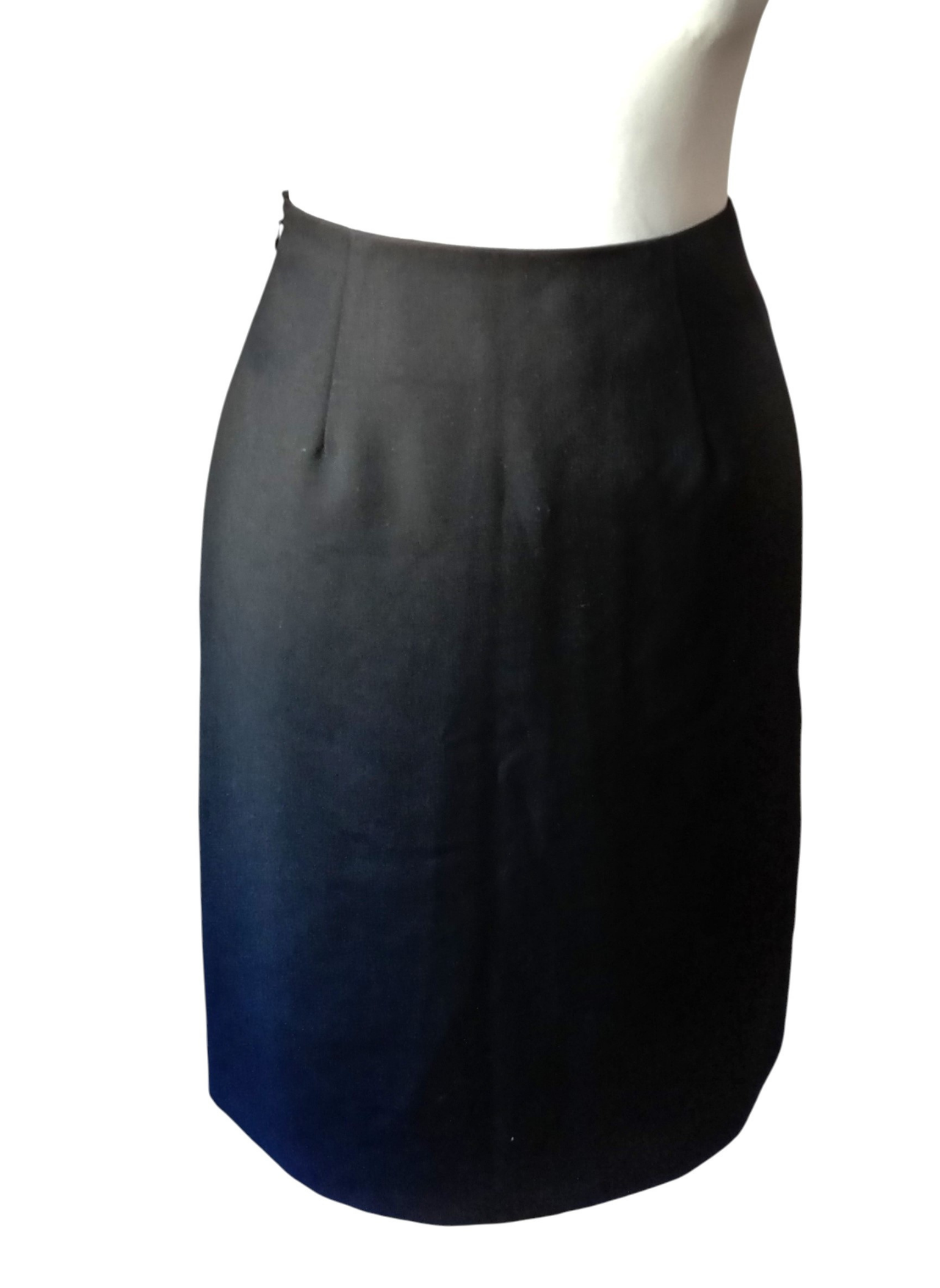 Falda negra tipo tubo,de Calvin Klein,100% lana y el forro 100% seda.Abrocha con cremallera lateral.sencilla y elegante.Perfecto estado. Talla 38. Medidas:36 cms de cintura x 46 cms de cadera x 56 cms de largo.