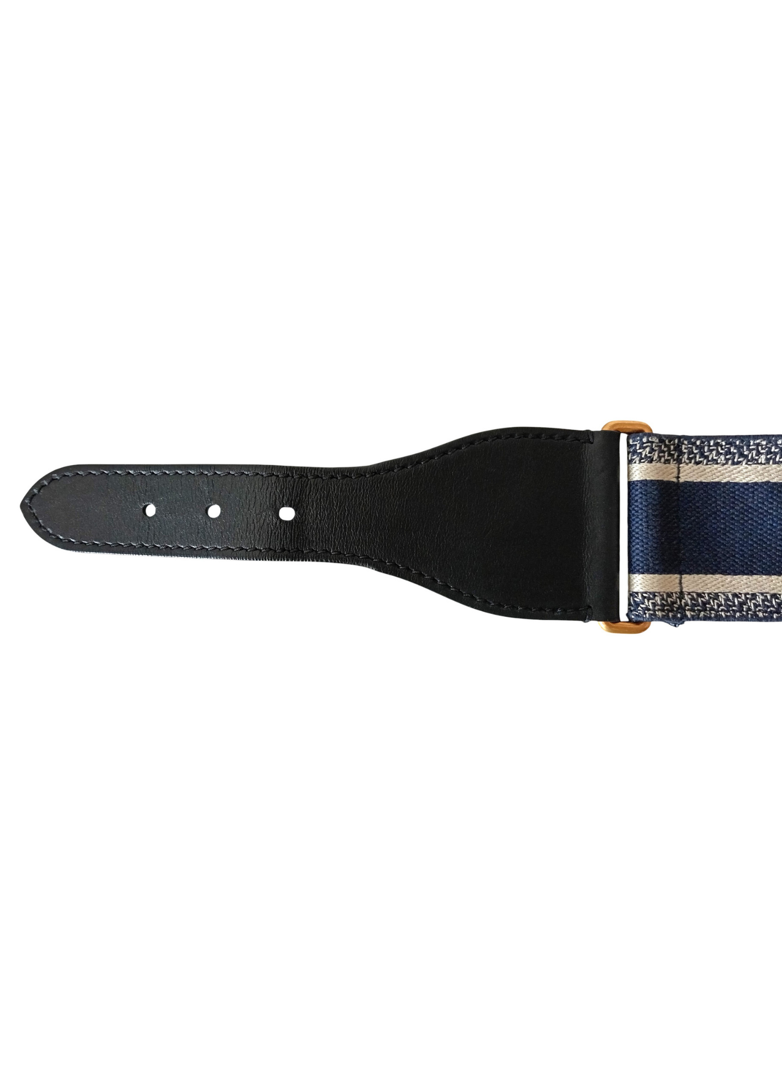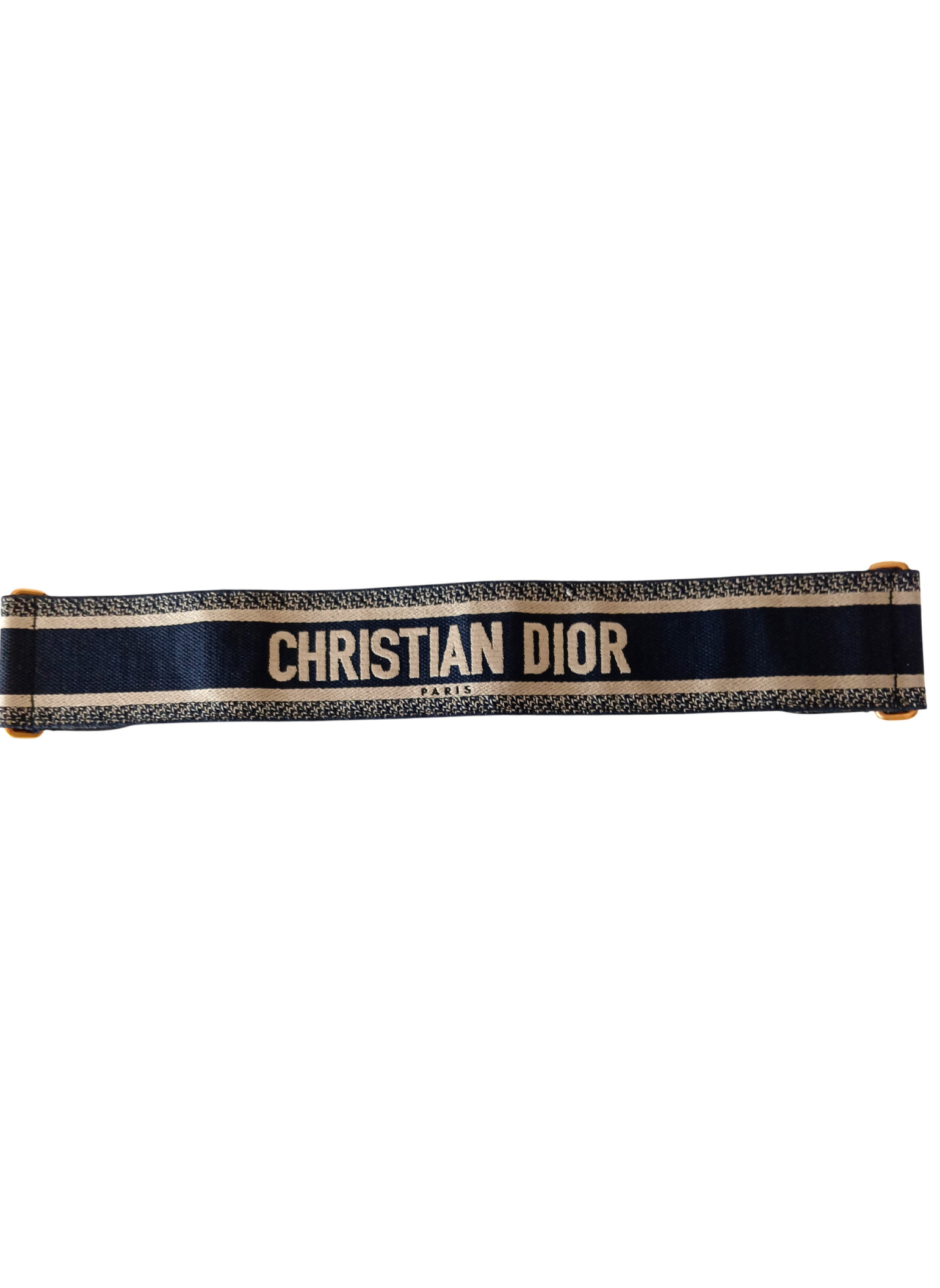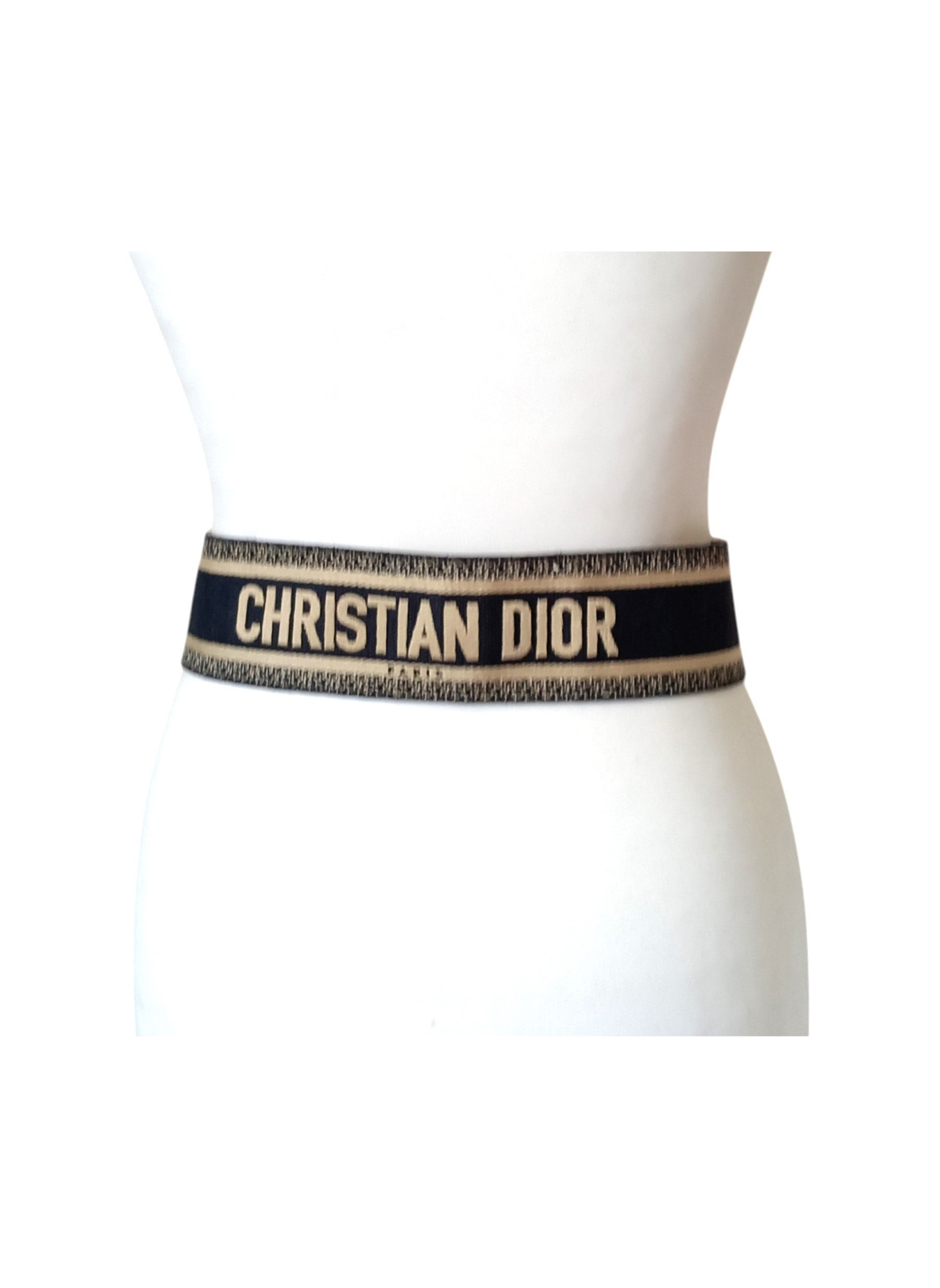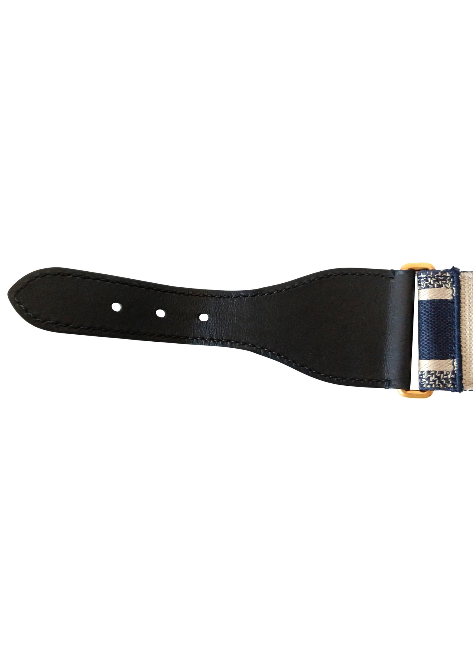 Cinturón ancho de lona y piel de Christian Dior.Con la firma de Christian Dior bordado en el centro en el interior y en el exterior,correas de piel negra en la parte delantera con hebilla dorada.Muy buen estado Medidas: 75 cms desde la hebilla hasta el agujero central x 6 cms de ancho.