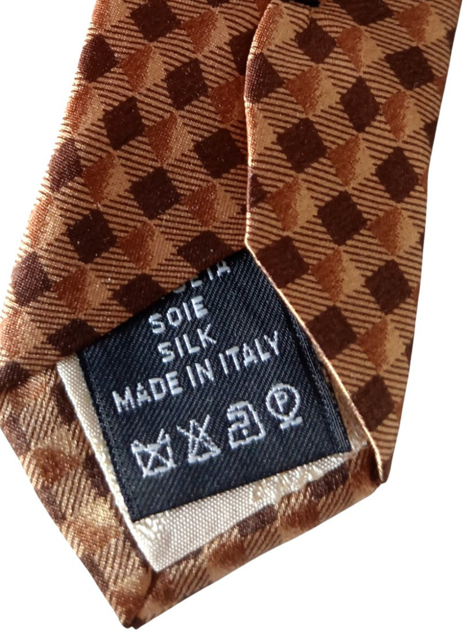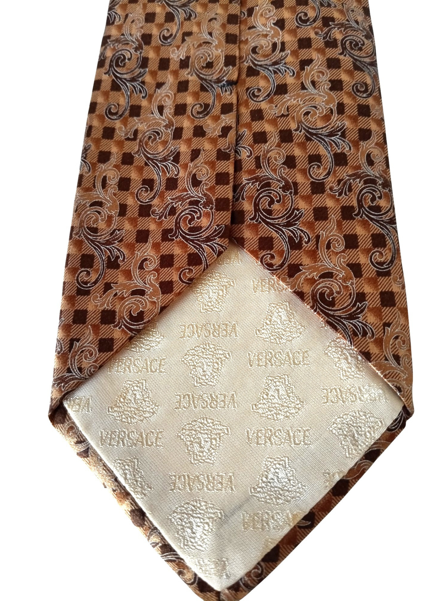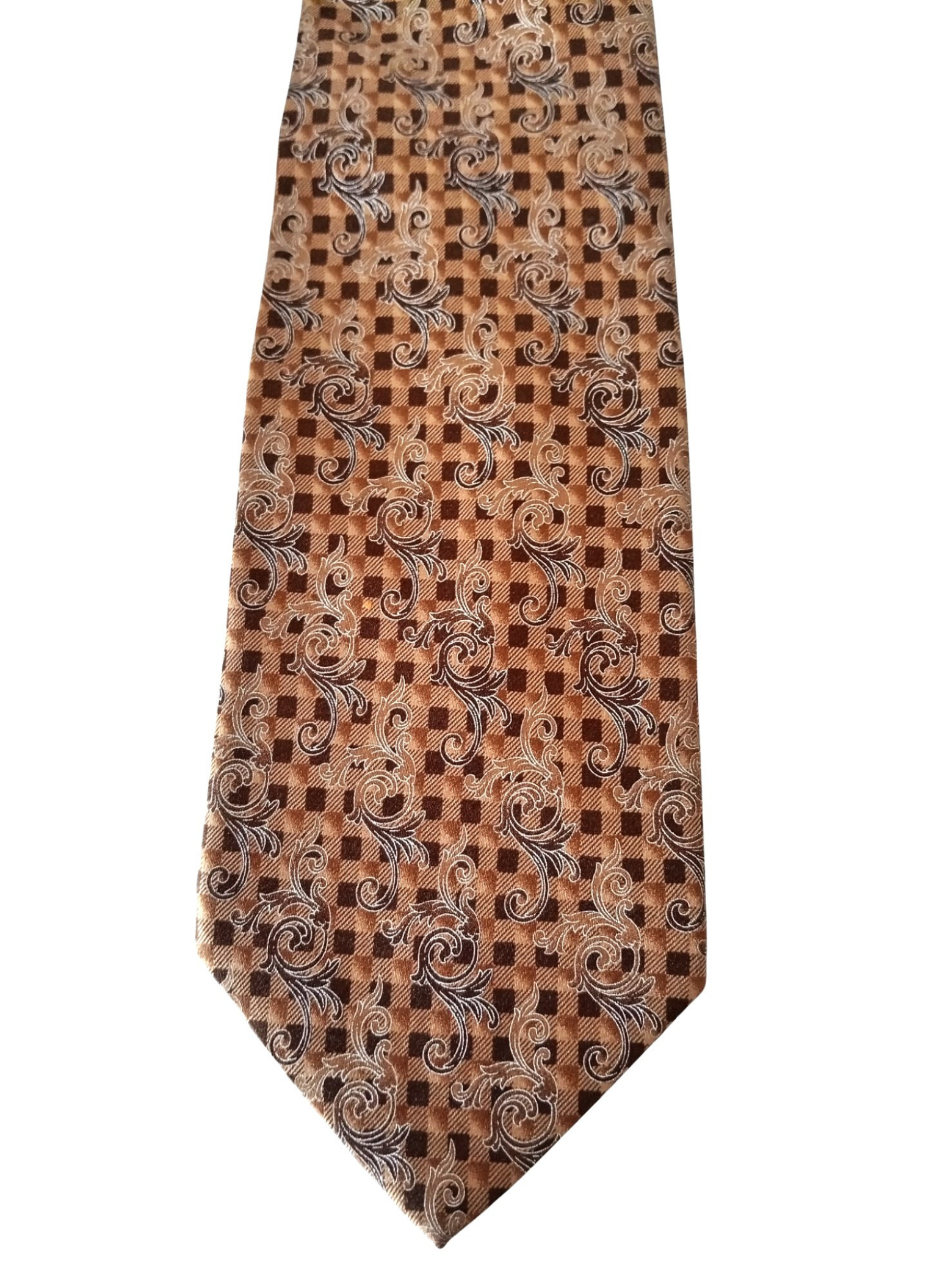 Corbata de Versece,100% seda,en tonos marrones ,con dibujos geometricos y diseños florales.Esta en muy buen estado.Mide 9 cms por la parte mas ancha.