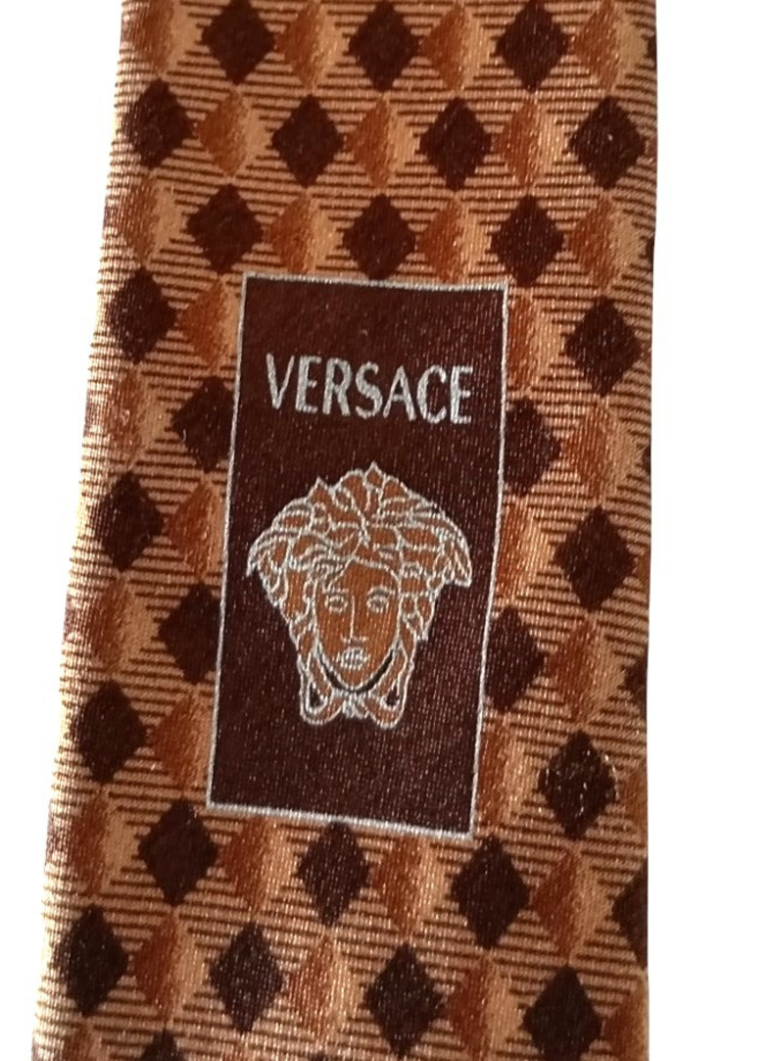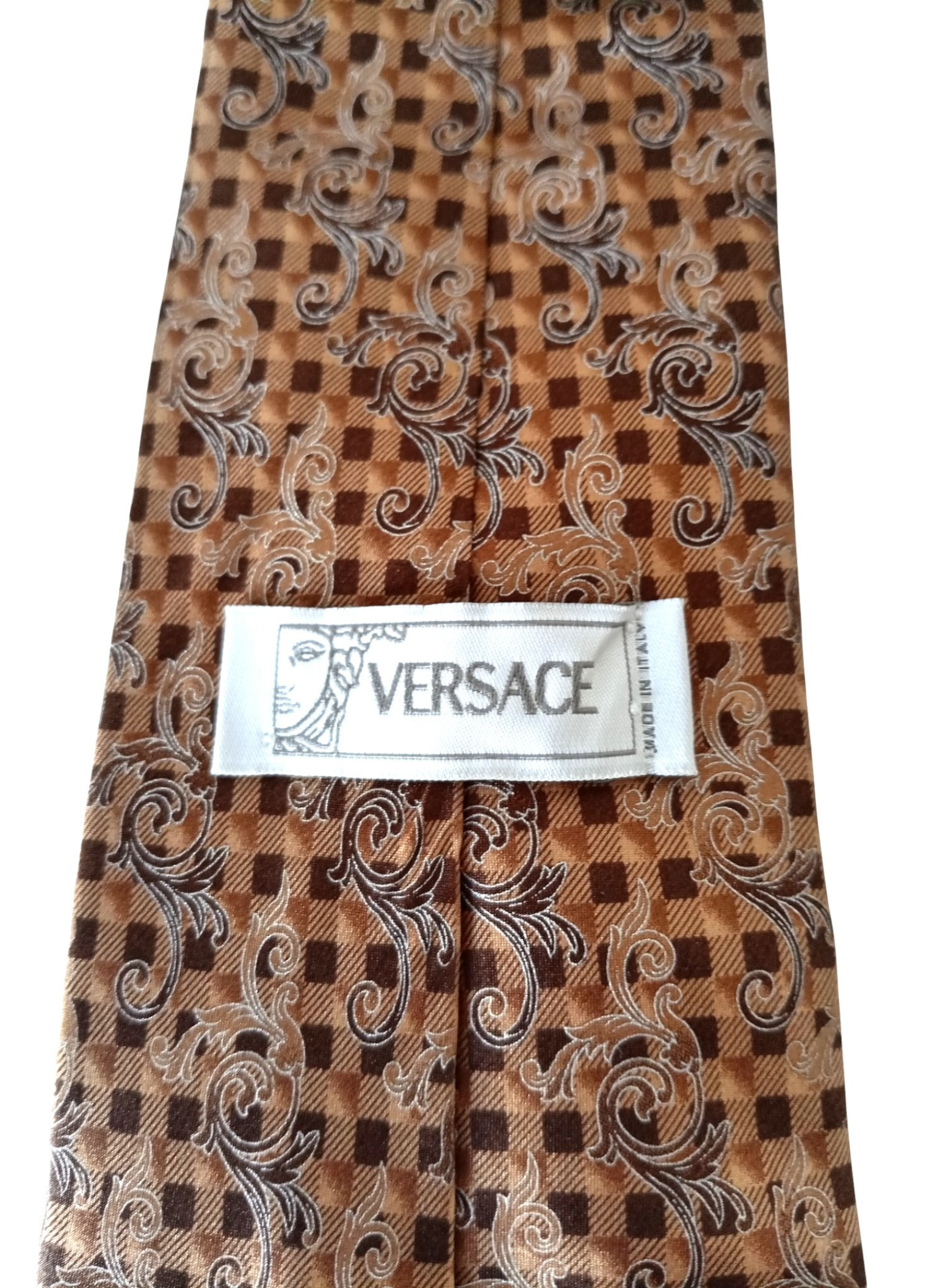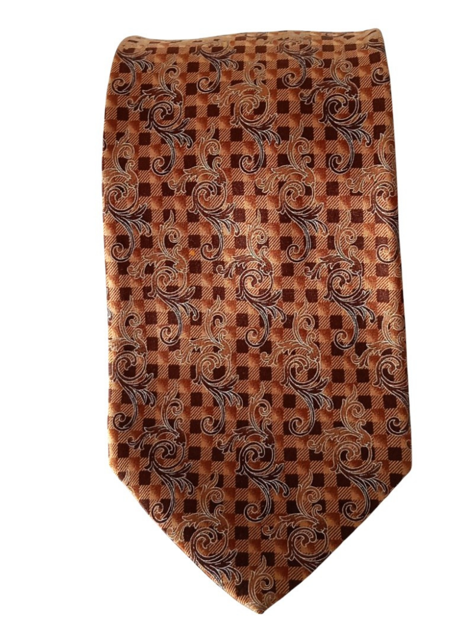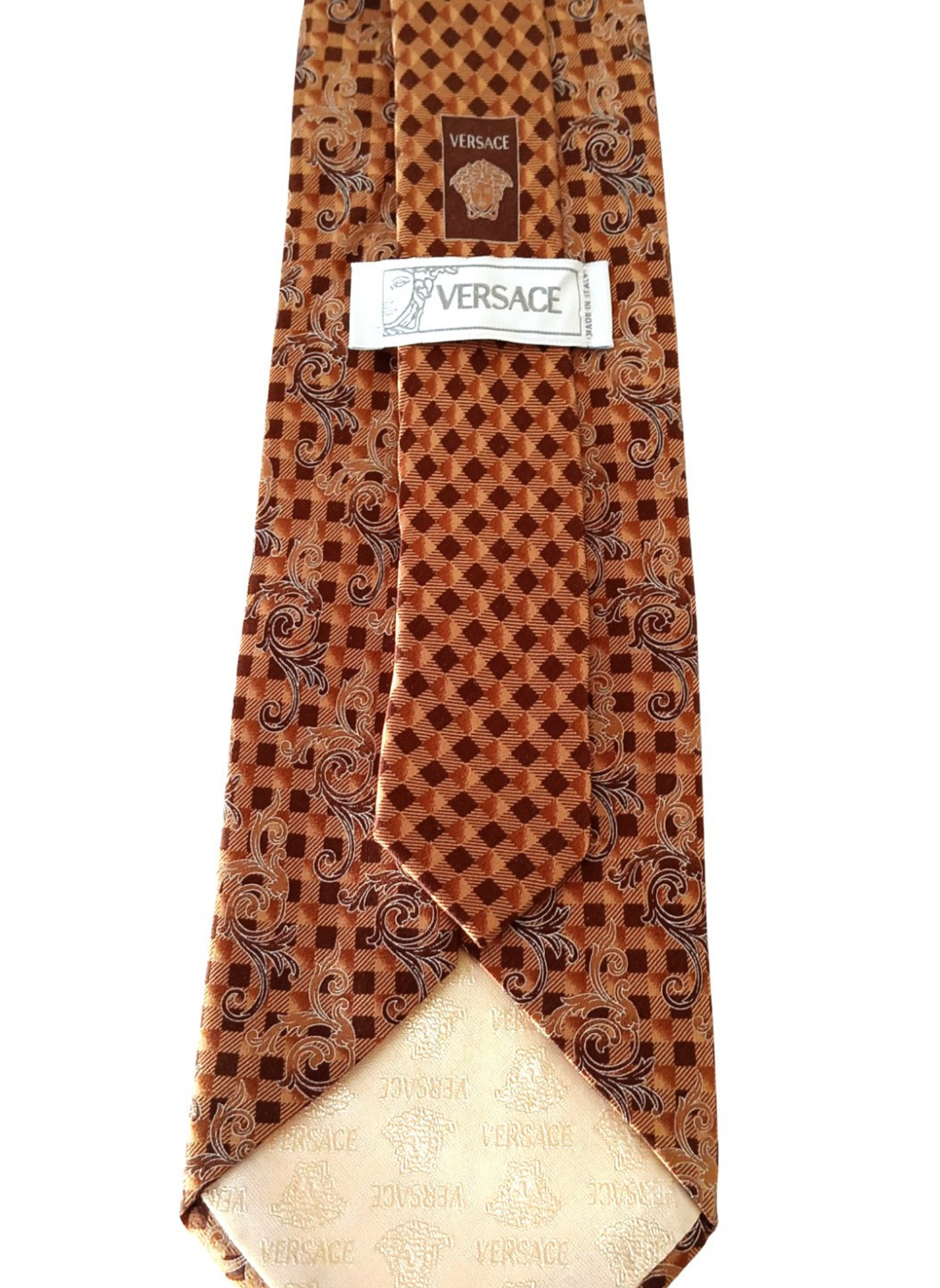 Corbata de Versece,100% seda,en tonos marrones ,con dibujos geometricos y diseños florales.Esta en muy buen estado.Mide 9 cms por la parte mas ancha.