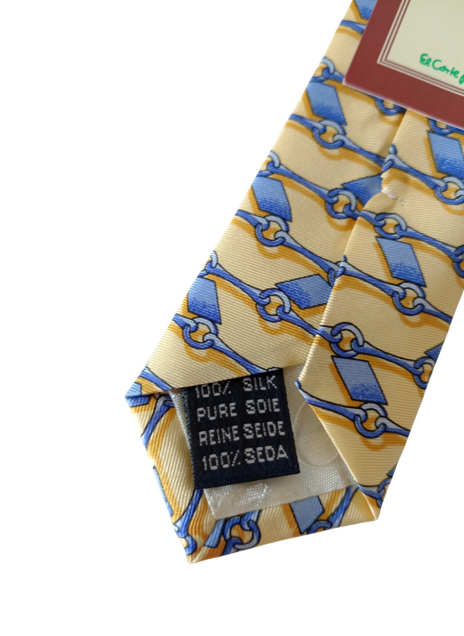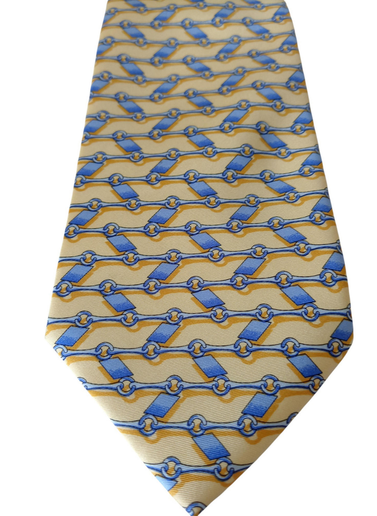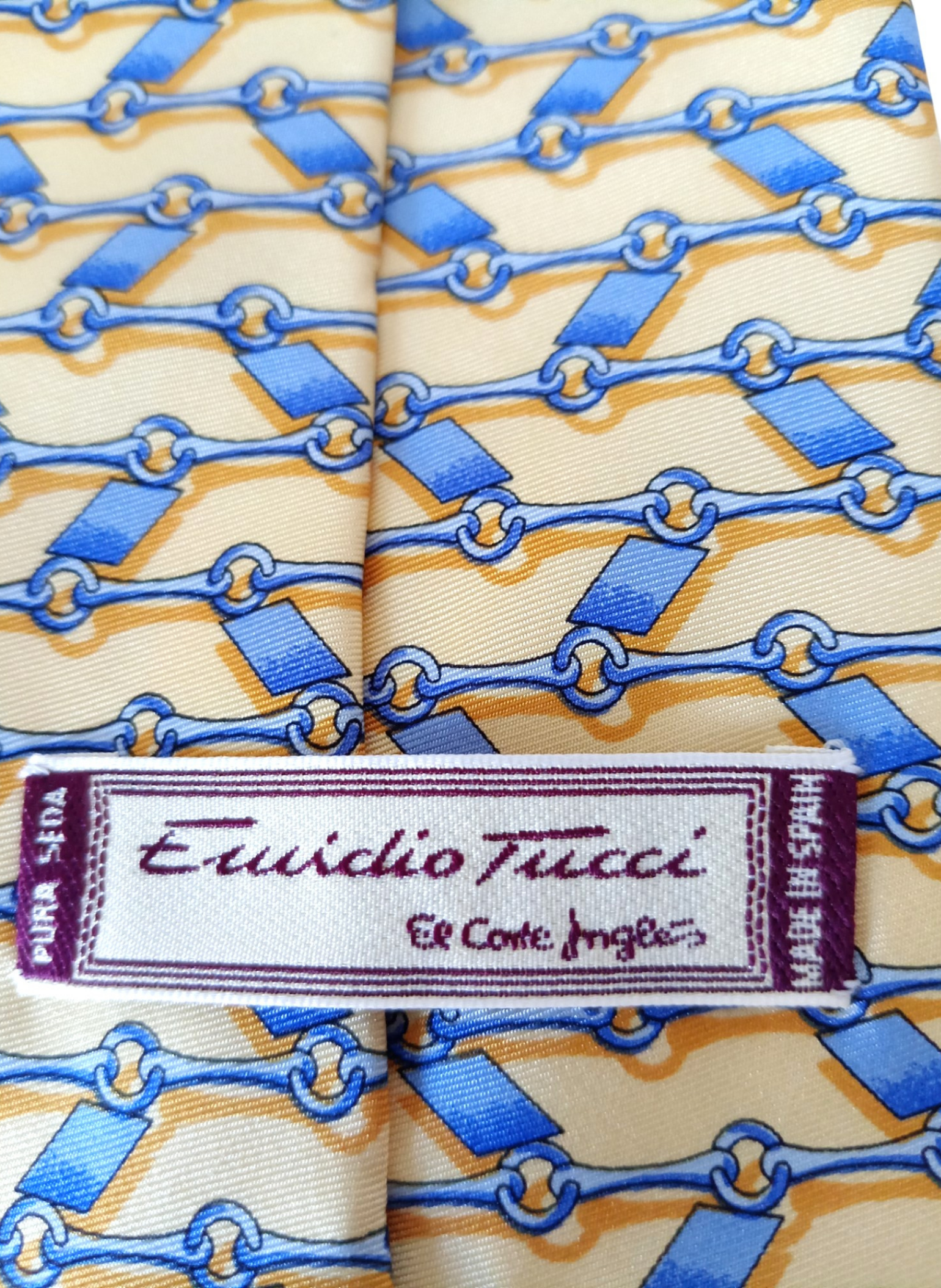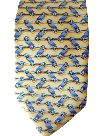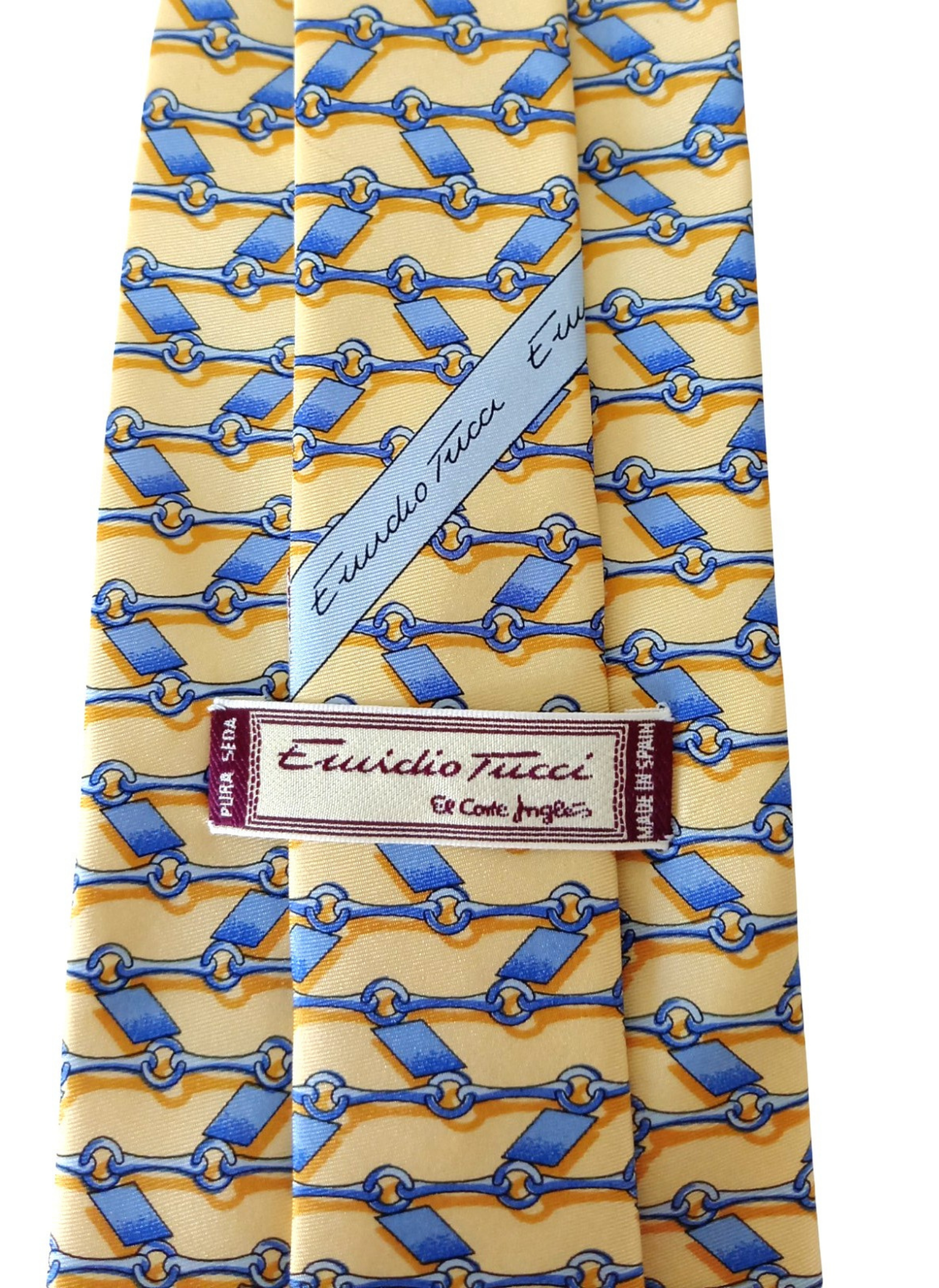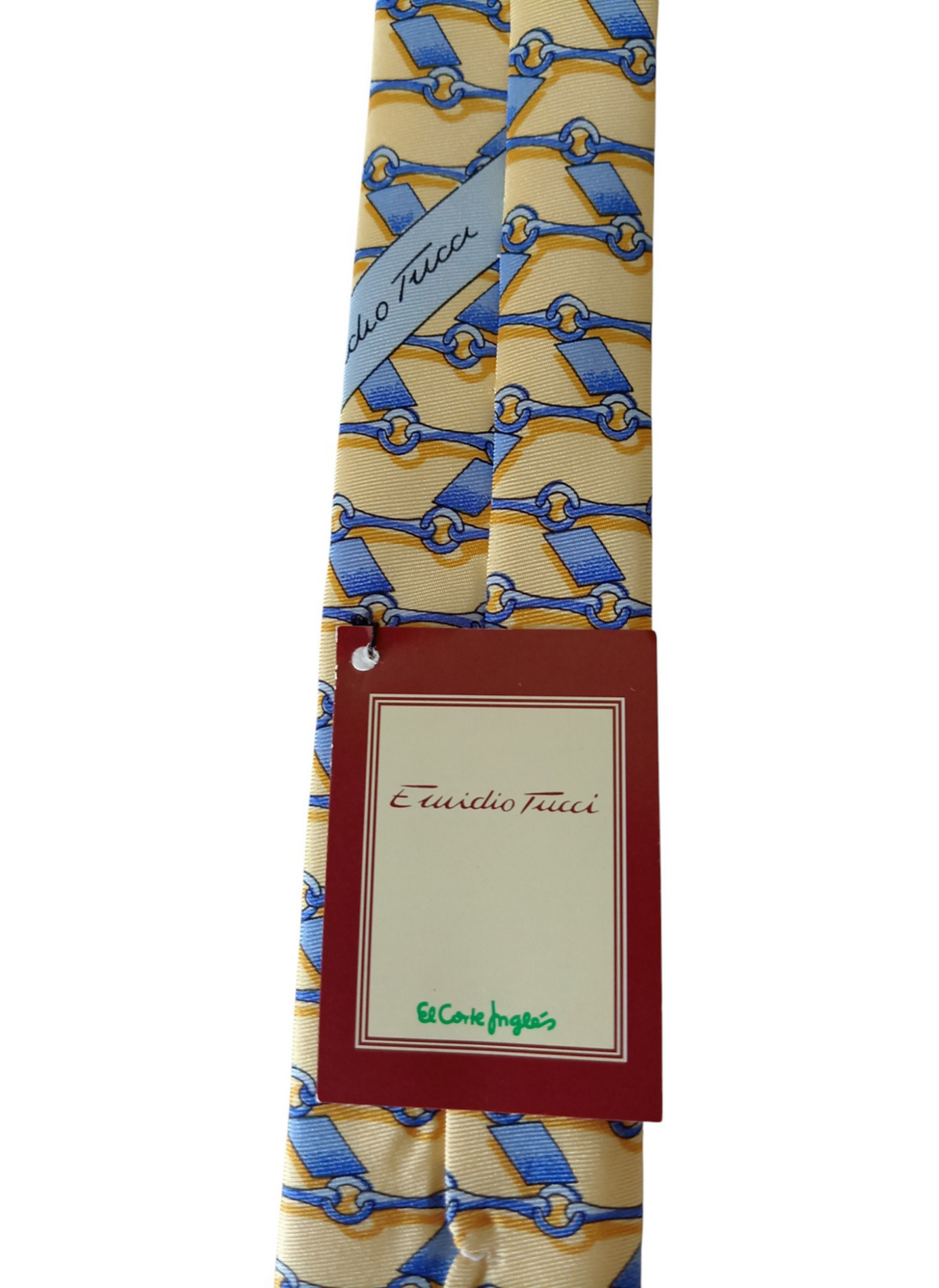 Corbata de Emidio Tucci,sin estrenar,en color amarillo con cadeneta azul.100% seda.Mide 9,5 cms por la parte mas ancha.