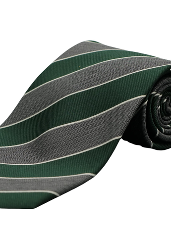 Corbata a rayas verdes y grises de Ermenegildo Zegna. Confeccionada con seda al 100%. Las rayas verdes y grises se entrelazan en un patrón elegante. Destaca con confianza y estilo con esta pieza de Ermenegildo Zegna.