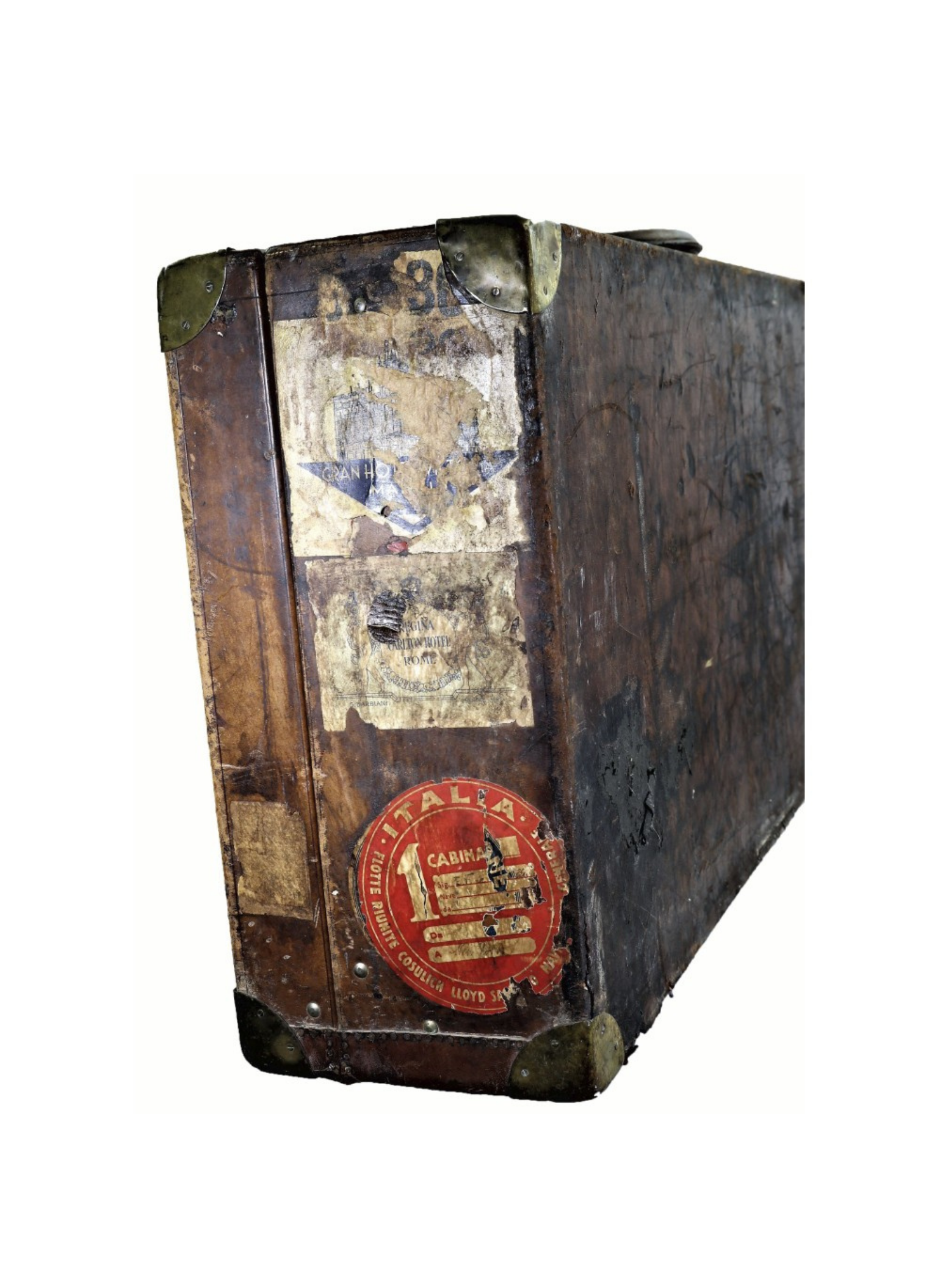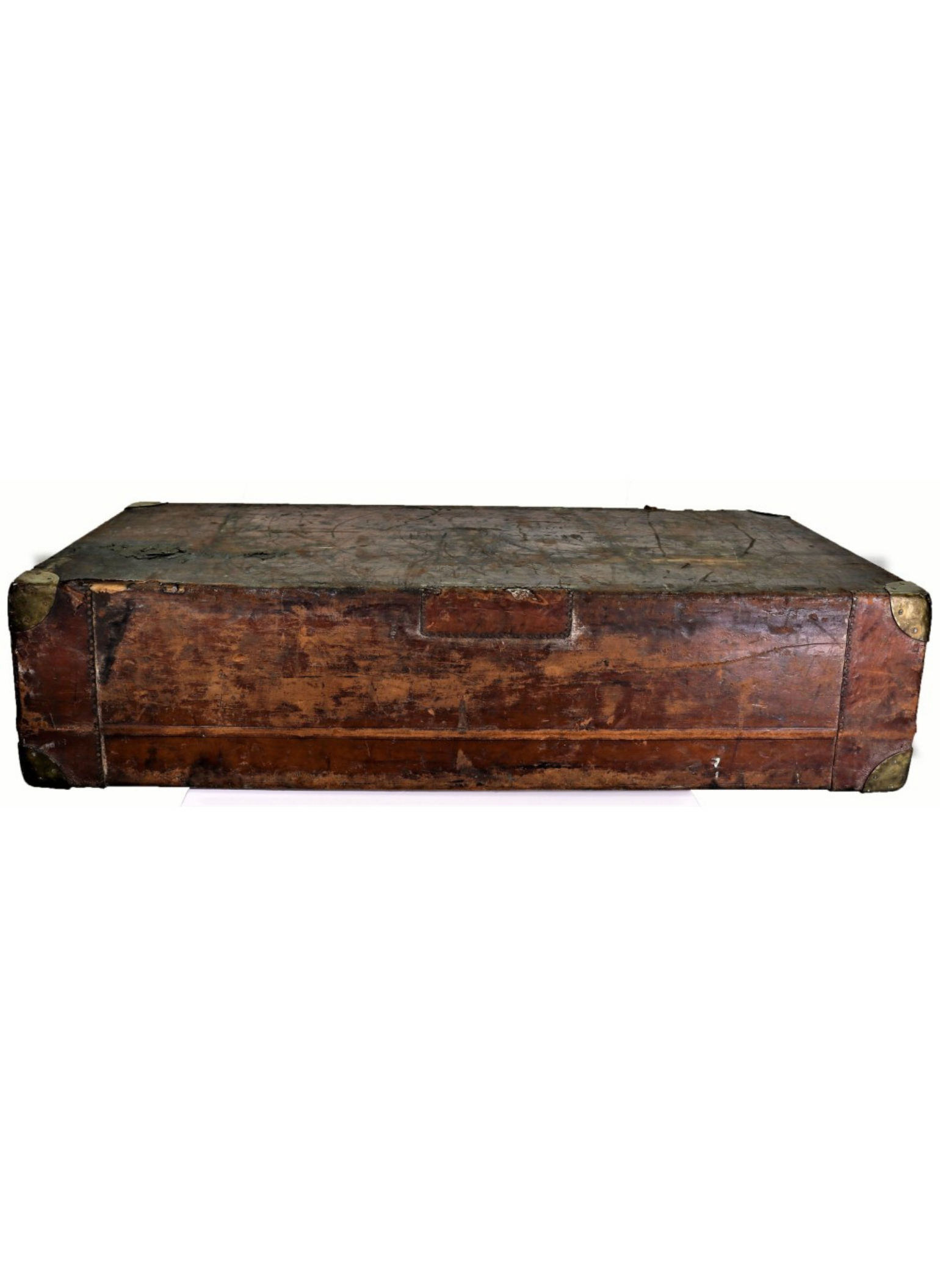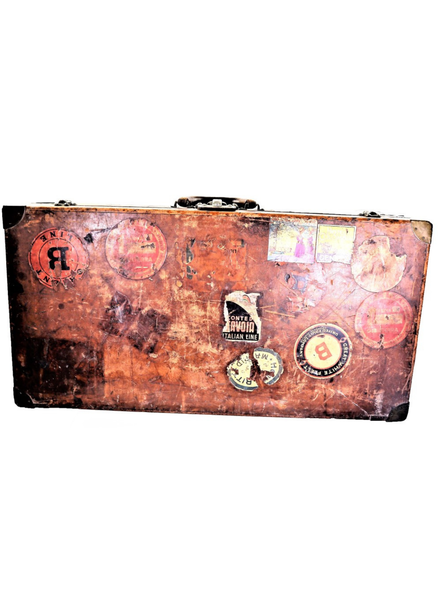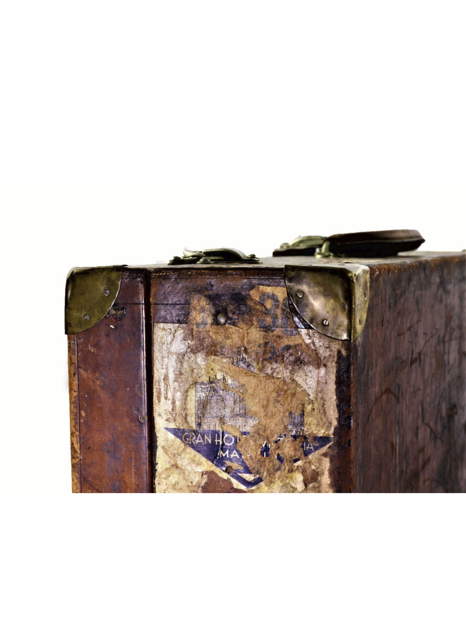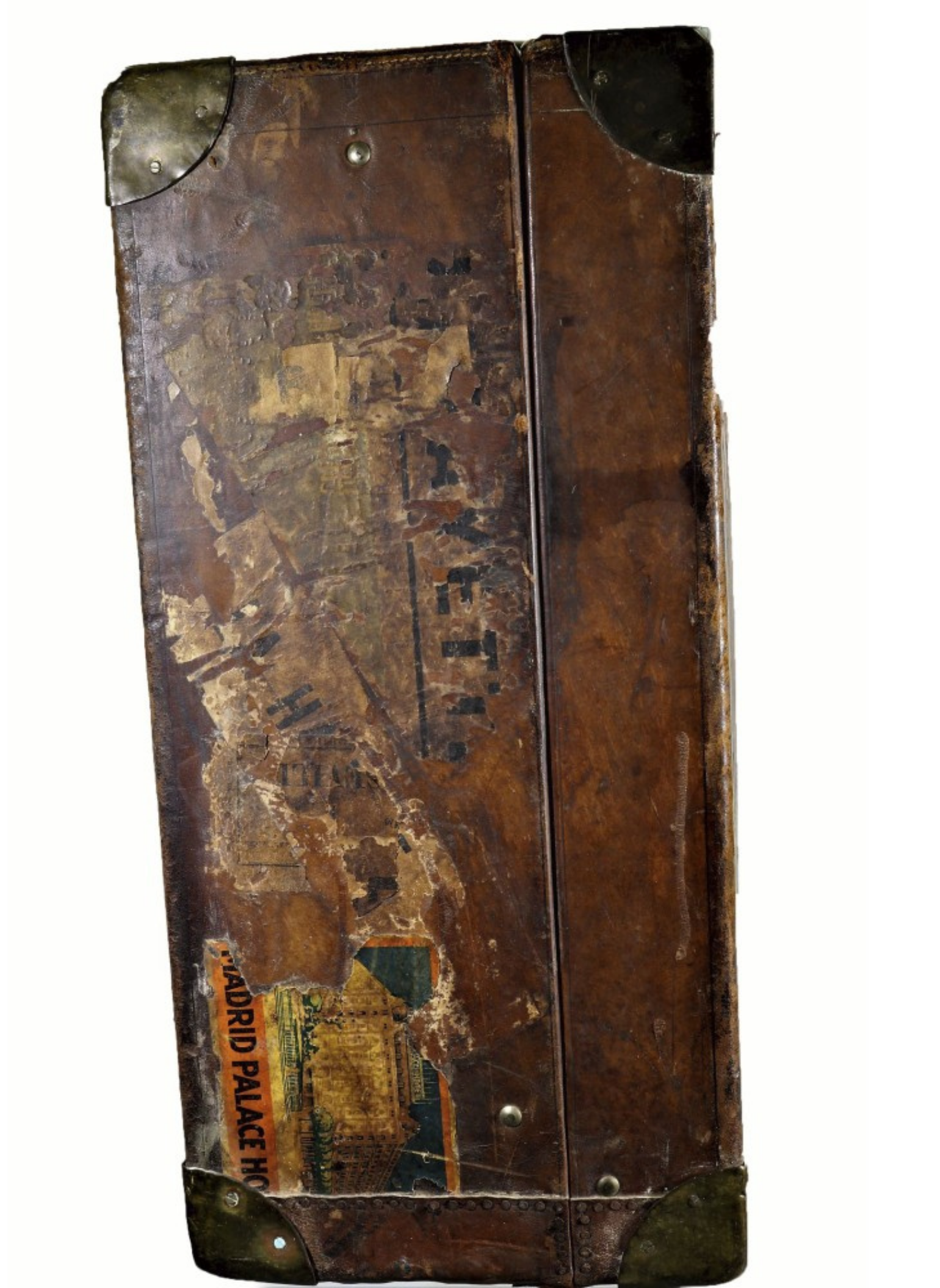 Maleta Louis Vuitton Vintage Años 20  en cuero liso, con herrajes en metal tono plateado y esquineras en dorado , esta maleta es de la linea lisa y tiene adhesivos de hoteles importantes de la època. Visible uso en la maleta (ver fotos) pero es un producto que a pesar de sus años se conserva en  buen estado.Pieza para coleccionistas.