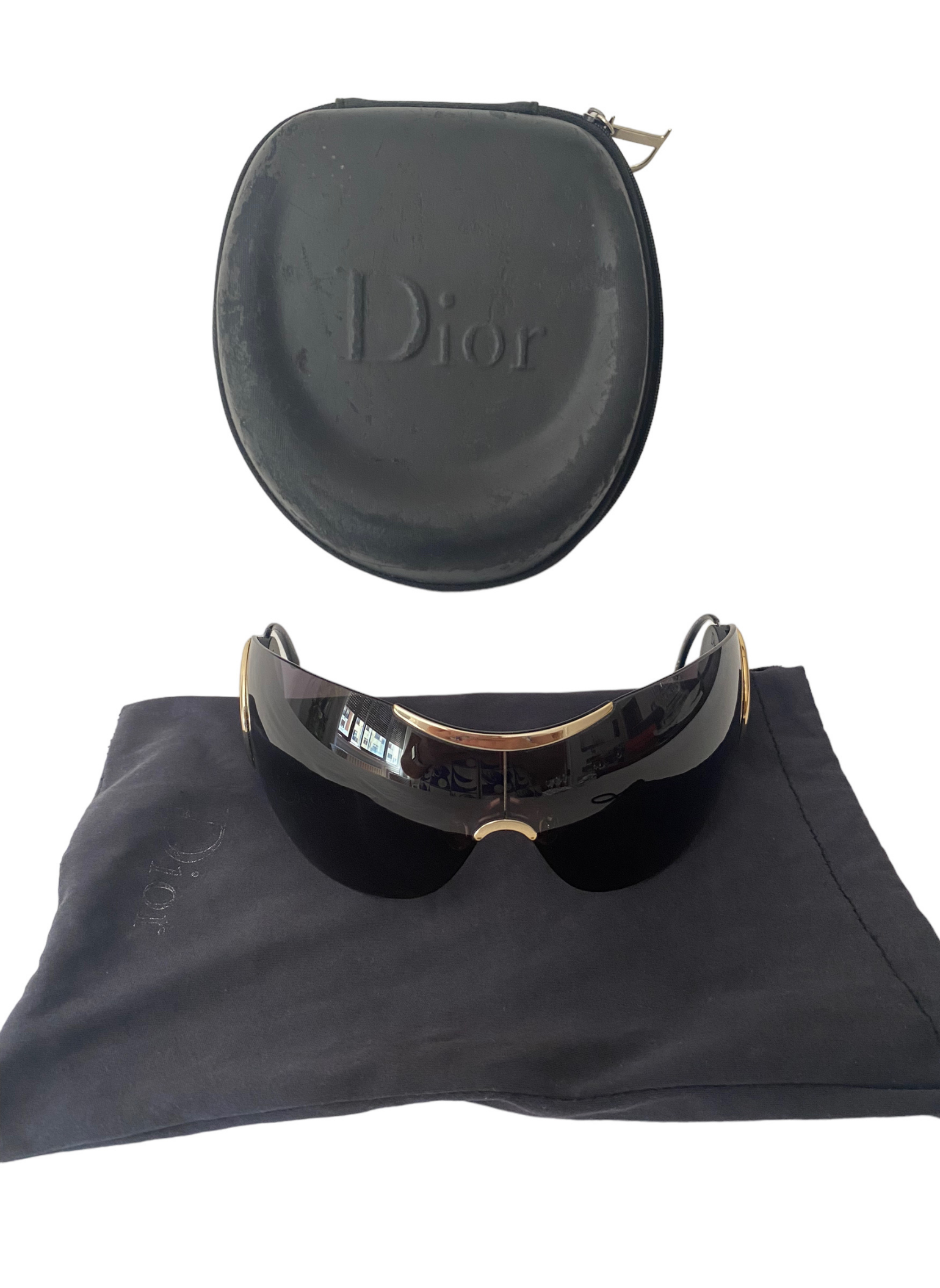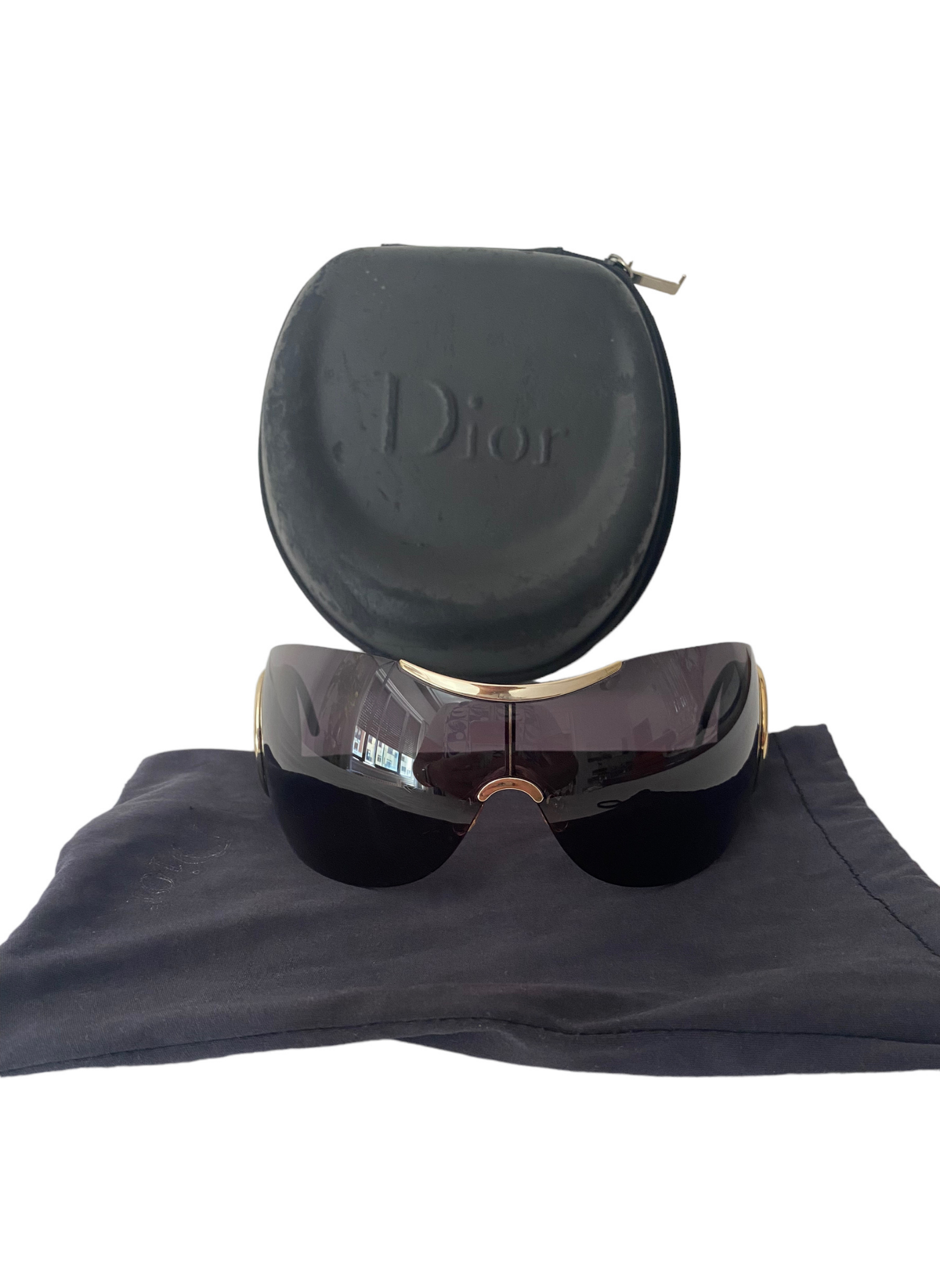 Con un aire de sofisticación, estas gafas de sol Christian Dior by Galliano son una declaración de estilo. Gafas oversize, que combinan a la perfección personalidad, moda y funcionalidad. Se encuentran en perfecto estado, mostrando muy poco desgaste y manteniendo su calidad original. Se incluye una bolsa para guardarlas, así como la funda original, que aunque puede presentar desgaste, no afecta la integridad de las gafas.