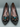 zapato de la marca Miu Miu de tela con estampado de pata de gallo en negro y gris con piedras de colores delante. El tacón es mediano.Talla 39,5. El tacón presenta muy pequeñas señales de uso.