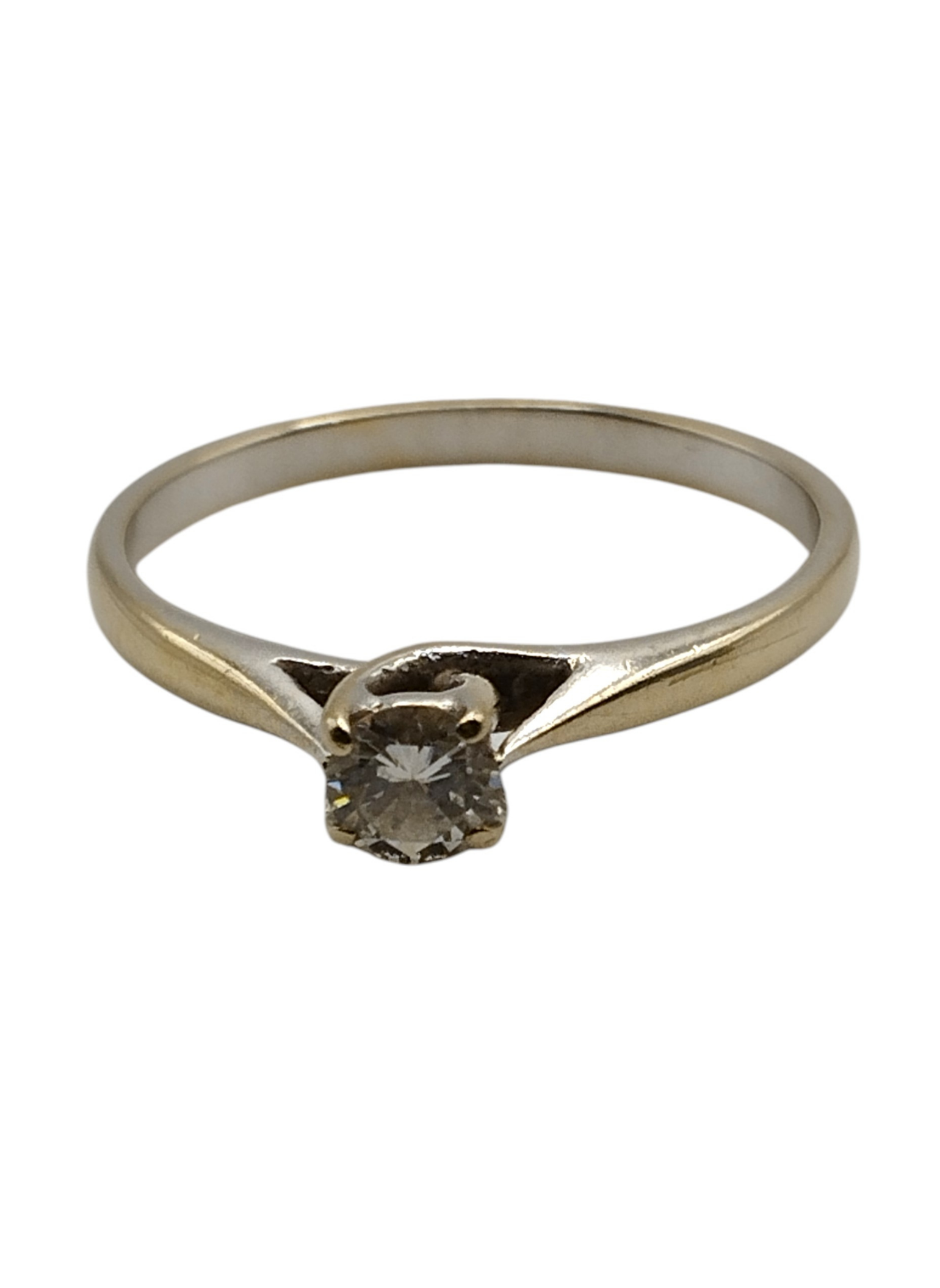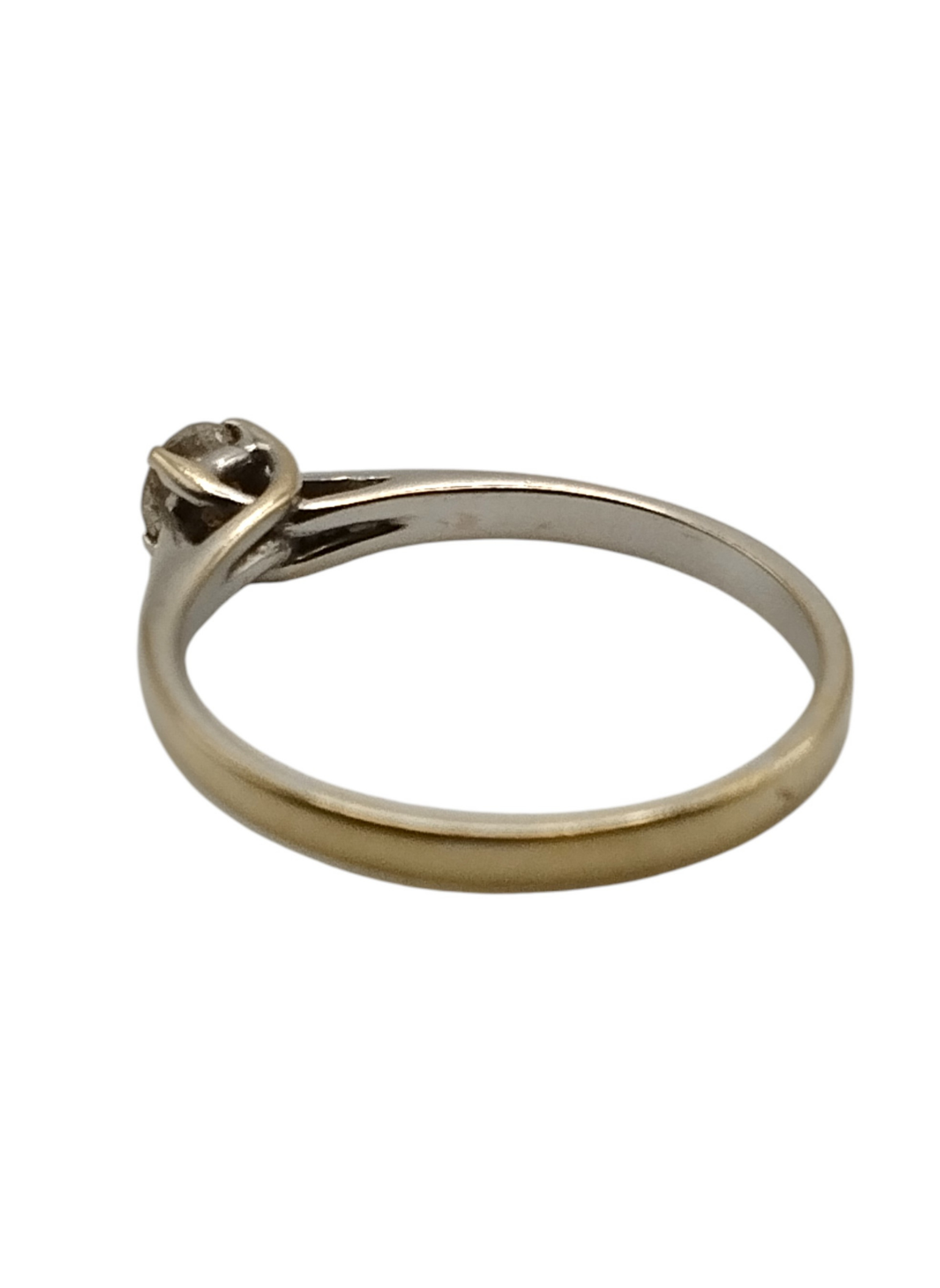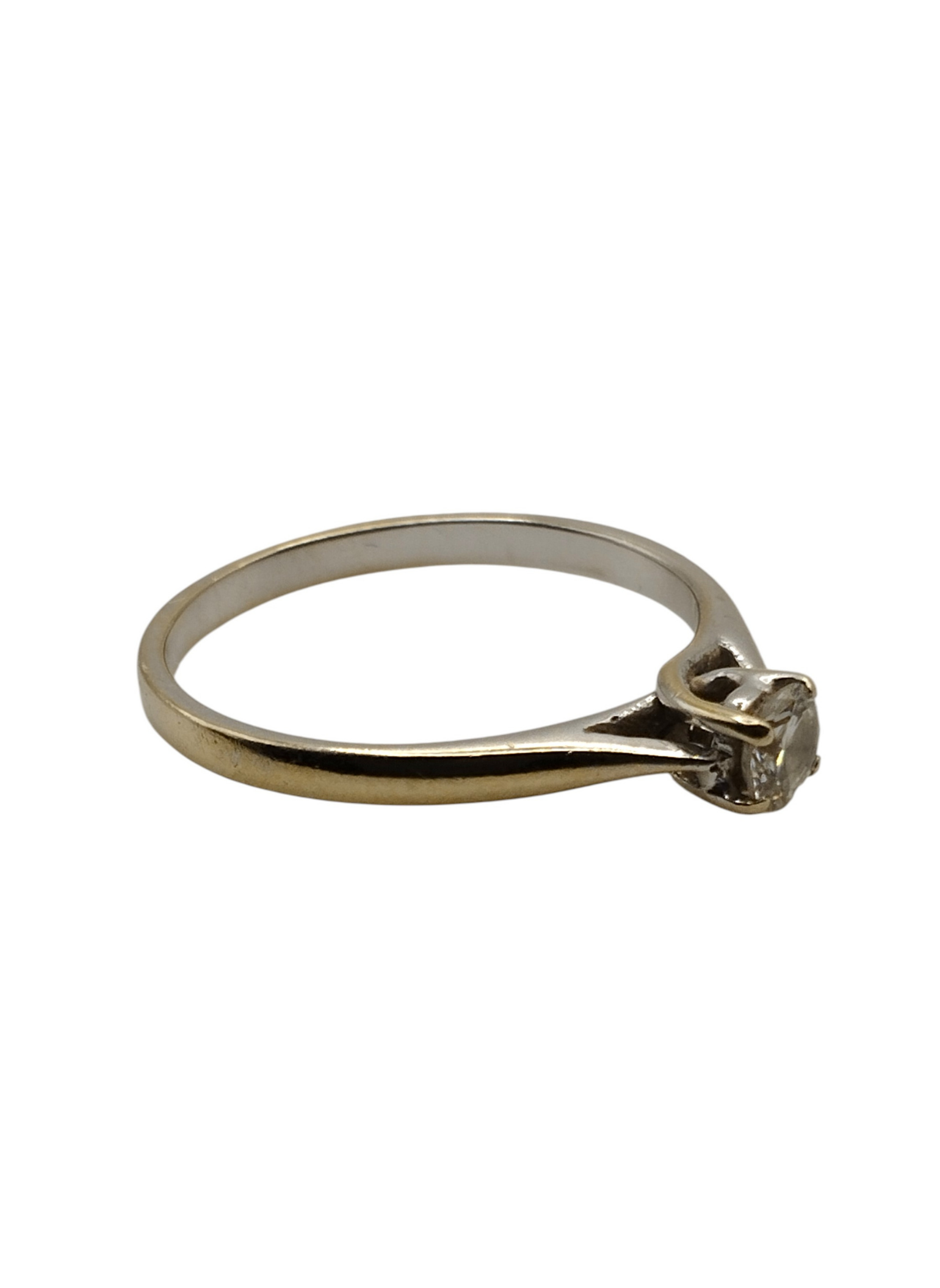 Anillo solitario de oro blanco de 18 Kts con un brillante de 0,20 engastado en garras.Es un numero 9,5,pesa 1.5 grs en total.Estado muy bueno.
