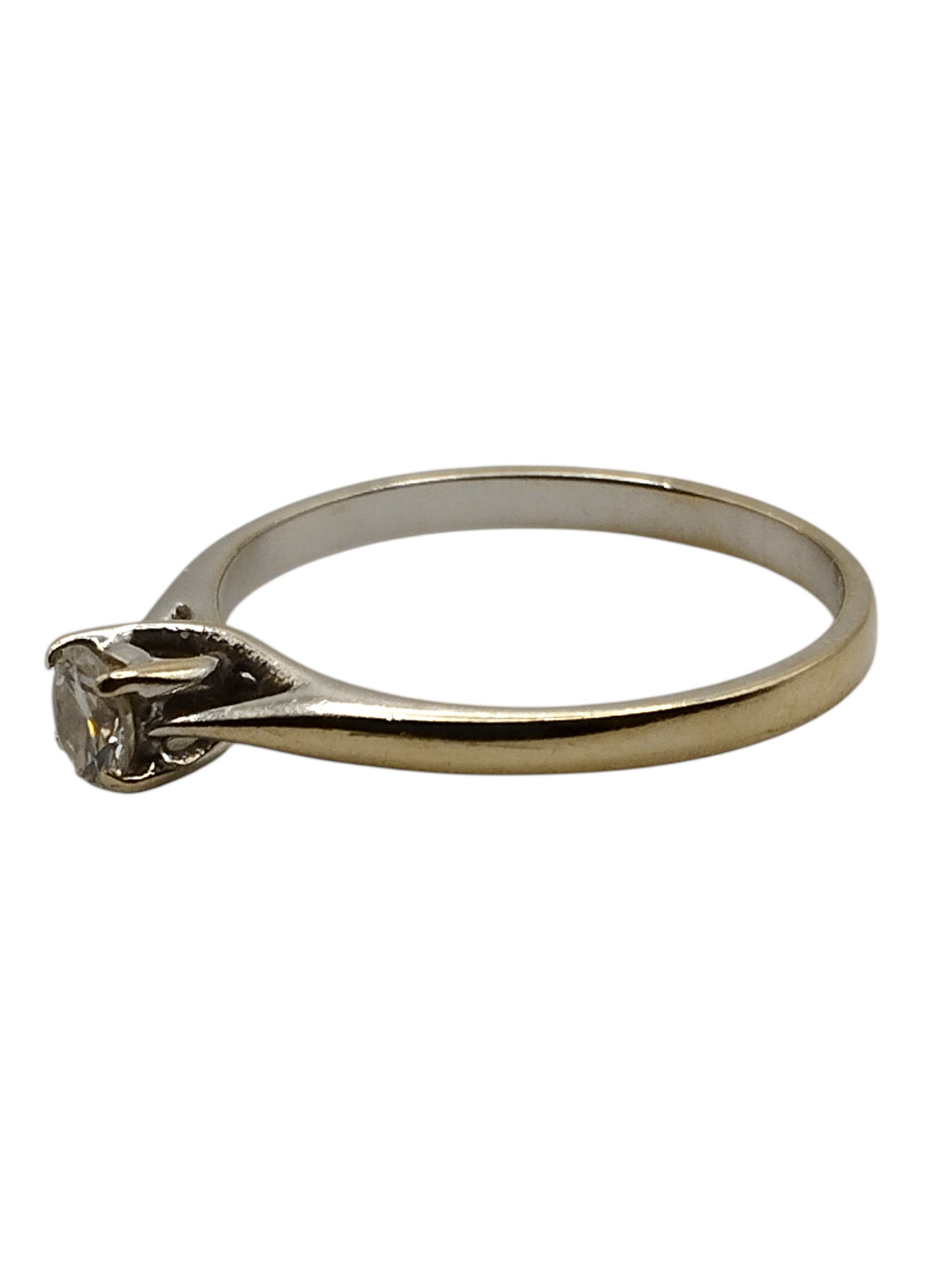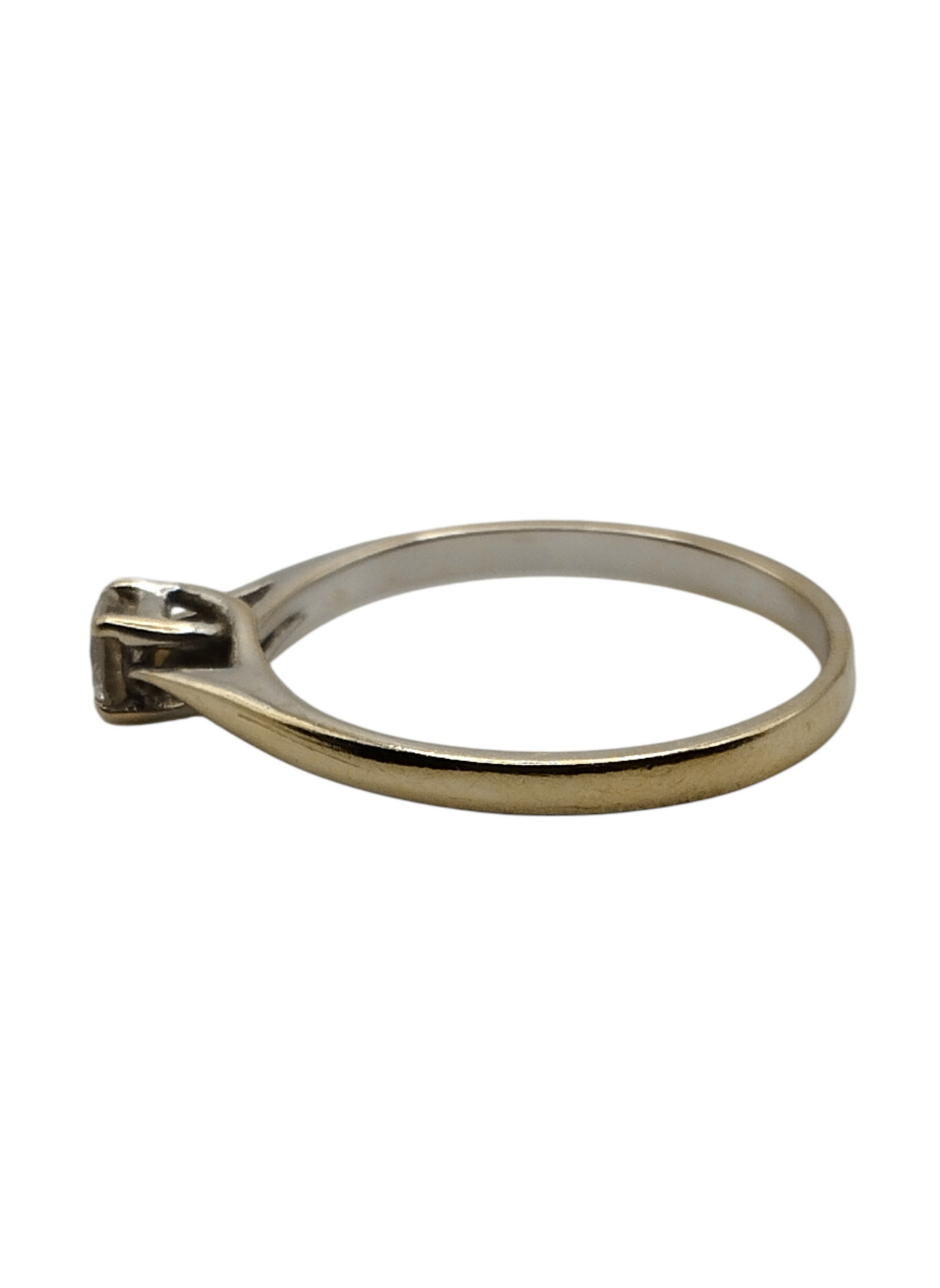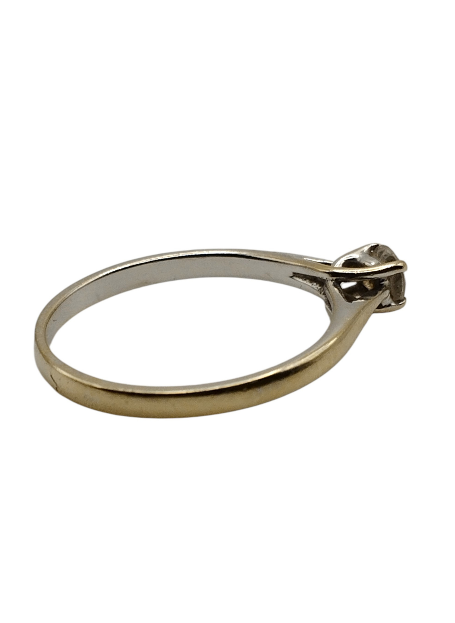 Anillo solitario de oro blanco de 18 Kts con un brillante de 0,20 engastado en garras.Es un numero 9,5,pesa 1.5 grs en total.Estado muy bueno.