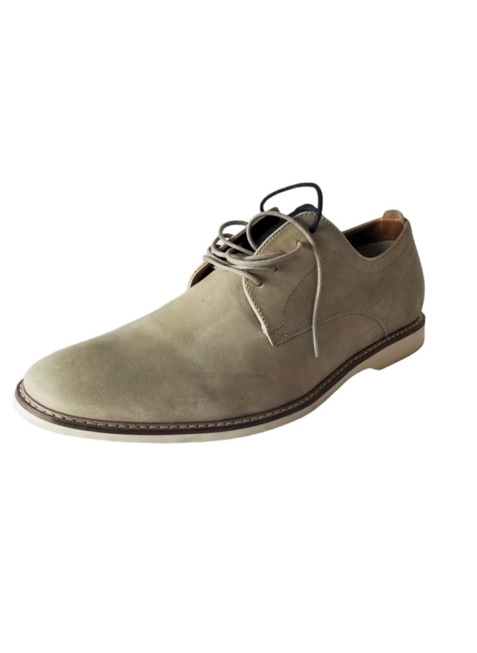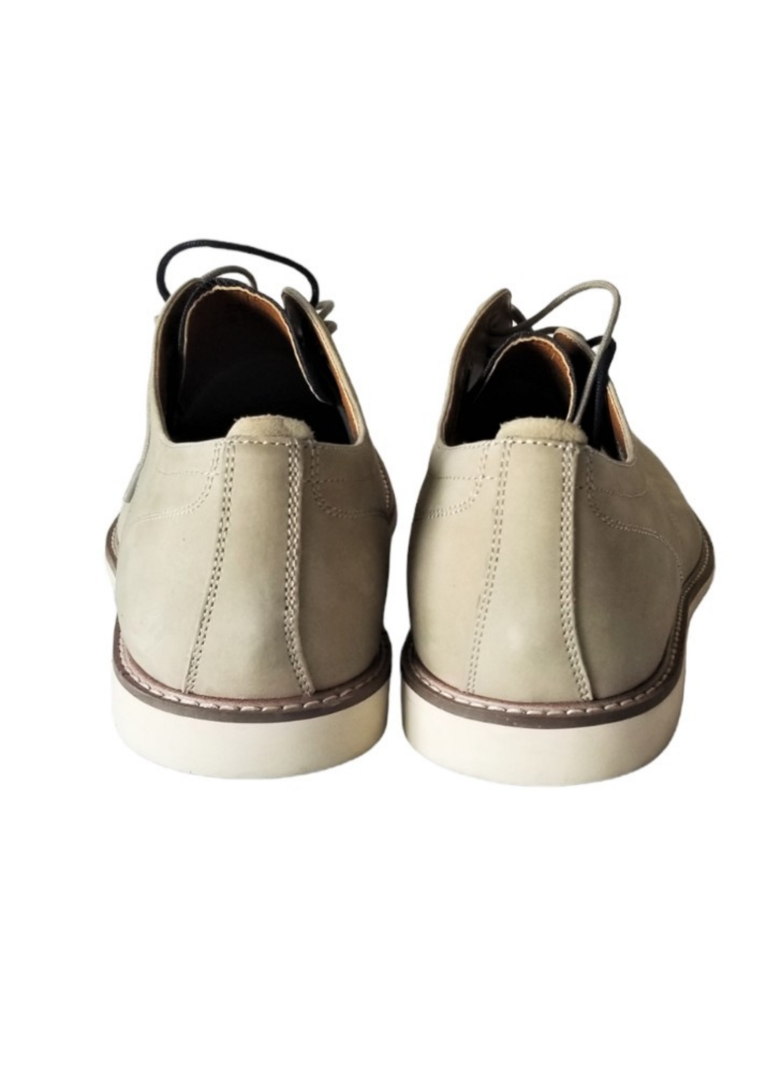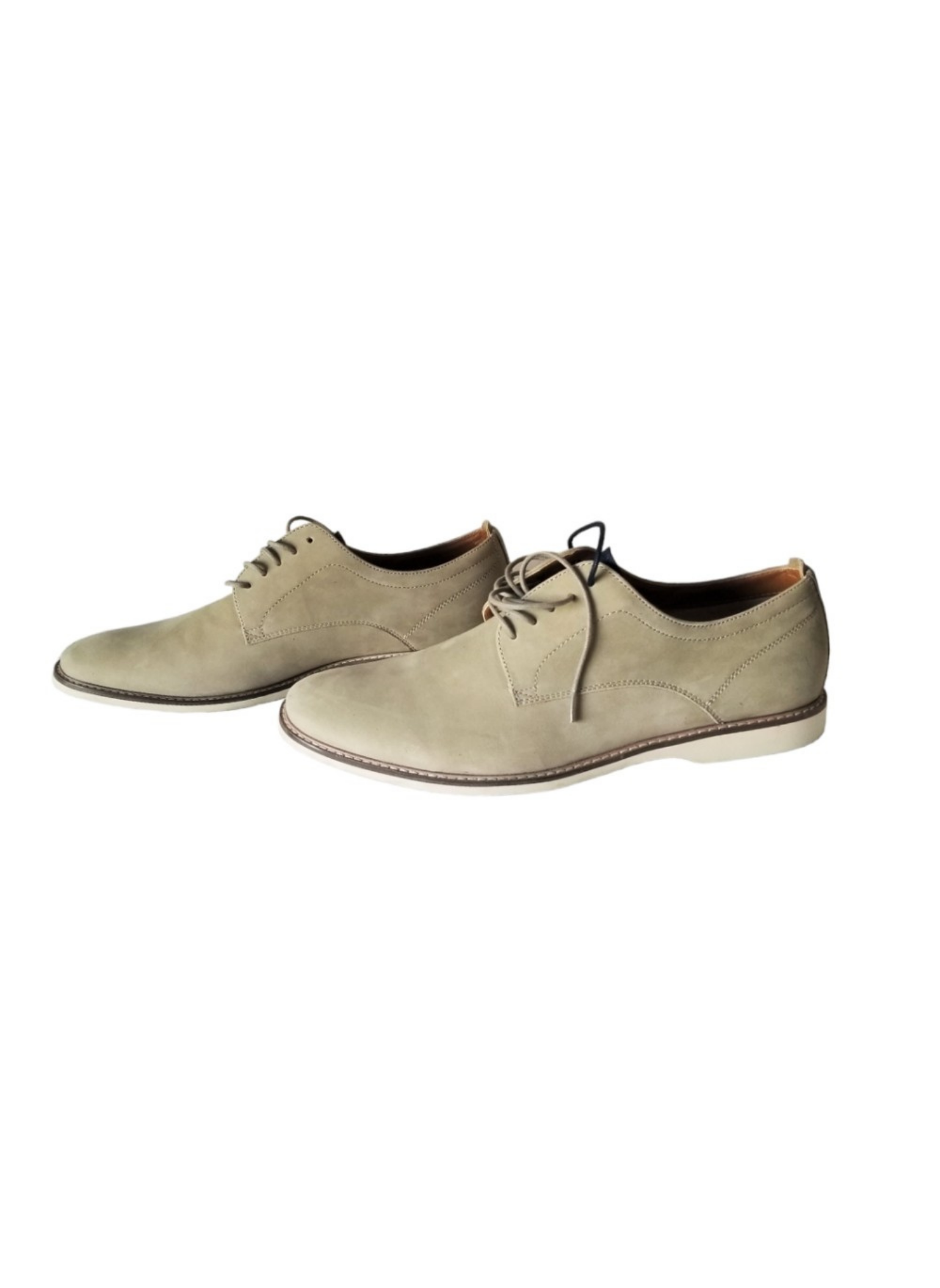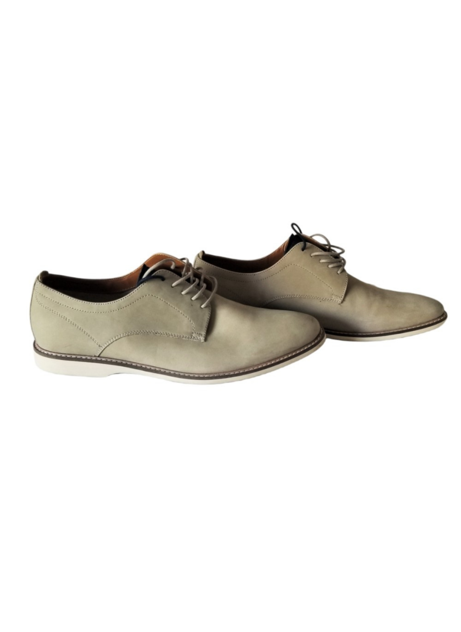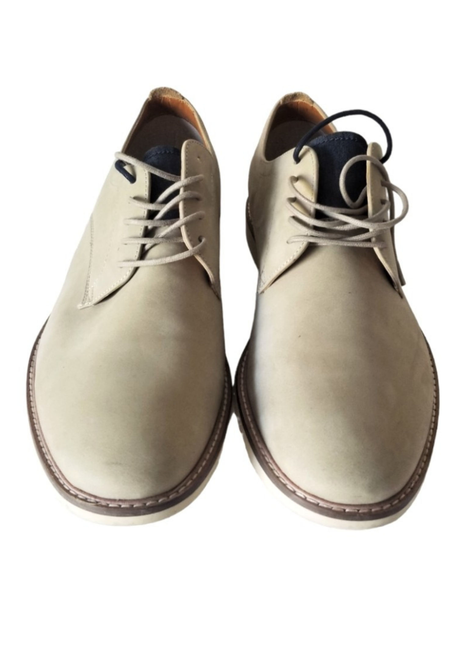 Herrenschuhe der Marke Aldo aus beigem Wildleder und weißer Gummisohle. Mit Schnürsenkeln und einer marineblauen Zunge. Sie werden mit zwei Ersatzschnürsenkeln geliefert, einige beige wie der Schuh und andere dunkelblau wie die Zunge. Sie haben die Größe 43. Sie weisen keine Gebrauchsspuren auf.
