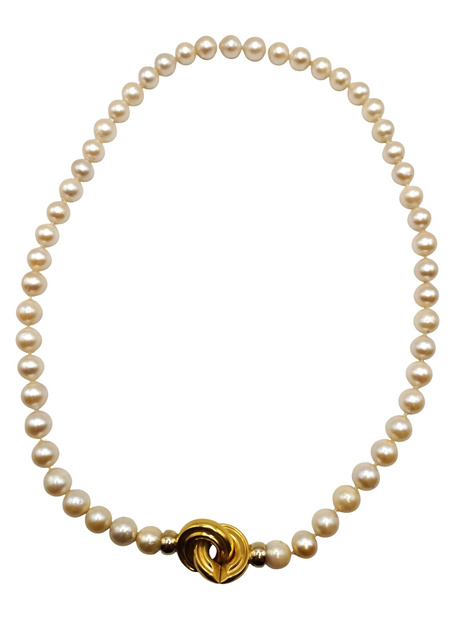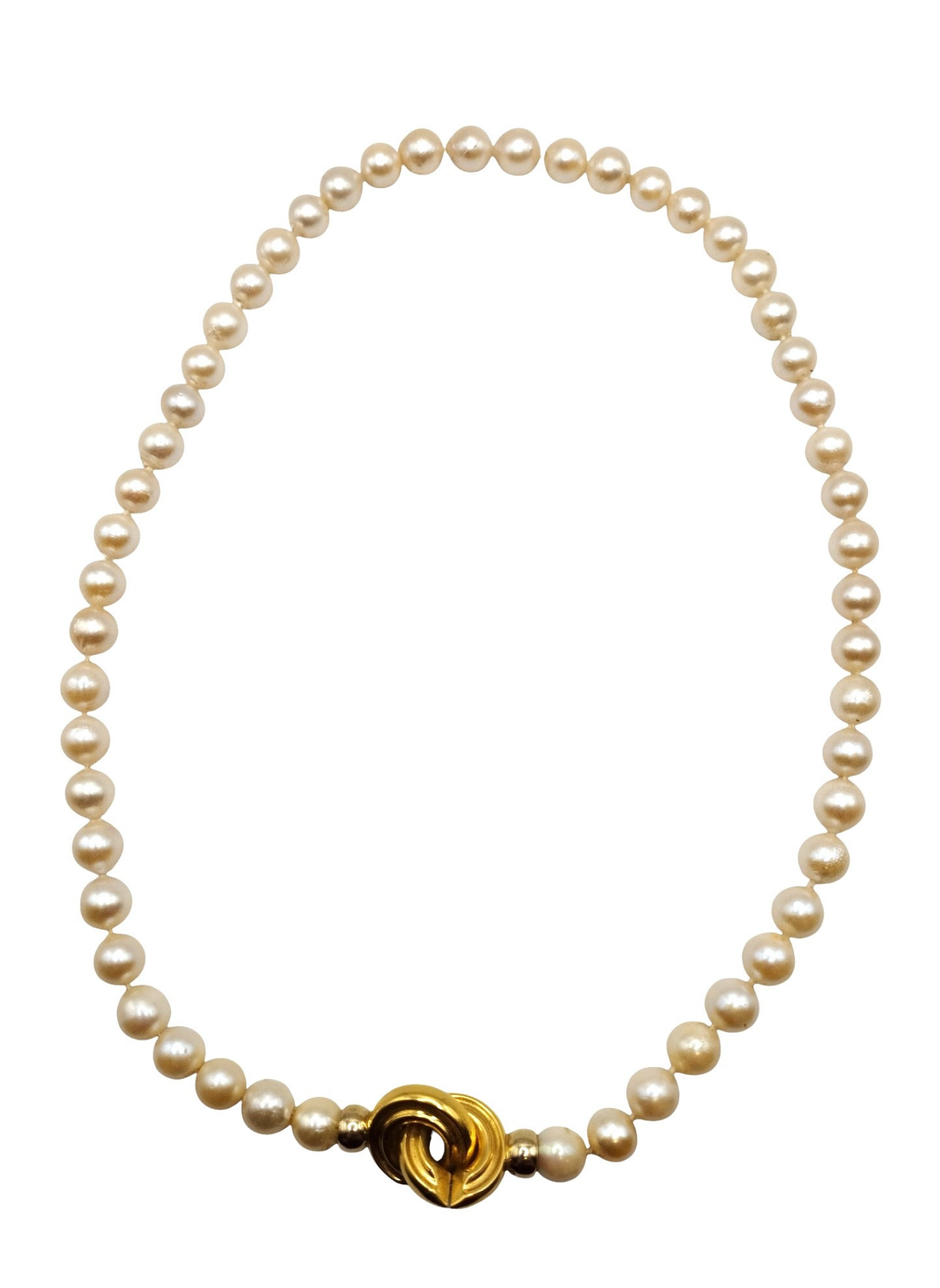 Collar de perles cultivadas de 8 mm con cierre de oro de 18 Kts galloneado.El largo del collar es de 53 cms.
