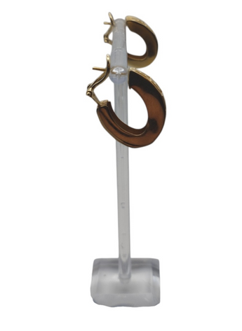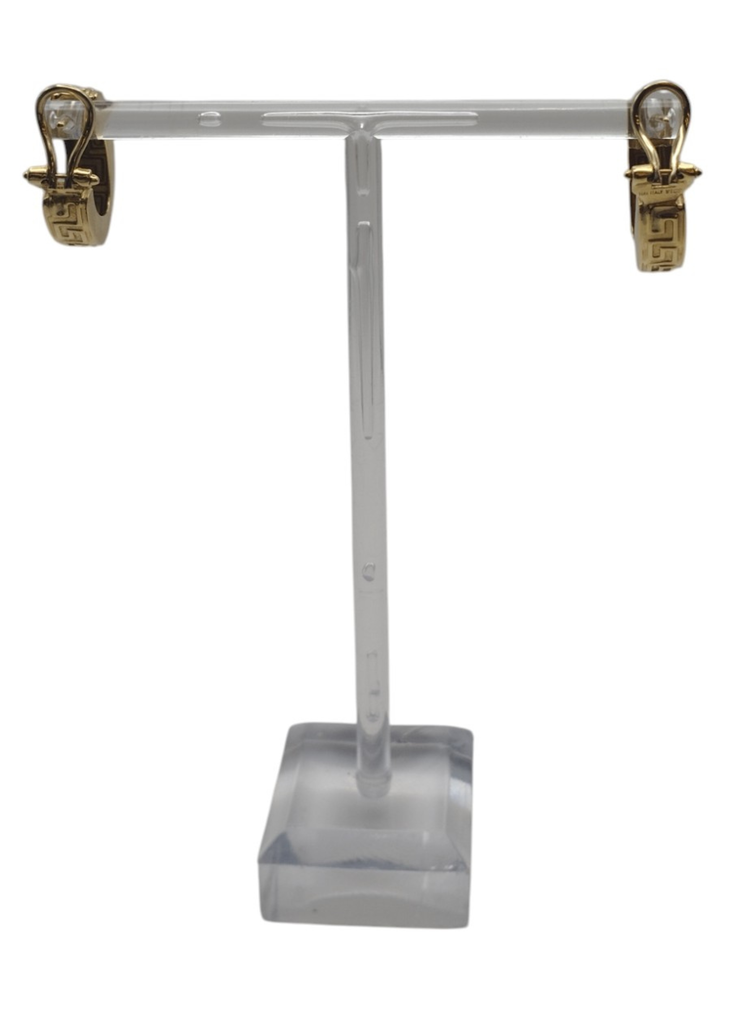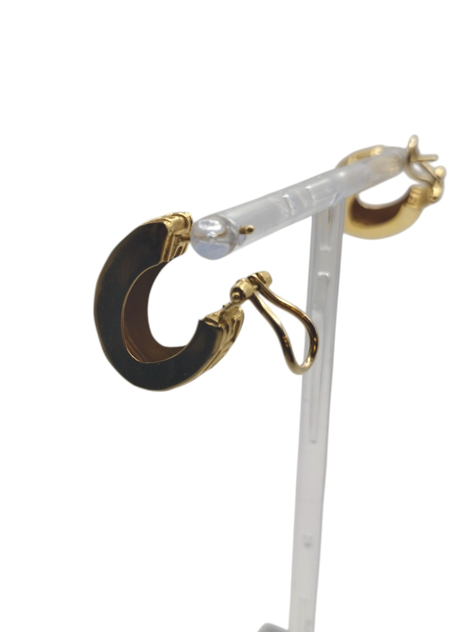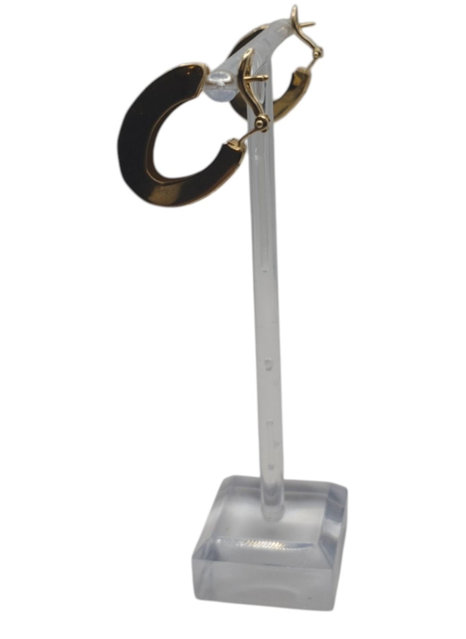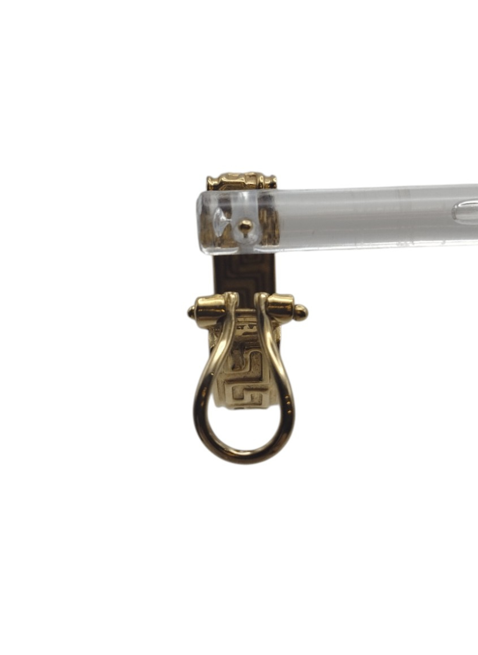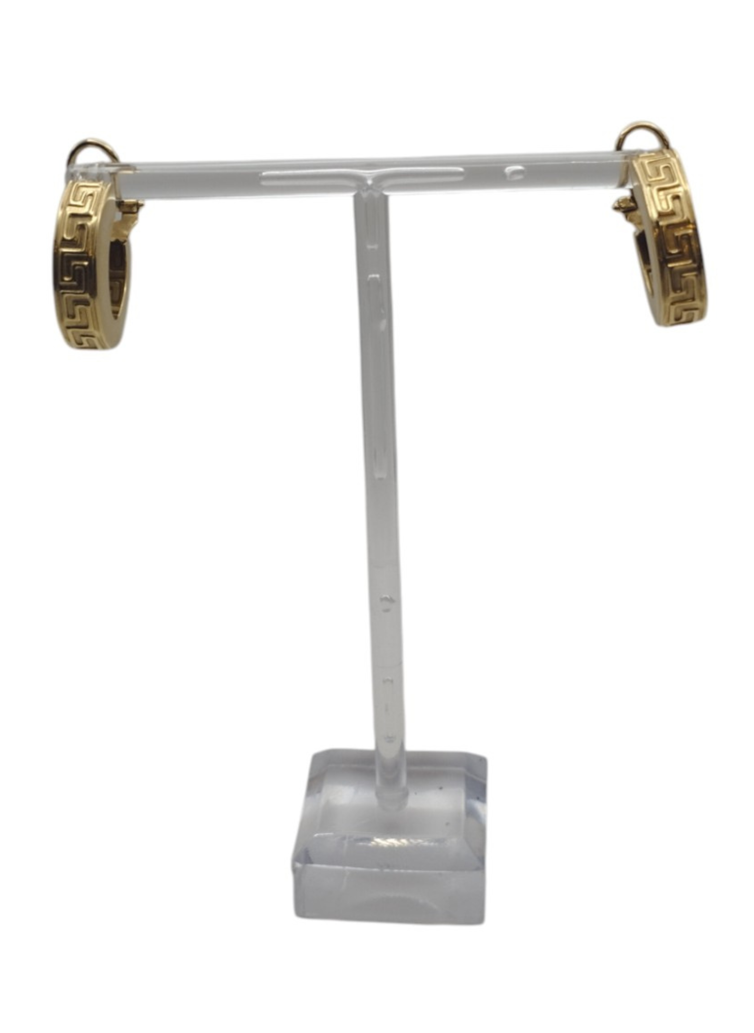 Pendientes de oro de 14 Kts ,con forma de aro ovalado,con dibujos de grecas,con cierre Omega.Miden 22 mm de alto x 5,7 mm de ancho.Pesan 6,7 grs de oro.Perfecto estado.