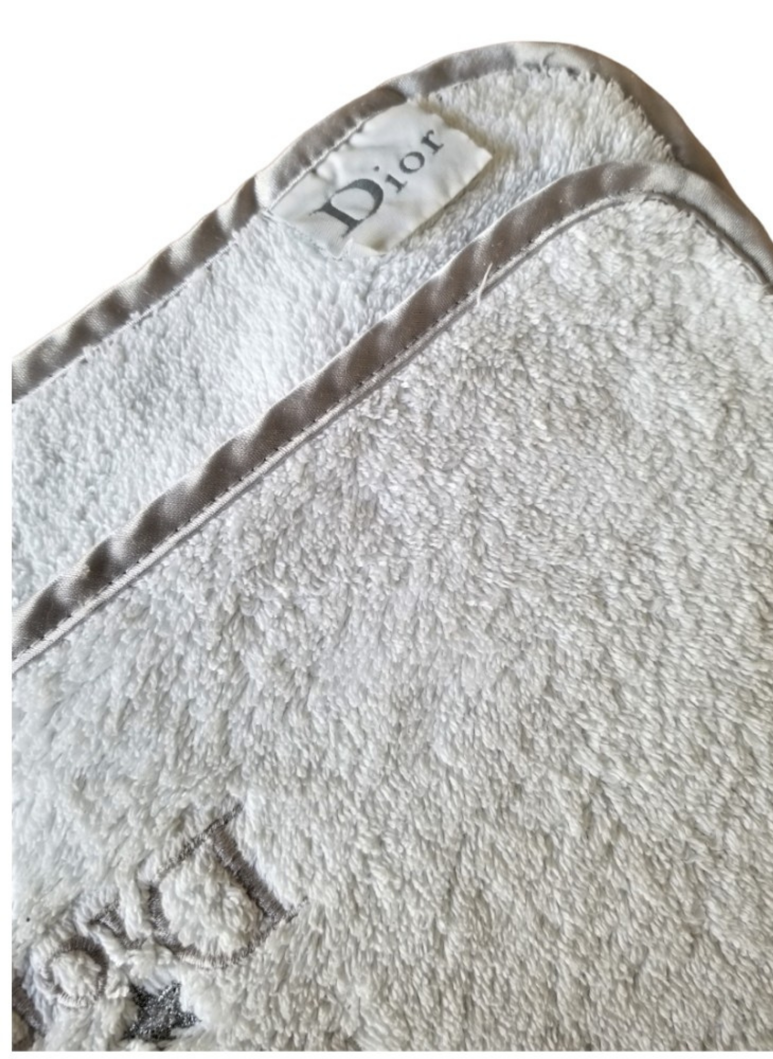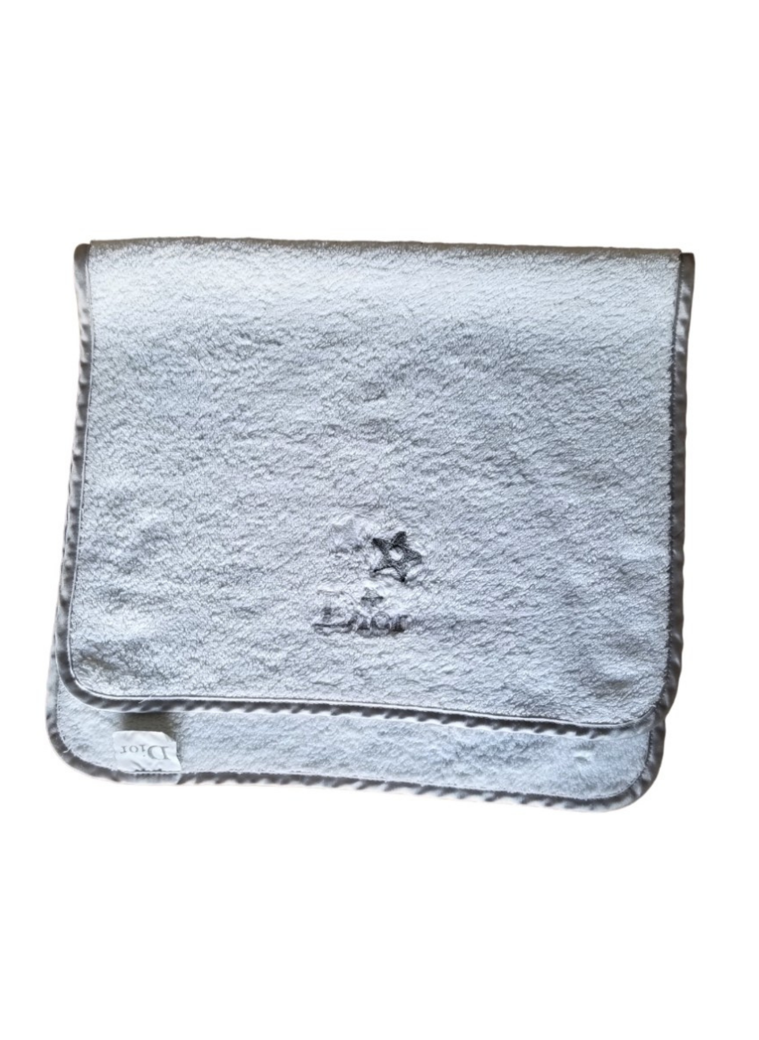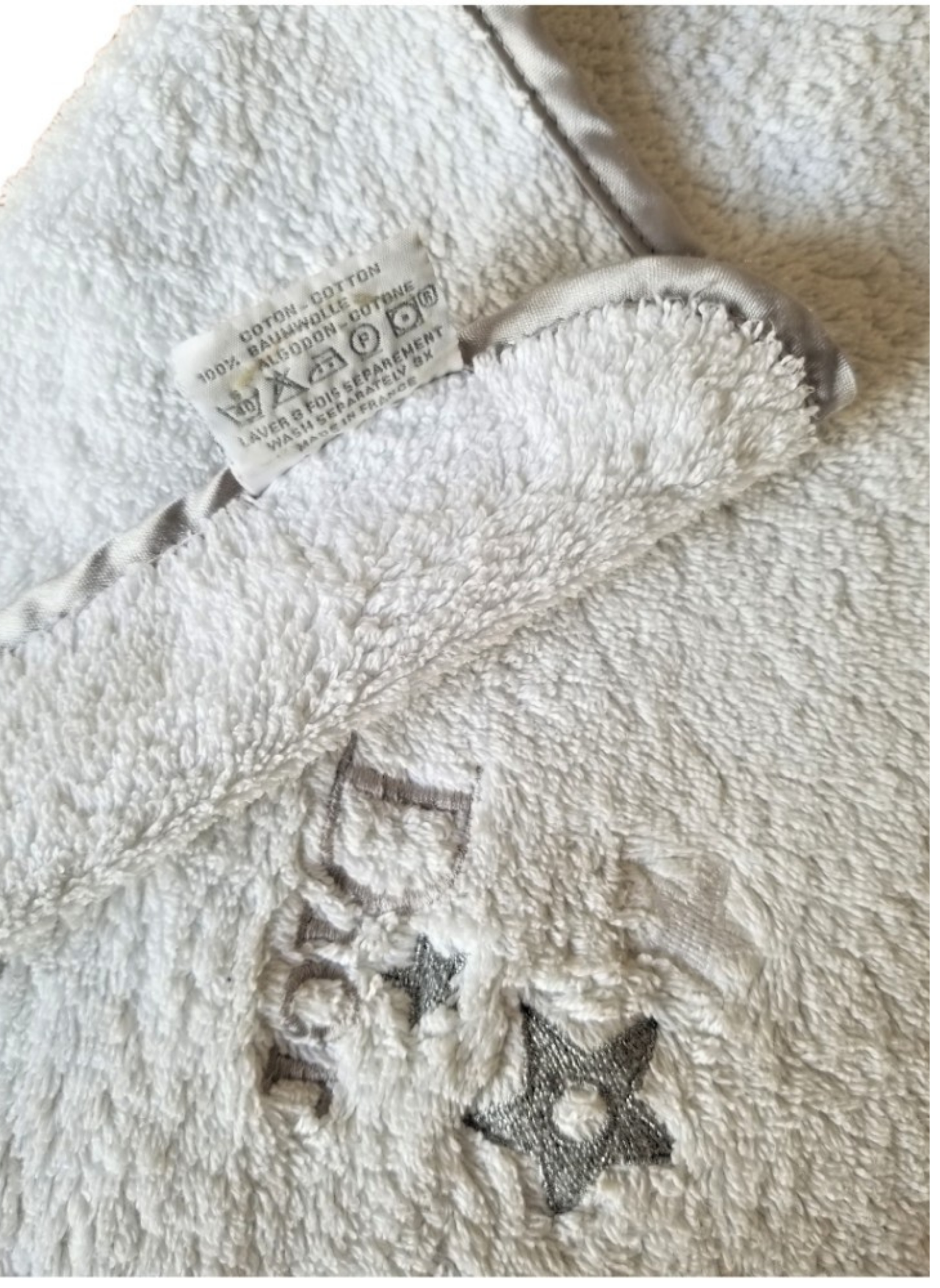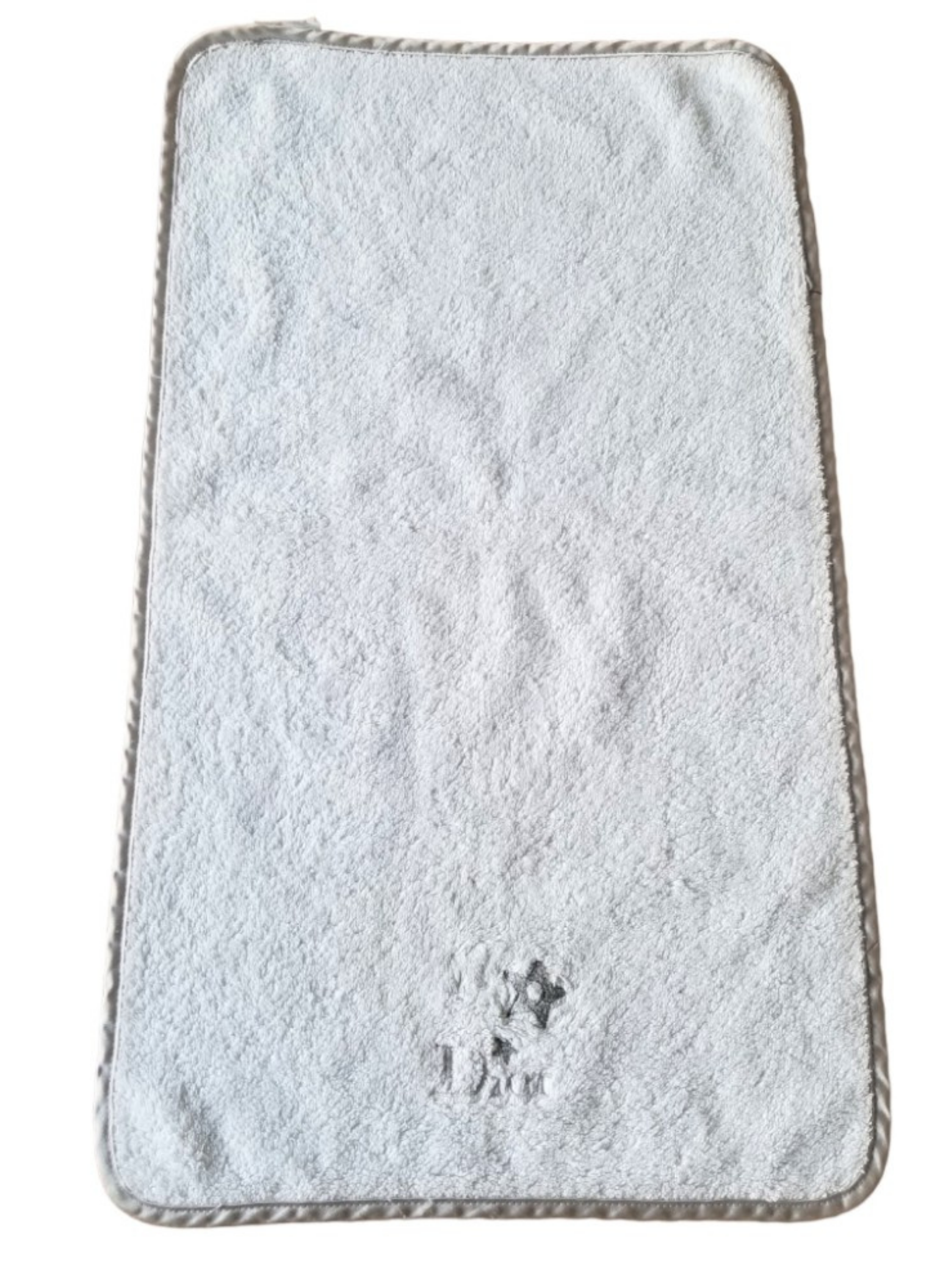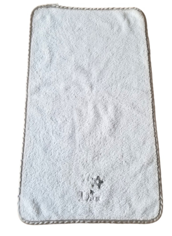 Toalla lavabo Dior  blanca con estrella en color gris plata, orla de raso en color gris.100% algodón.