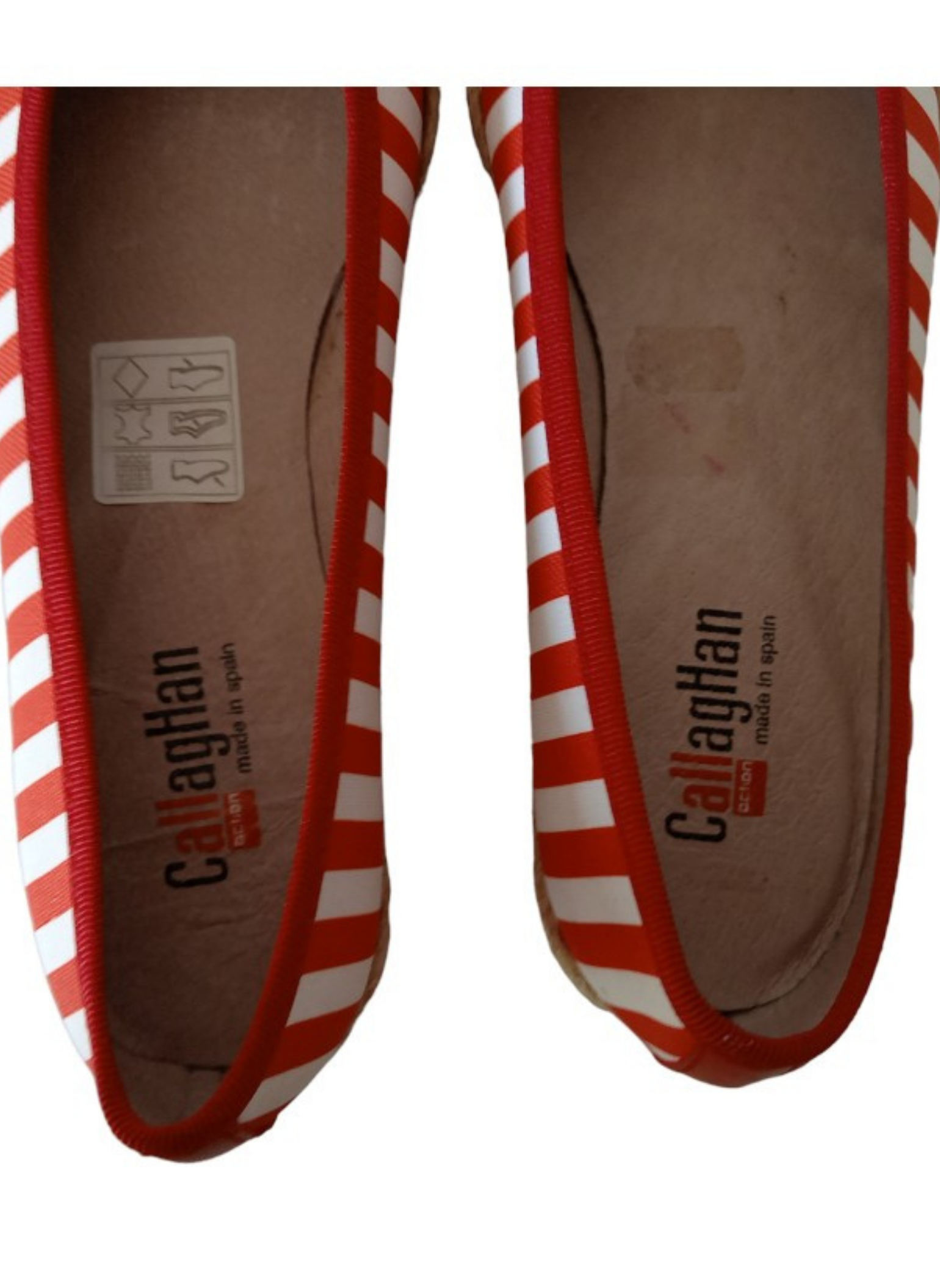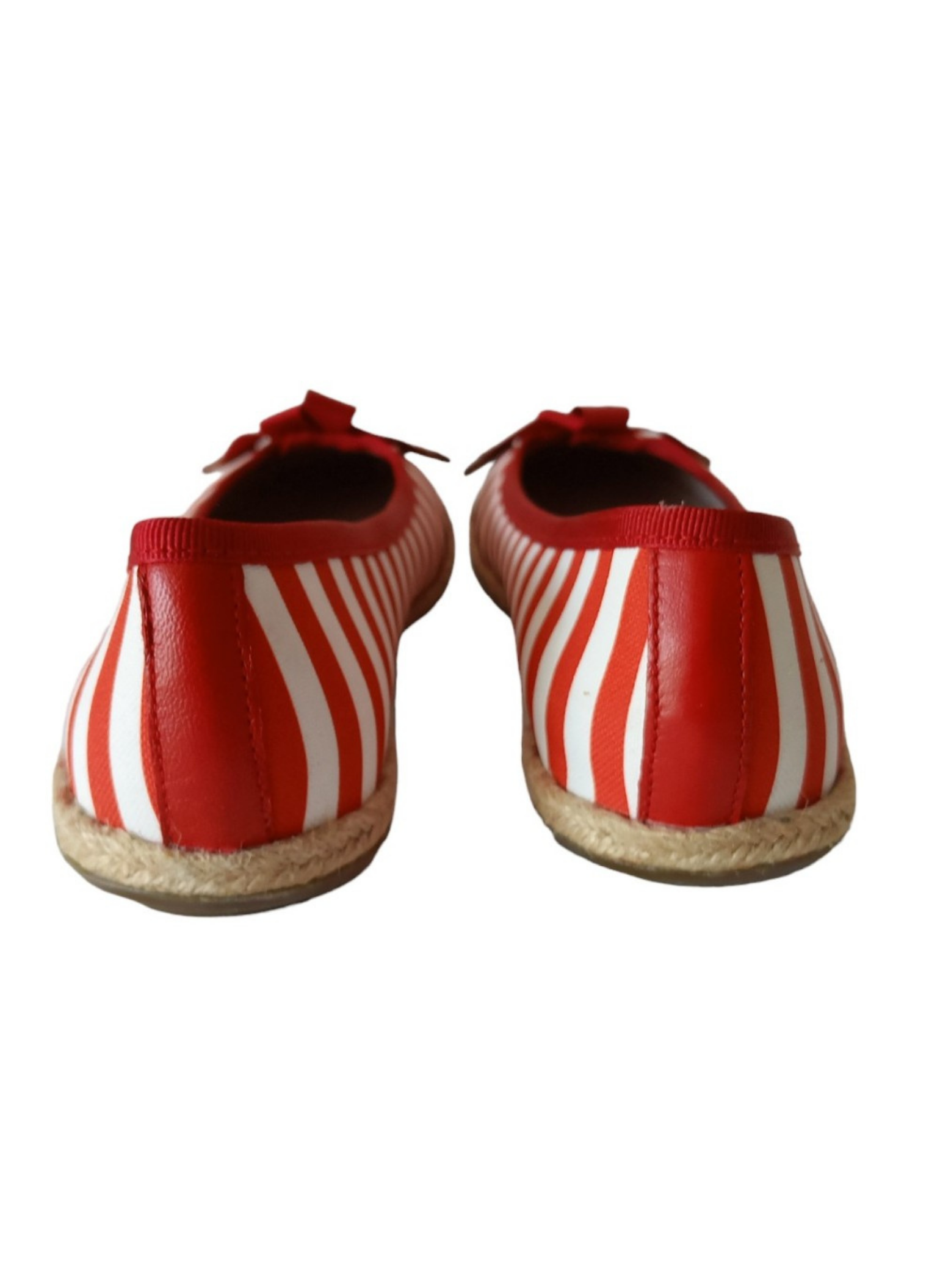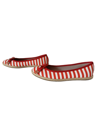 Discover the perfect balance between style and comfort with these white and red striped fabric and rubber ballerinas!
