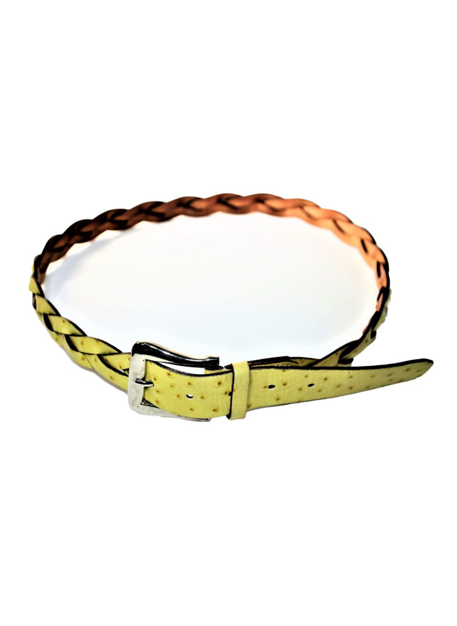 Ostrich skin provides a distinctive texture and different shine. Its yellow tone adds a touch of boldness and energy to your outfits, while its braided design adds a touch of originality.