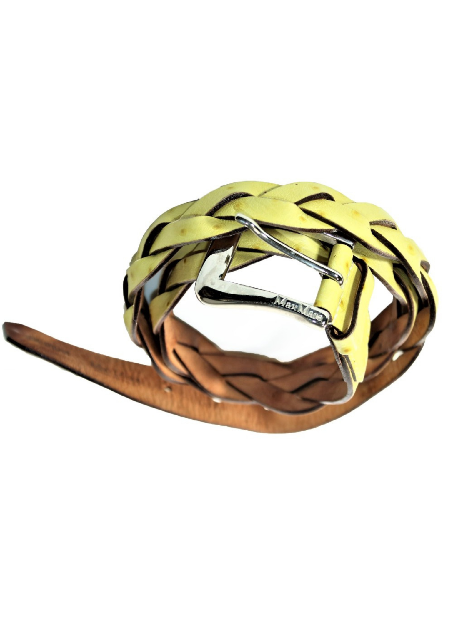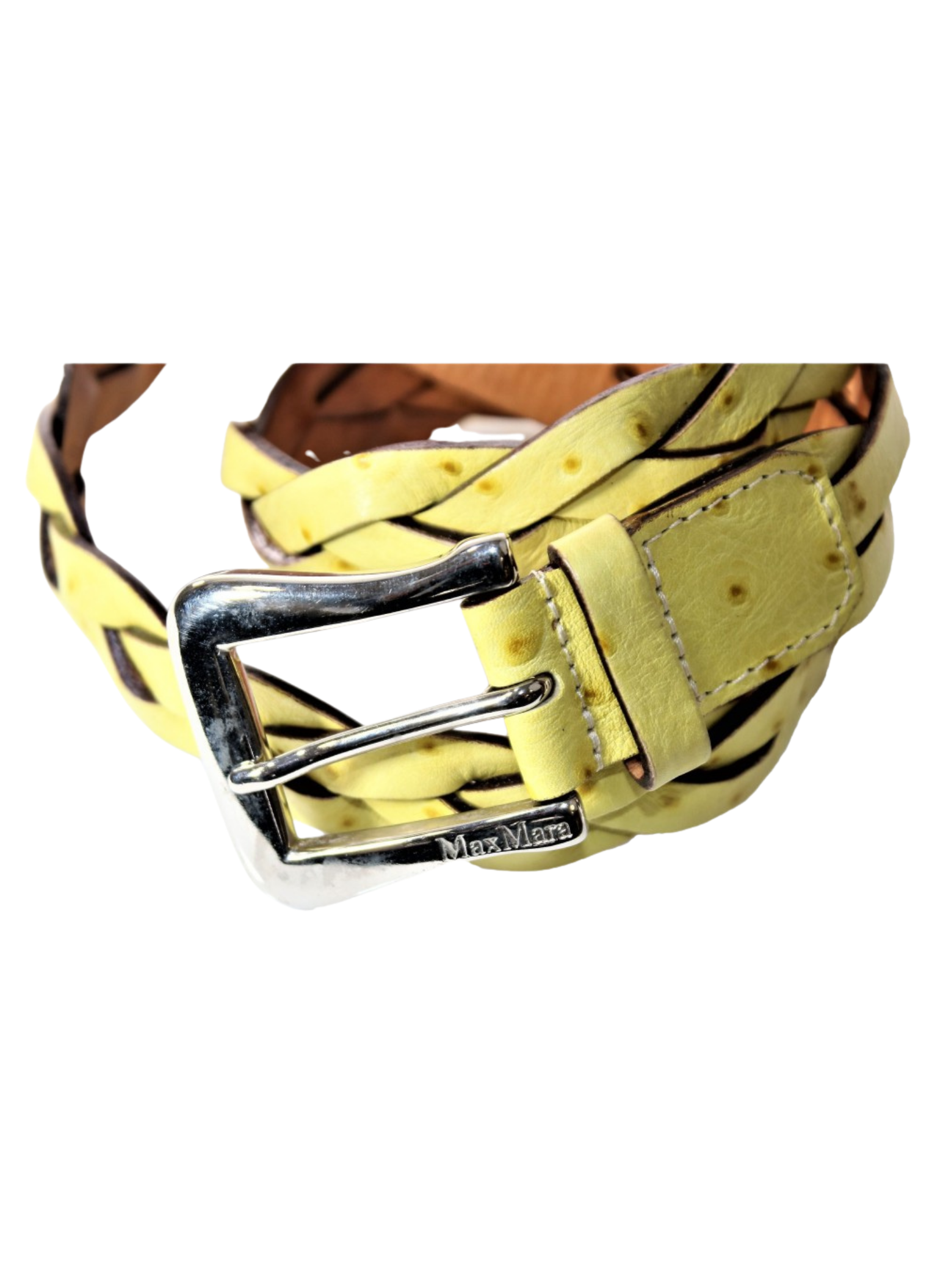 Yellow braided ostrich skin belt from the Max Mara brand.