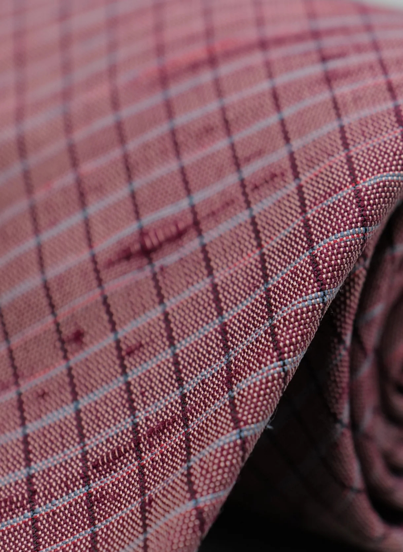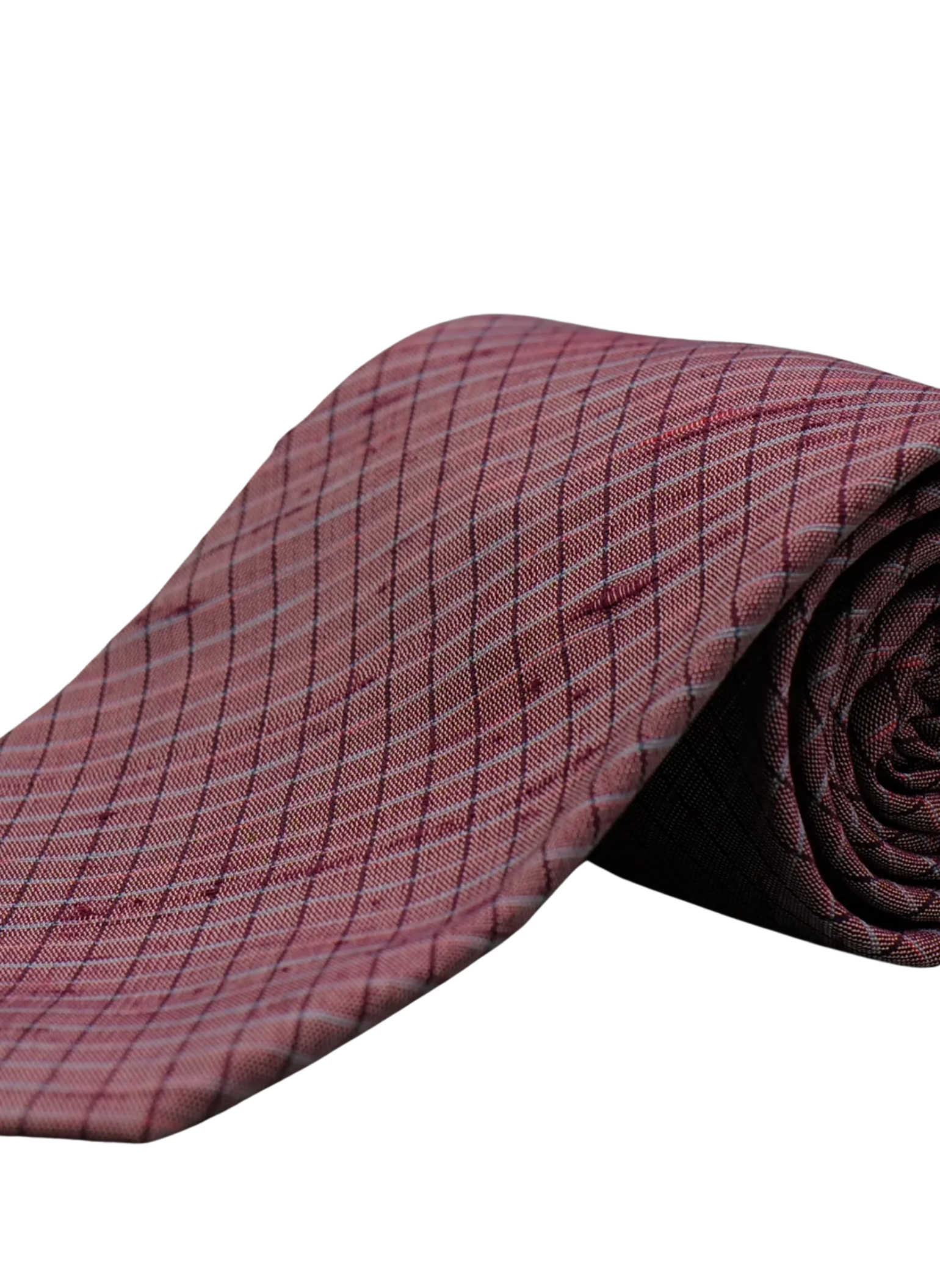 Corbata de color granate a cuadros con líneas azules, elaborada al 100% de seda, de la marca Stimawatra.