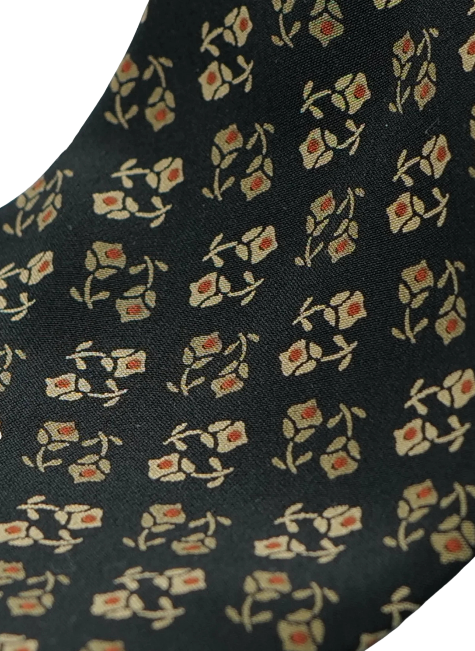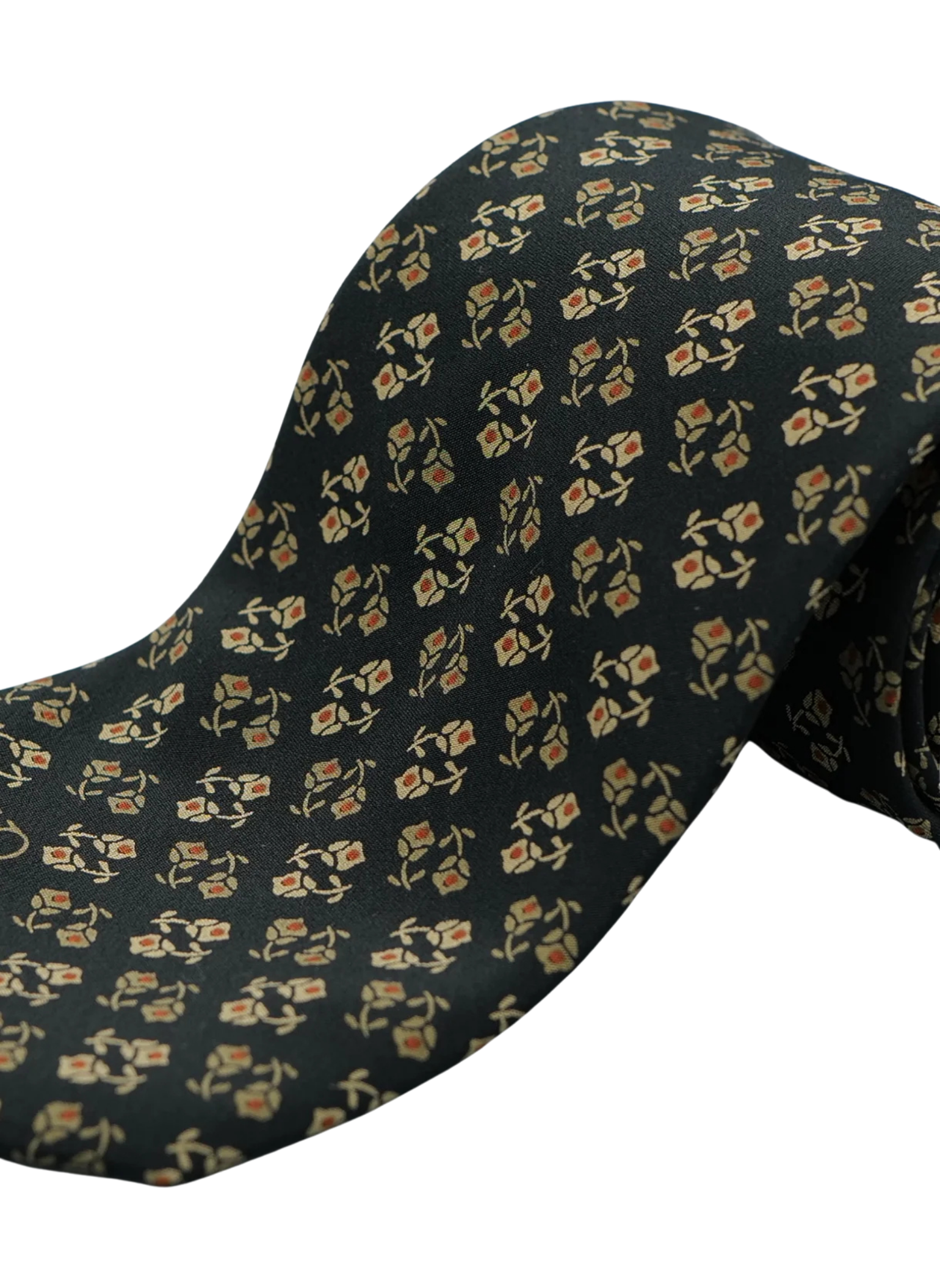 Black tie adorned with Valentino flowers. Made from 100% silk, it is a style statement. Every detail has been designed to capture the essence of fashion. The flowers adorning the tie add a touch of charm. Whether you're getting ready for a special occasion or impressing at the office, this tie will be the center of attention.