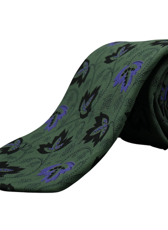 Green tie adorned with black and purple flowers by Valentino, a piece that fuses classic elegance with a touch of boldness. Made from 100% silk, this tie offers a feel of luxury and sophistication. The green is perfect for the black and purple flowers that adorn the tie. Whether you're getting ready for a special occasion or simply want to elevate your everyday style, this tie will become the center of attention.