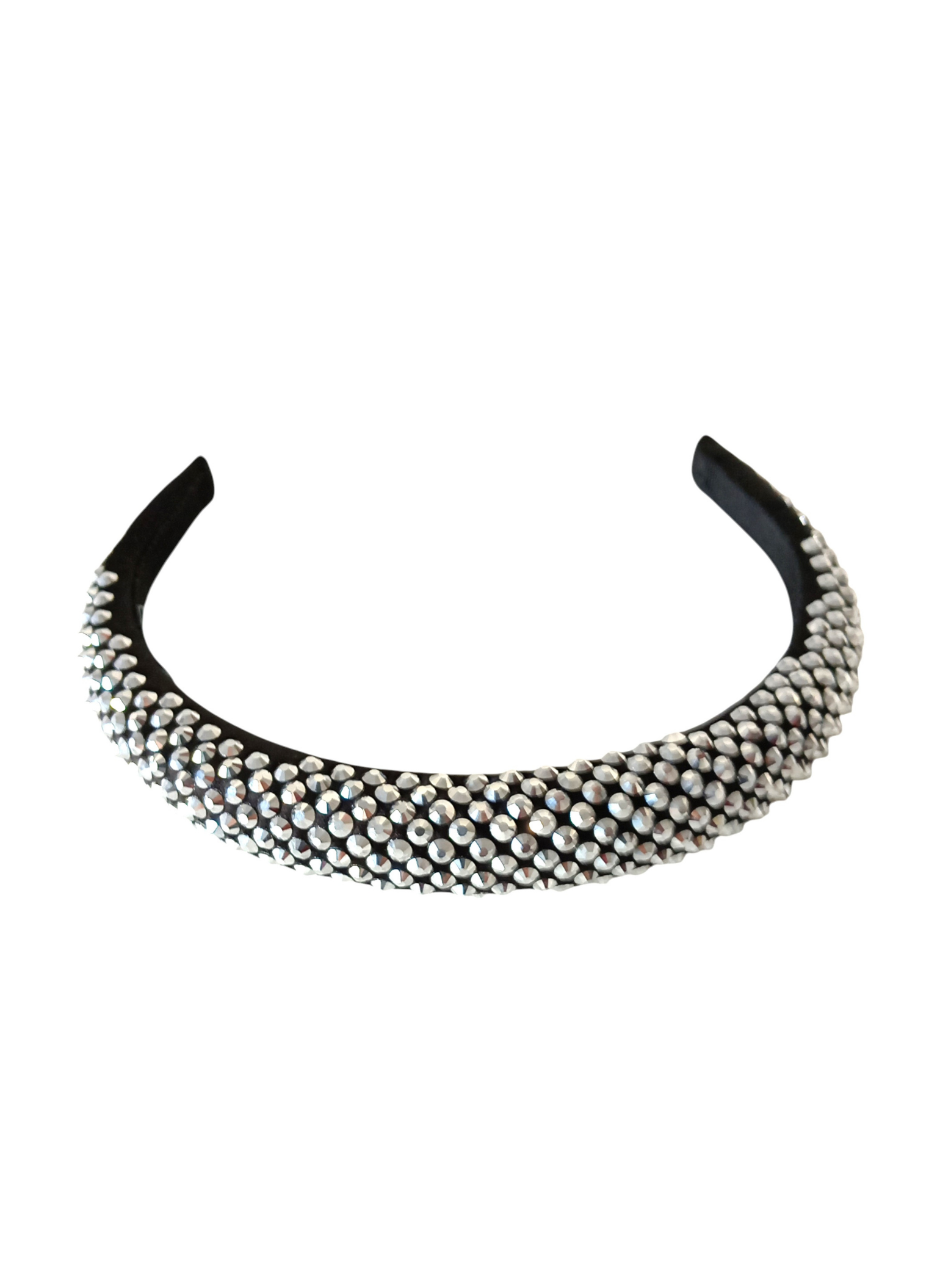 Diadema gera de Prada con piedras plateadas brillantes.Esta en perfecto estado con su caja y su bolsa guardapolvos.Mide 15 cms de diametro por el interior x 2 cms de alto.