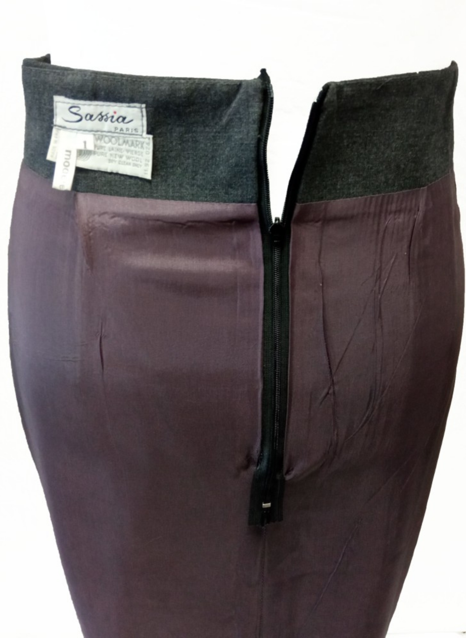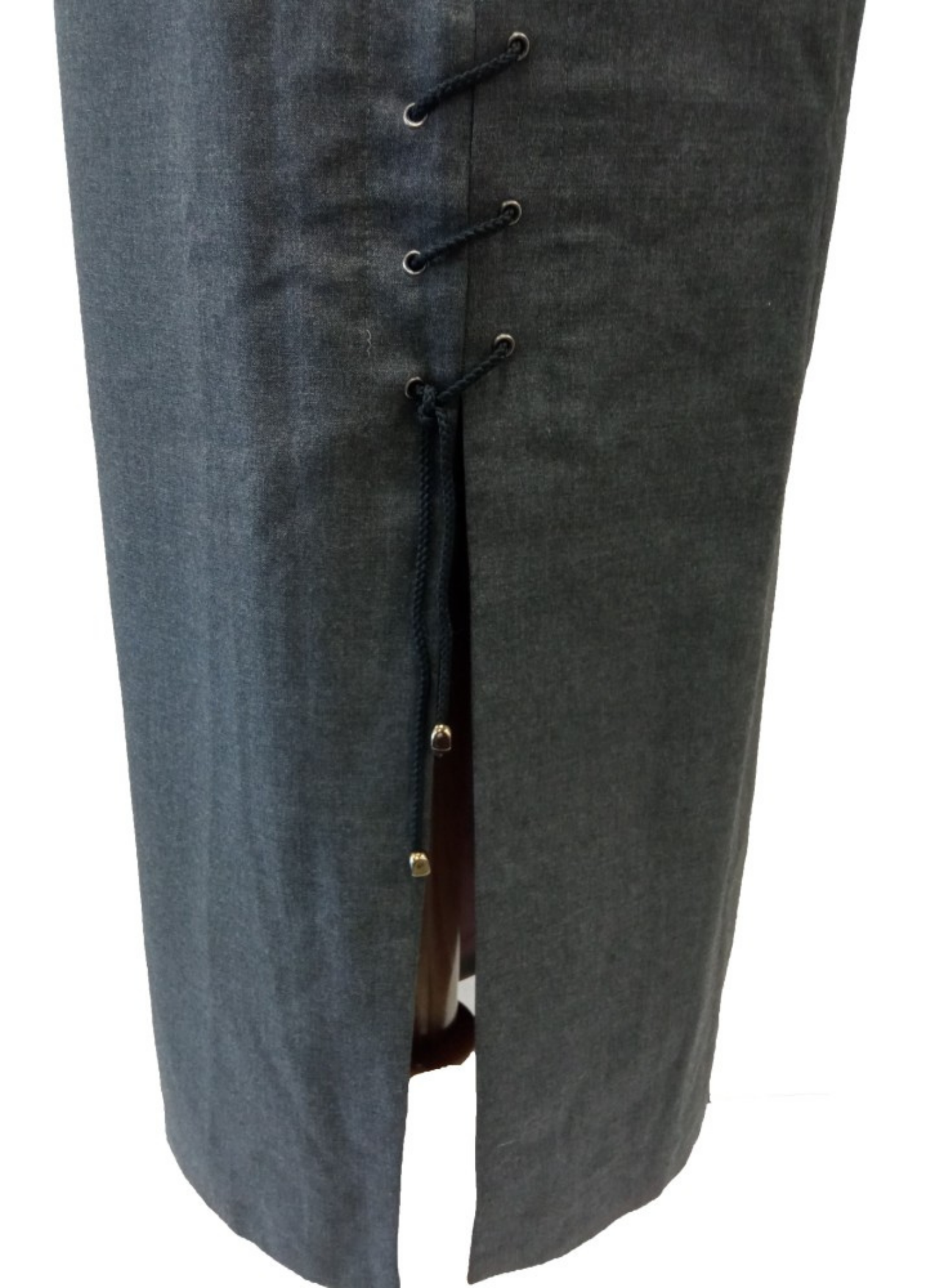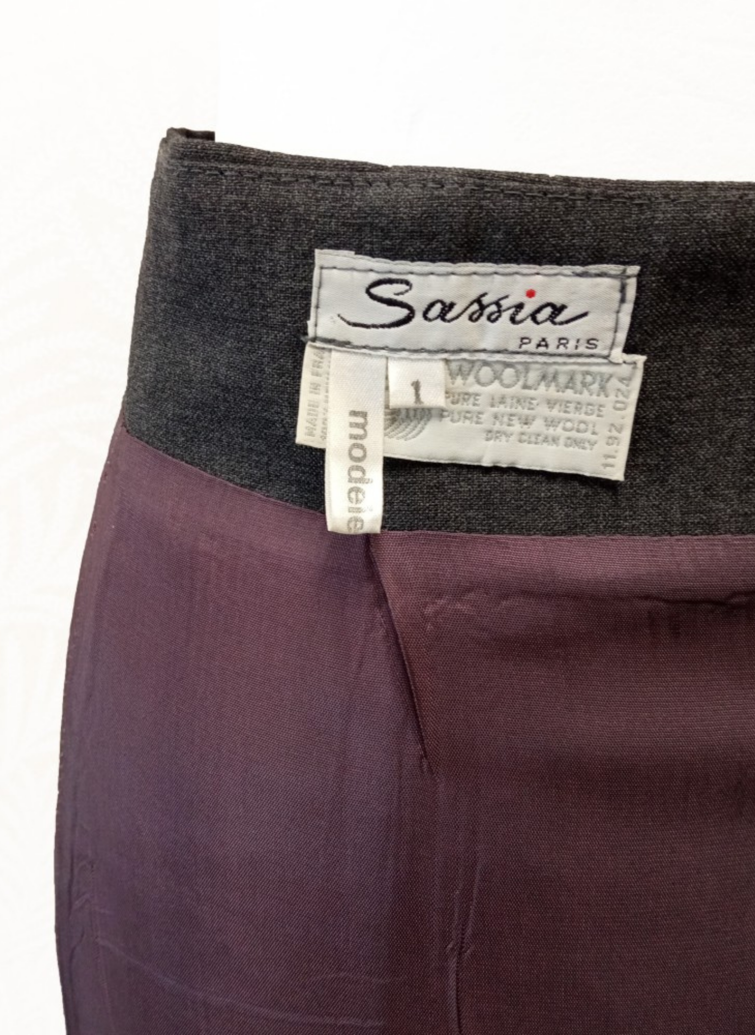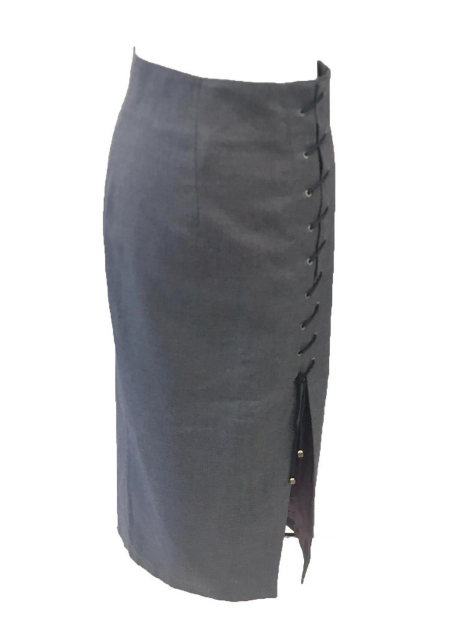 Sassia Paris brand skirt made with 100% dark gray wool with braided detail with drawstring on the side with opening. This skirt does not show any signs of wear. This skirt is size 36.