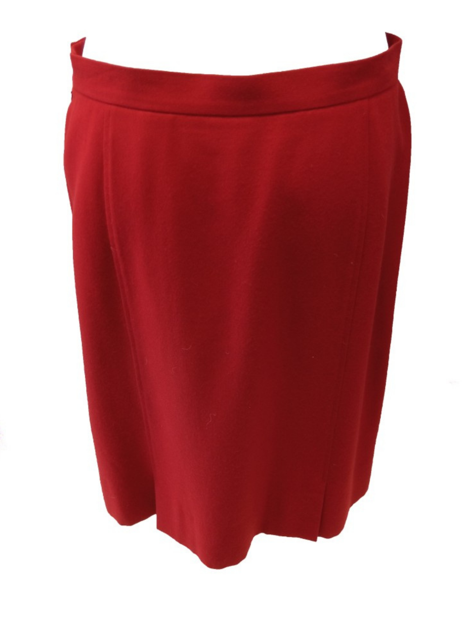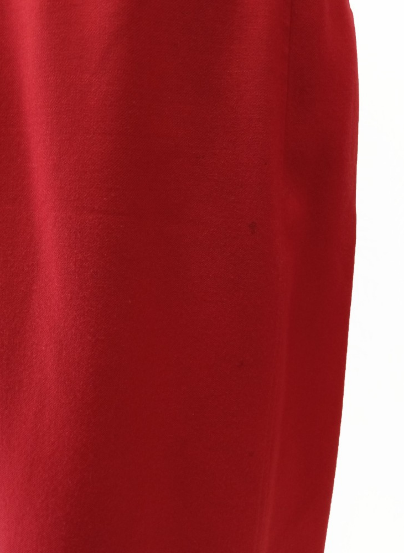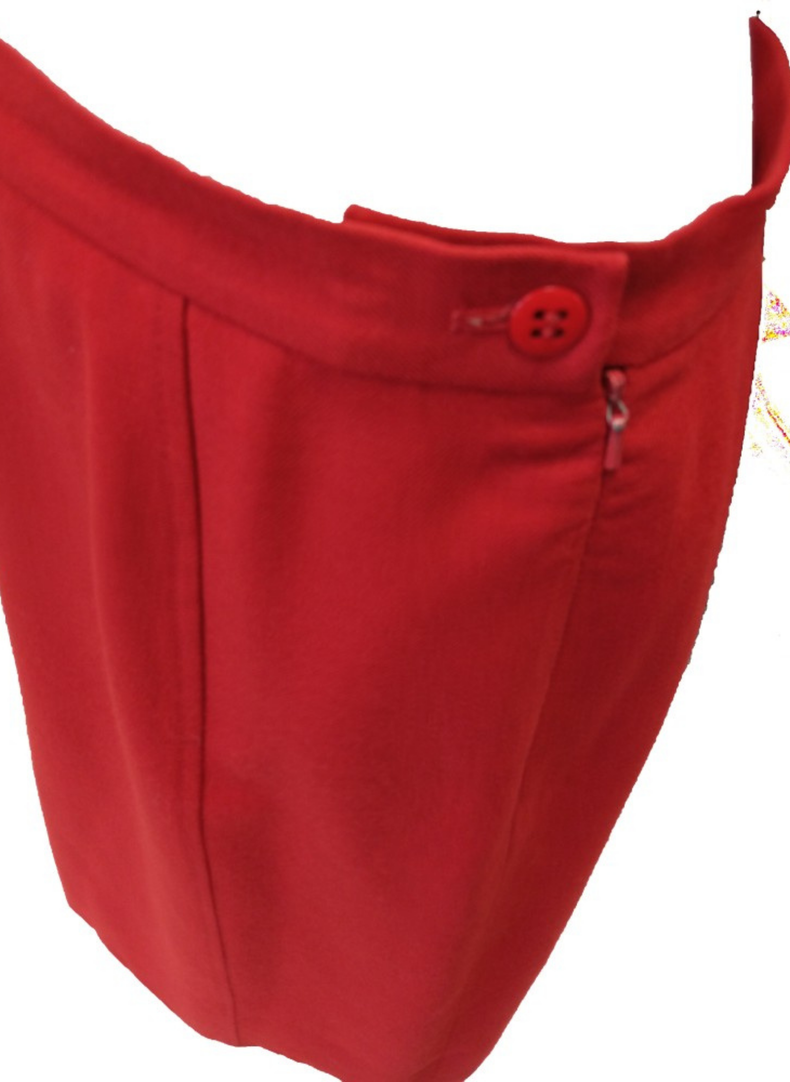 Red Jaeger brand skirt. Made with 100% wool. It contains two small openings on the back, a zipper closure and a side button, (it has some stains). Size 42.