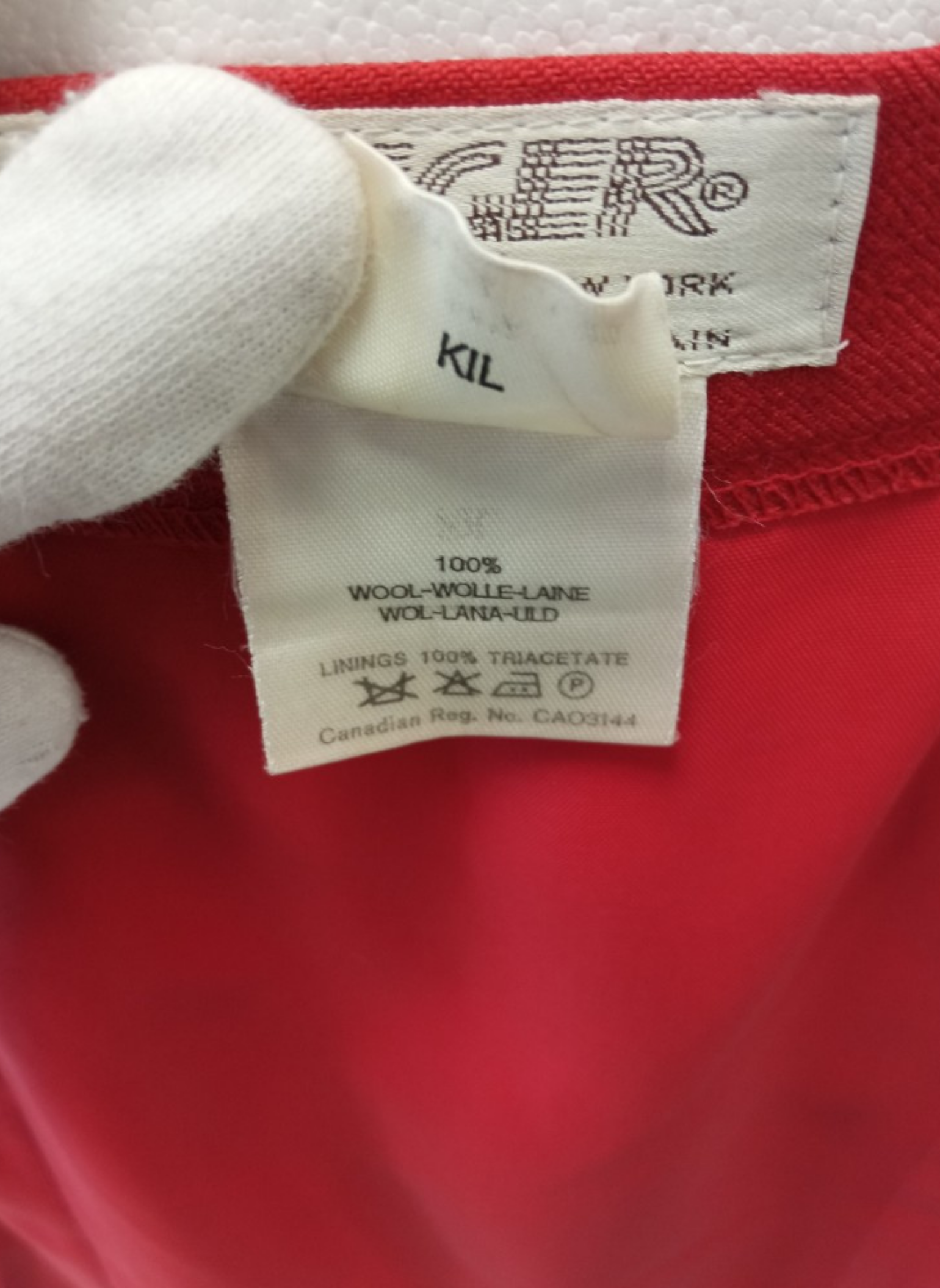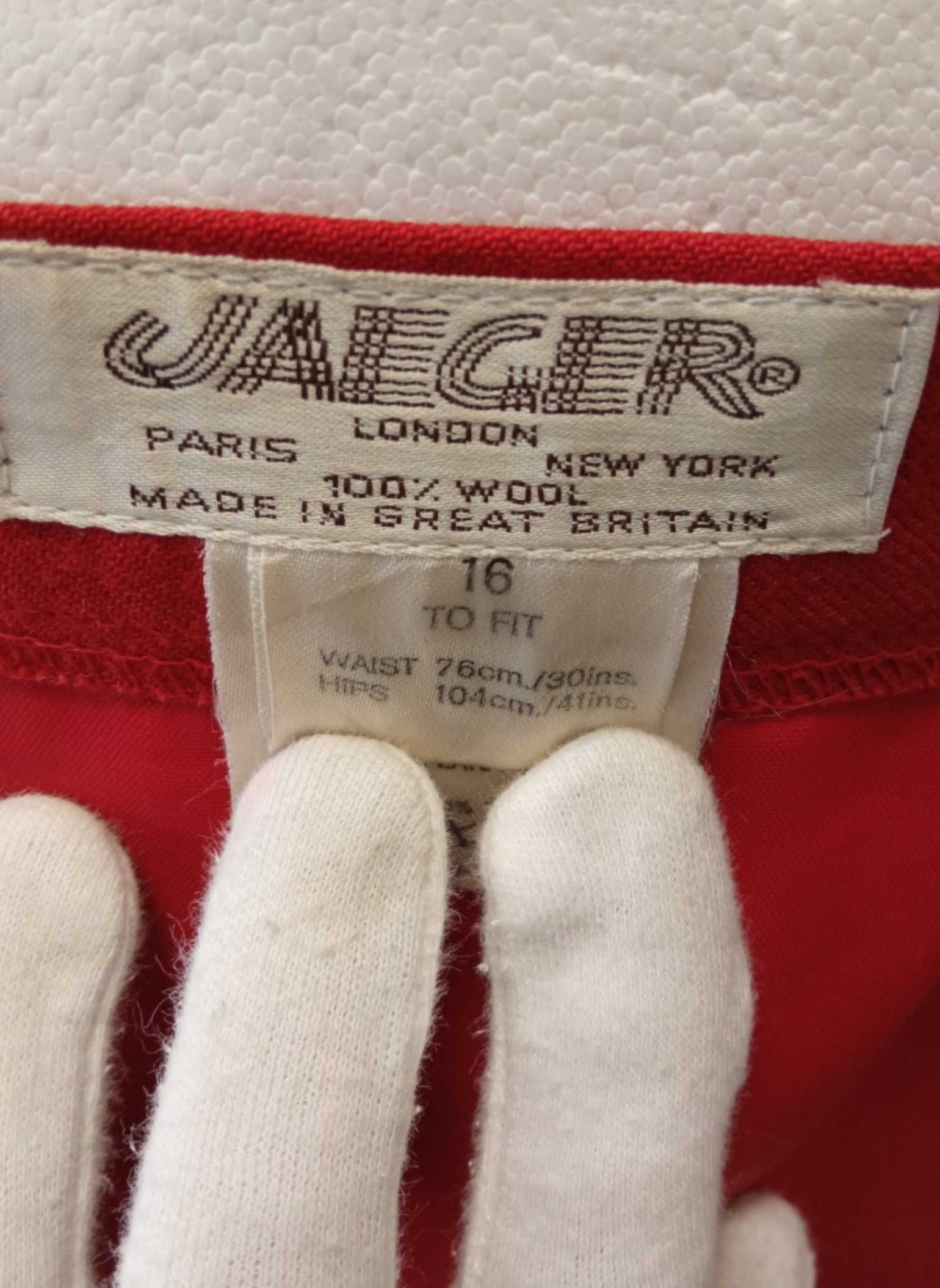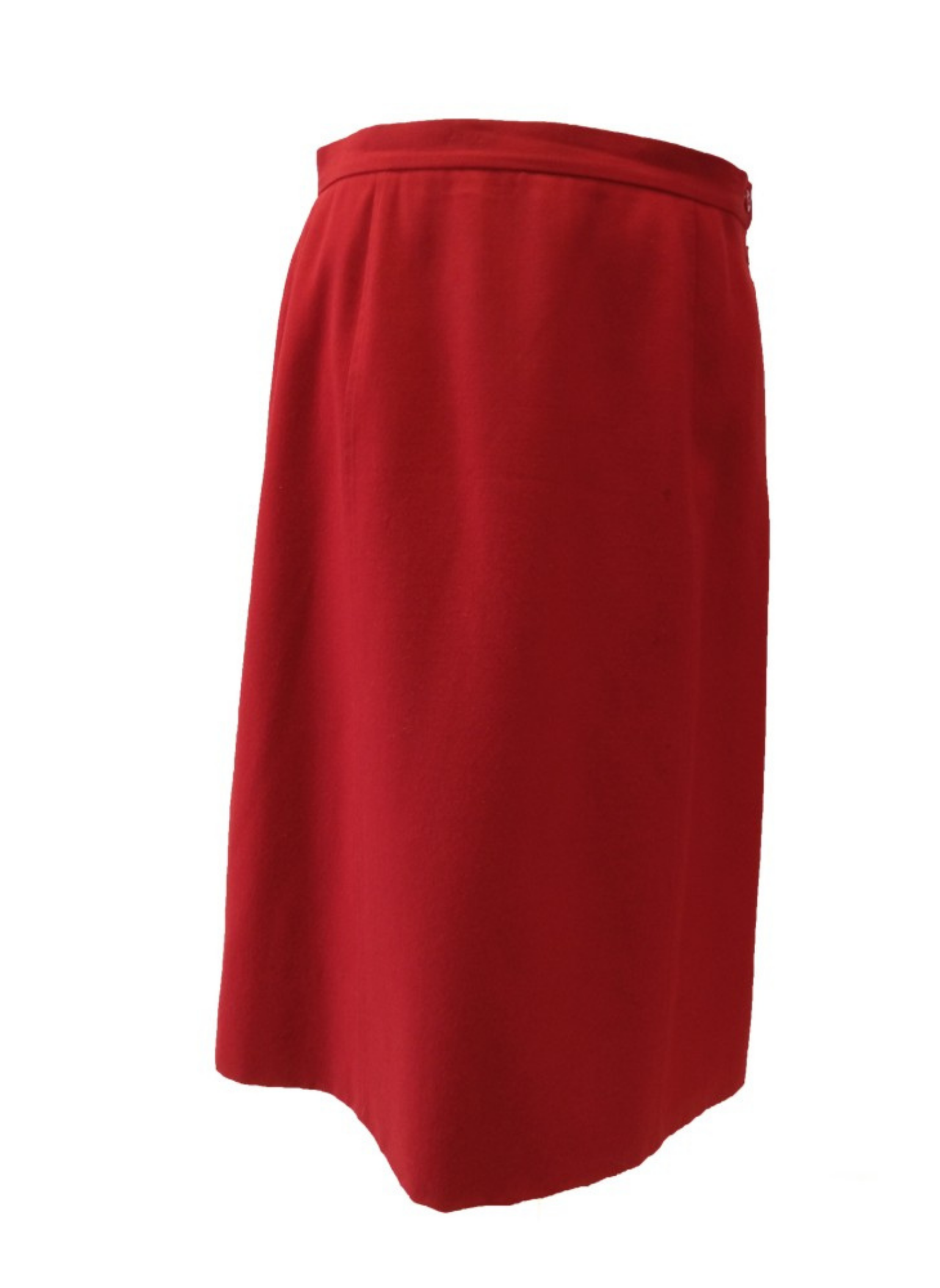 Red Jaeger brand skirt. Made with 100% wool. It contains two small openings on the back, a zipper closure and a side button, (it has some stains). Size 42.