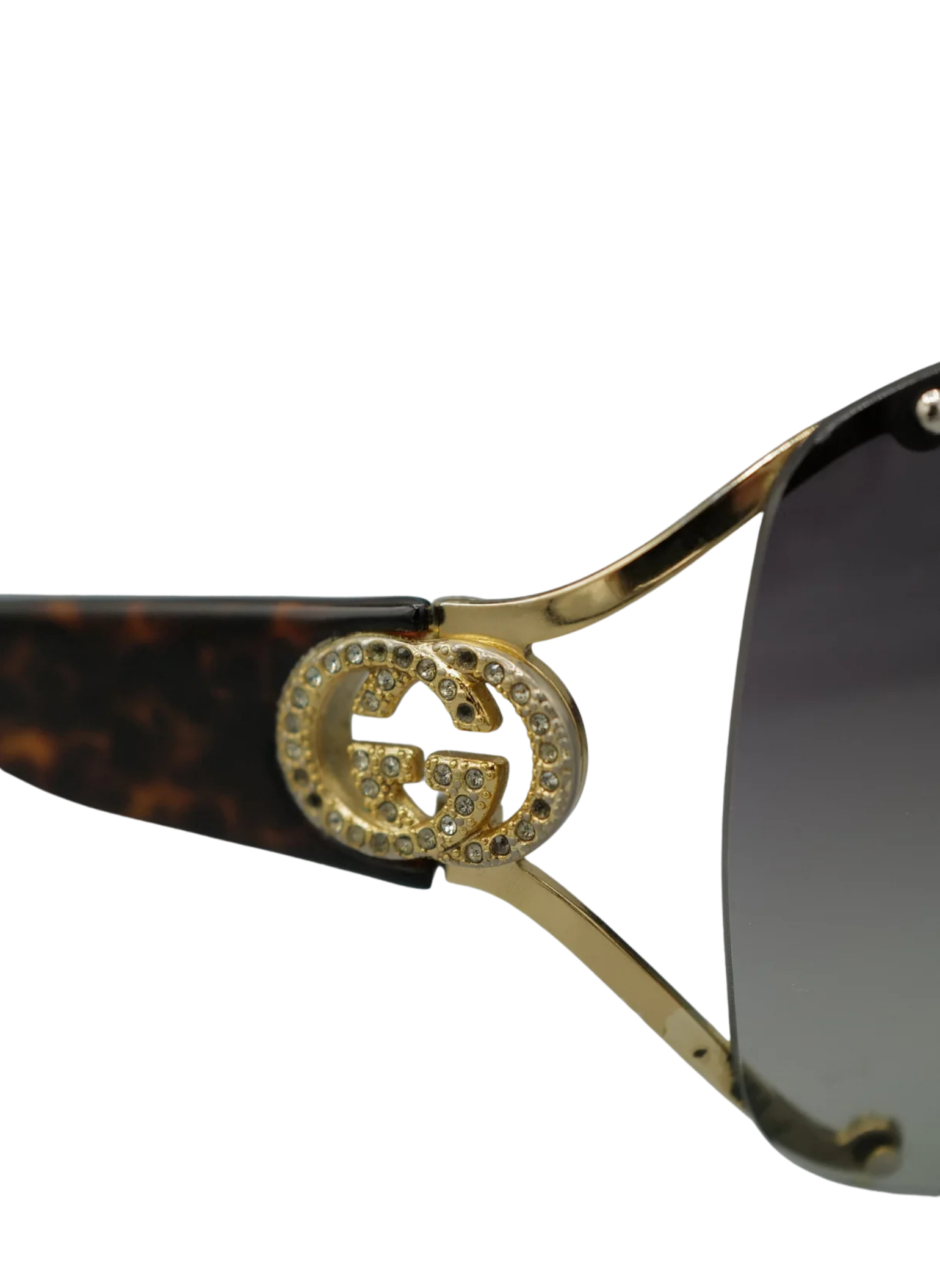 Gucci square sunglasses are the perfect accessory to add a touch of style to any outfit. Made with high quality materials, these glasses feature the iconic GG brand logo on both sides, making them easily recognizable and desired by any fashion lover. They contain rhinestones in the same logo.