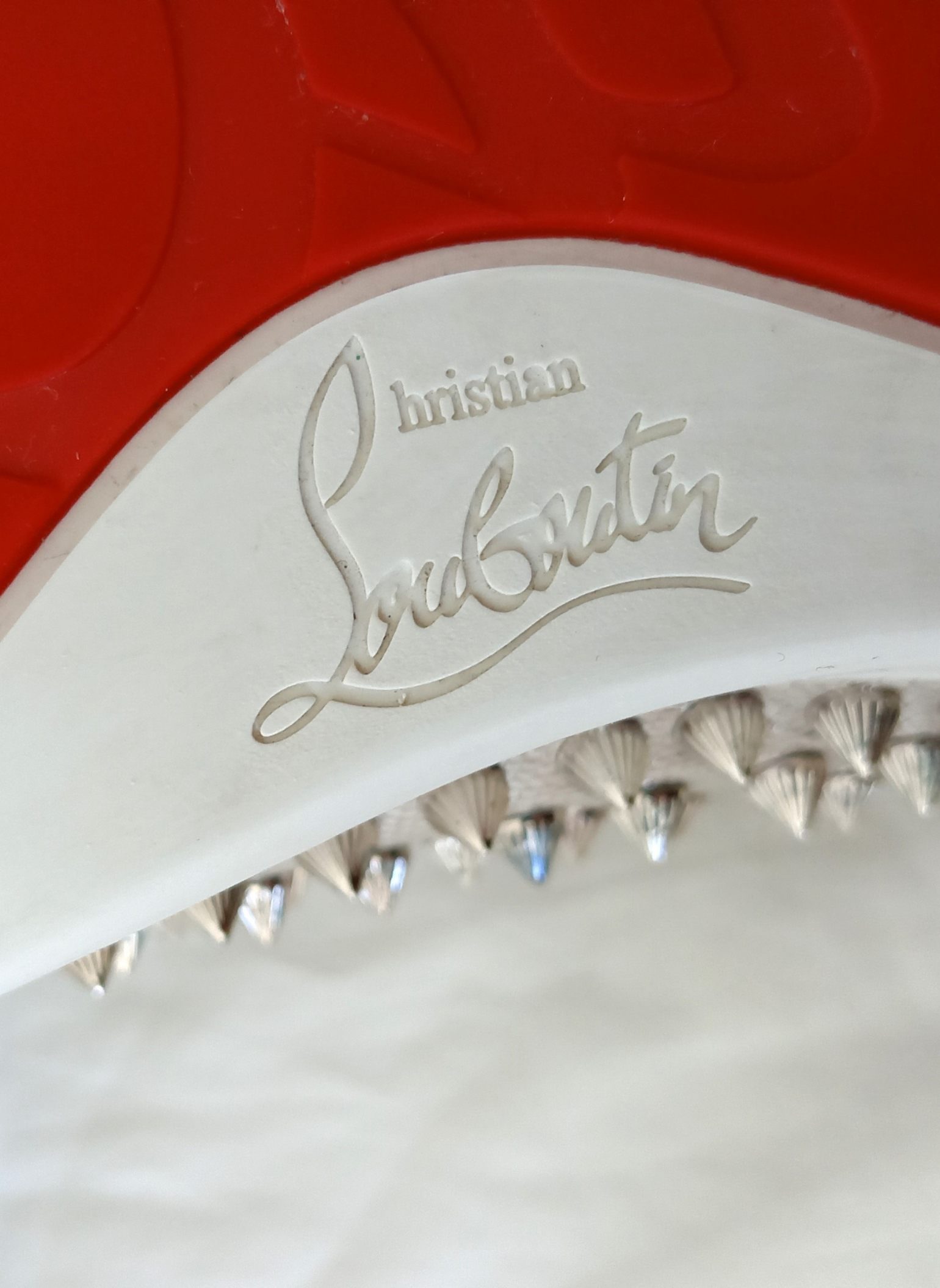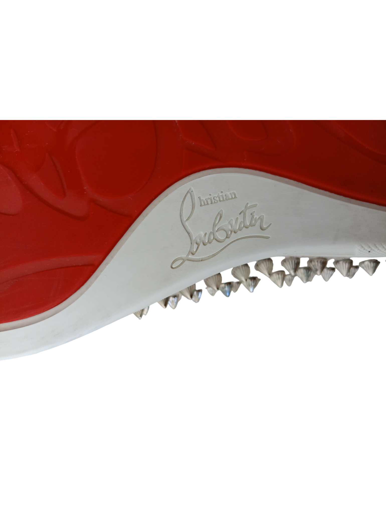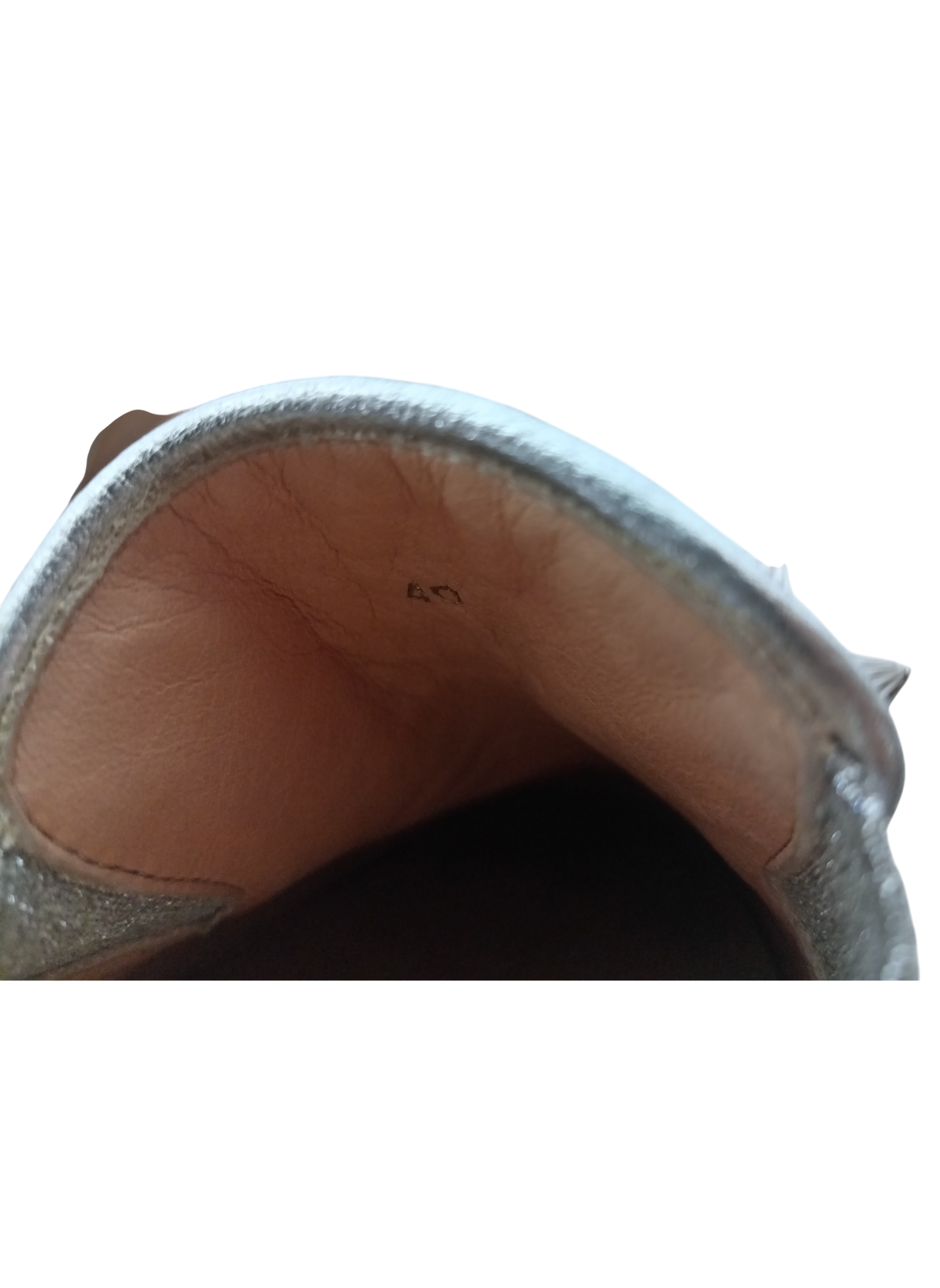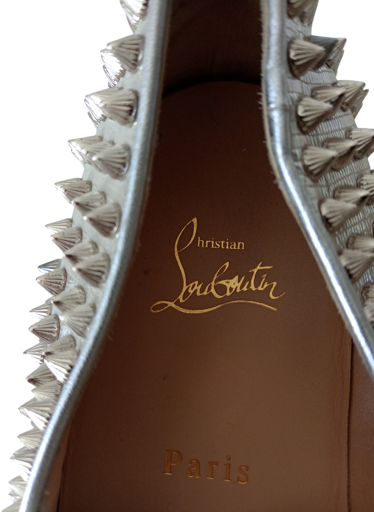 Mocasines de Christian Louboutin de piel metalizada plateada con tachuelas plateadas.Con goma blanca y la suela de color rojo tipico de la firma.Talla 40.Muy buen estado.