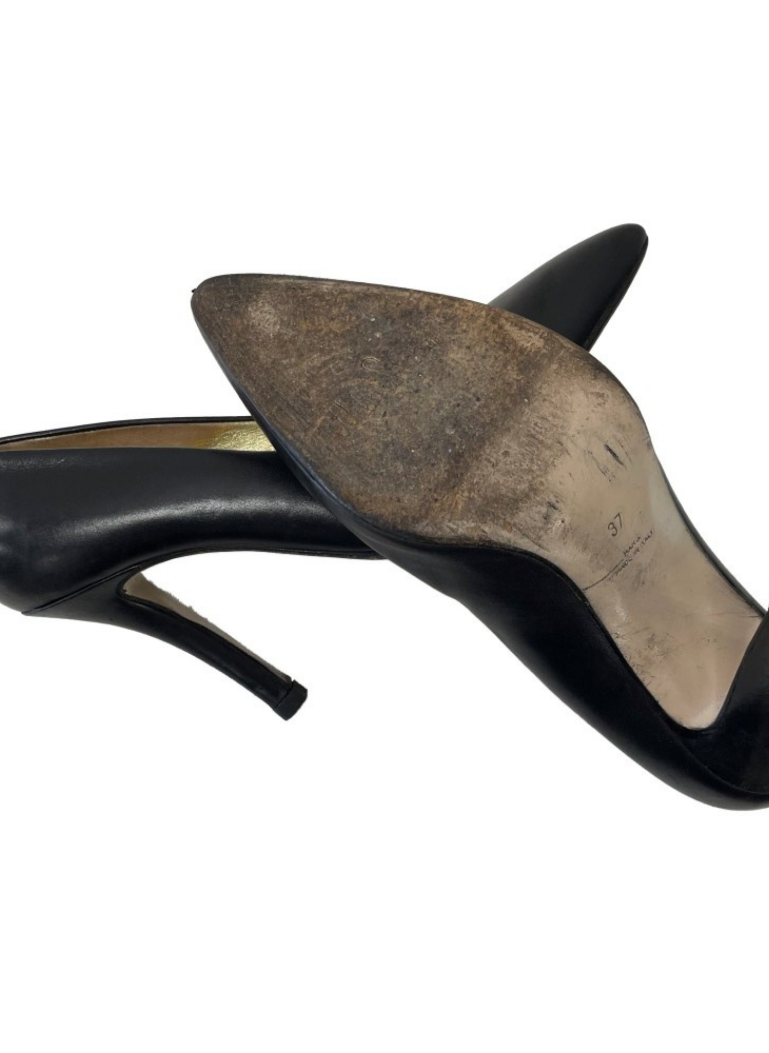 Tacón negro de la marca Walter Steiger de cuero color negro clásico. Son una talla 37 y el tacón mide 9,5cm. Estos tacones presentan muy pocas señales de uso.