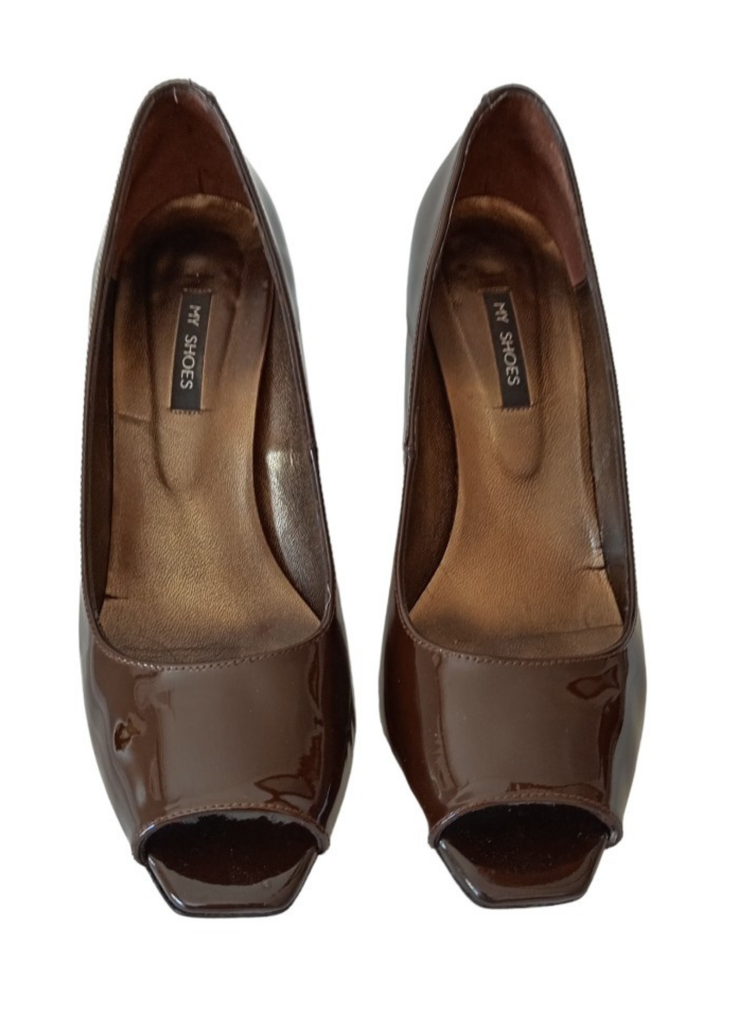 Discover the perfect balance between style and comfort with these elegant brown leather open-toe heels from My Shoes brand. Made with high quality leather.