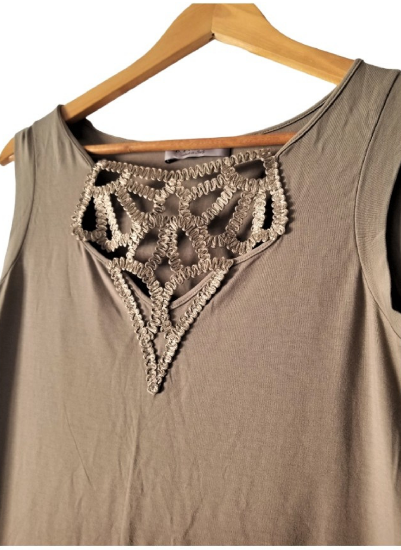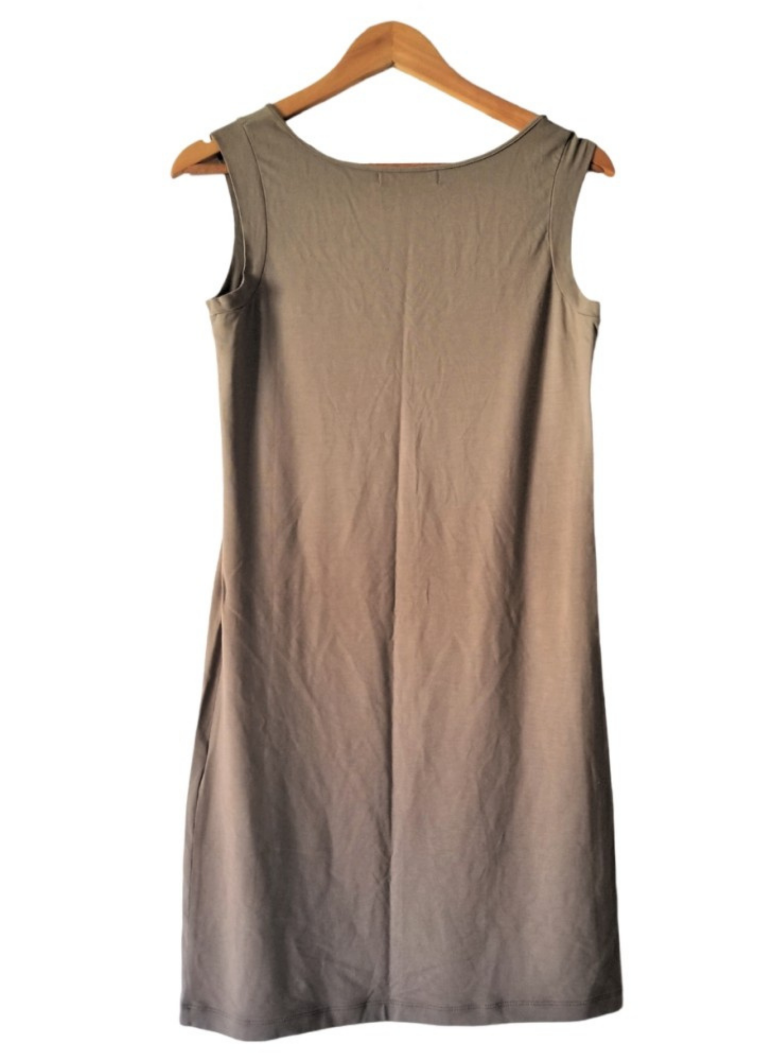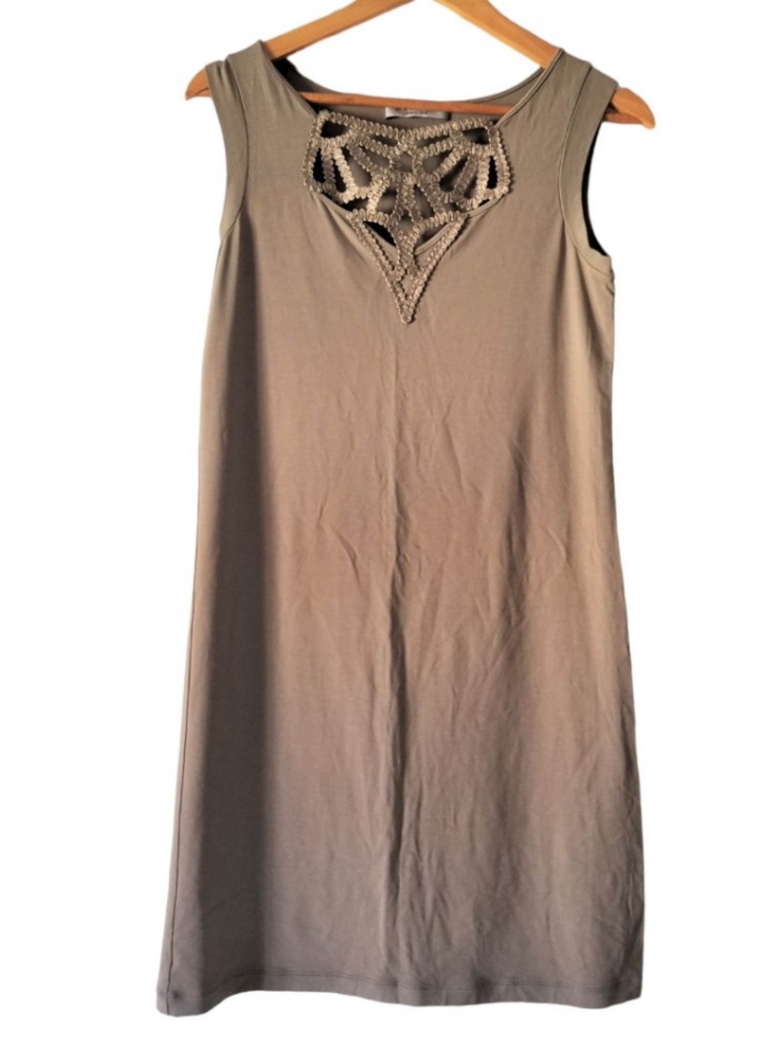 Short sleeveless dress from the D.Exterior brand in brown with trimmings on the neck. It is unworn with its tag. It is a size L (42). Made with 100% polyester.