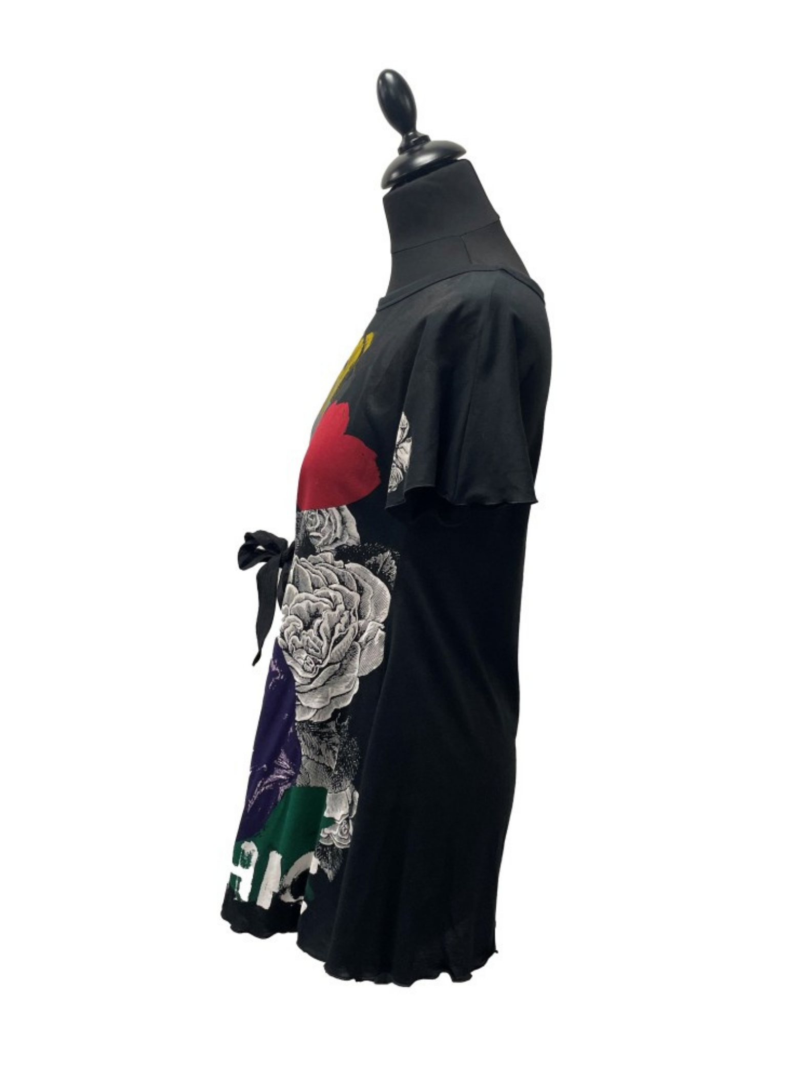 Multicolored dress from the Moschino brand with short sleeves, with ribbon to tie at the waist. It is a size M (40). This dress has no signs of wear.
