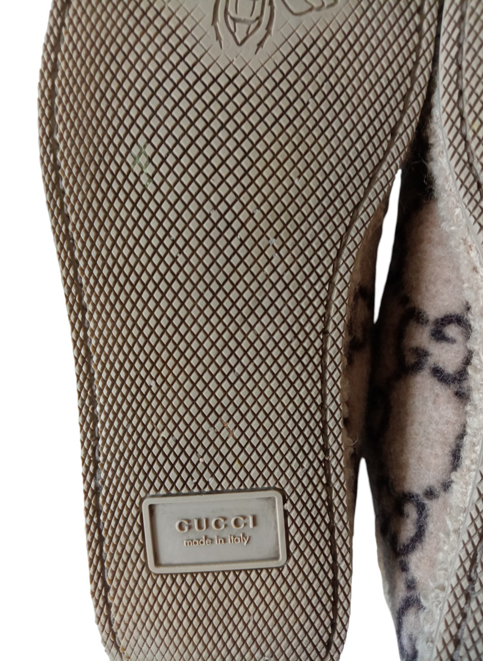 Botas o botines de Gucci,modelo "Fria",de lana y oveja,con el monograma GG y detalle Horsebit en metal dorado típico de la firma.Numero 39.Usadas,pero bien conservadas.Buen estado.Muy cómodas.