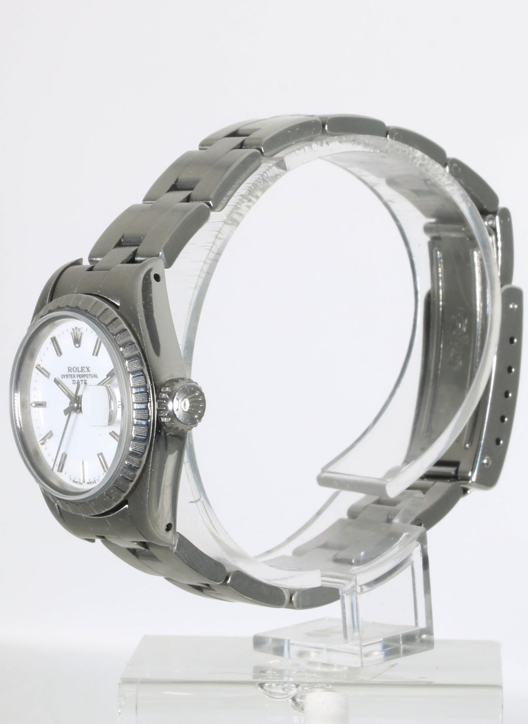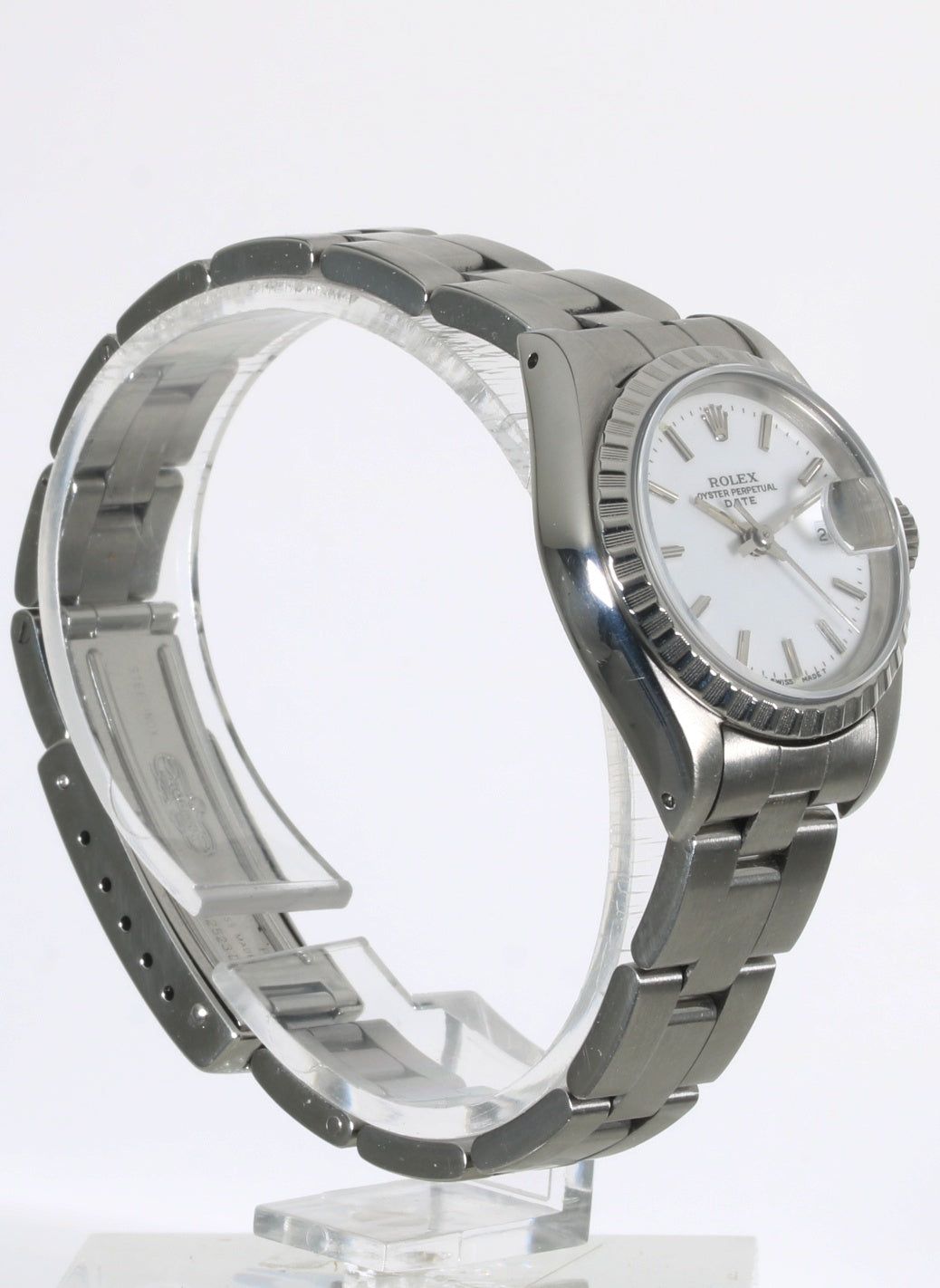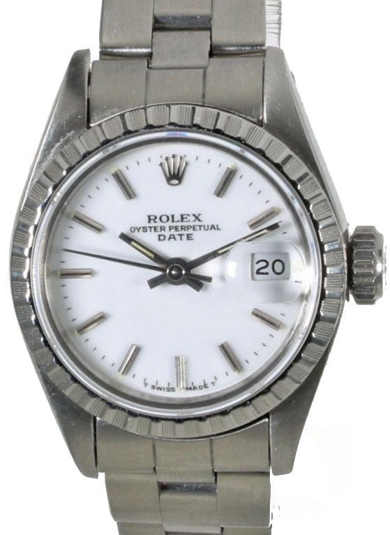 Rolex de señora referencia 69240 de 1989 con caja de acero de 26mm y cristal de zafiro. Movimiento automático con función de fecha. Esfera blanca en excelente estado. Brazalete de acero original Rolex con doce eslabones para muñecas de hasta 16cm. Incluye la garantía original y caja.