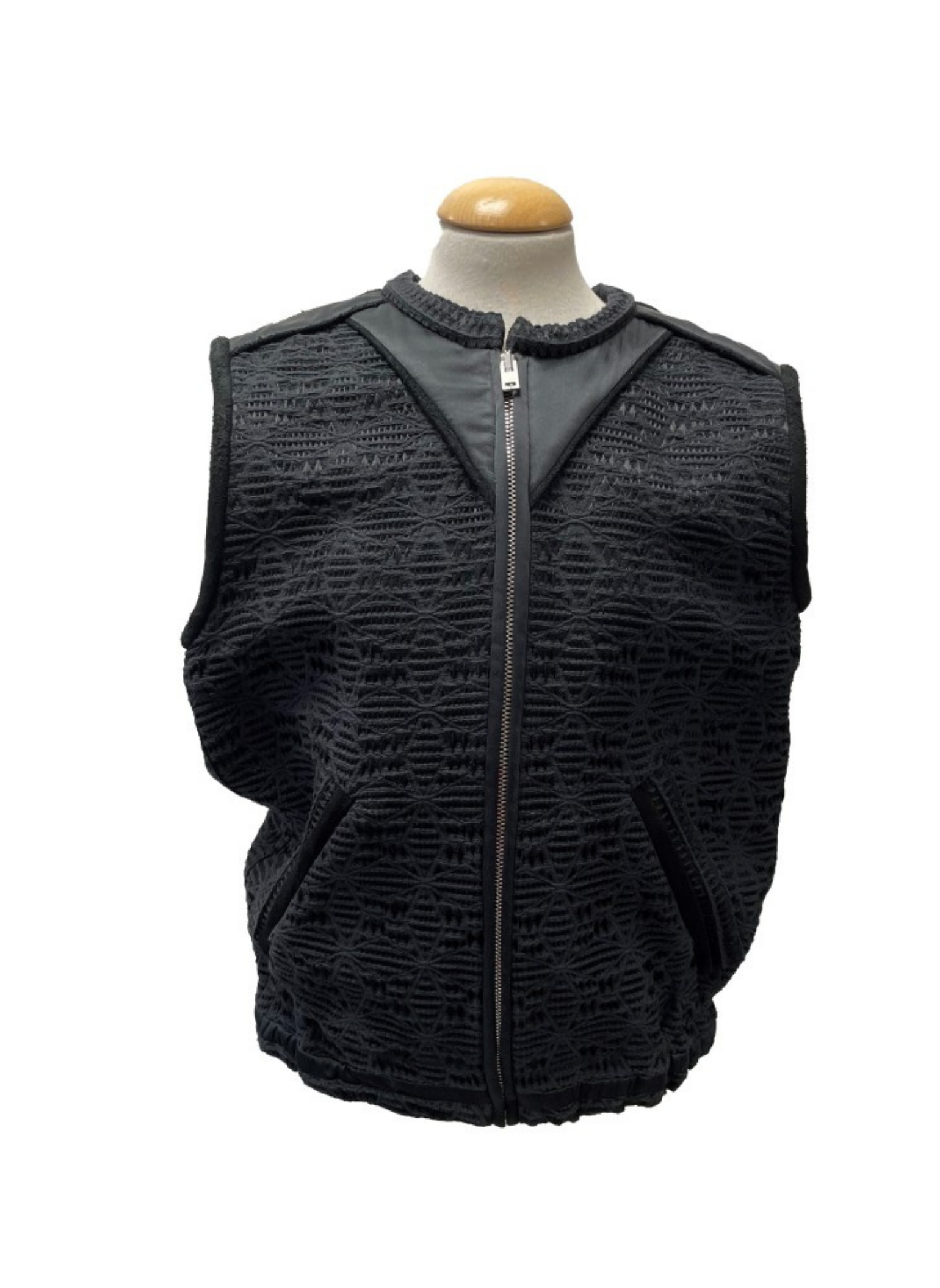 Chaleco de mujer de color negro y de la marca Iro. Sin mangas y con una cremallera central. Este chaleco es de la talla 36. Este chaleco no presenta ninguna señal de uso.