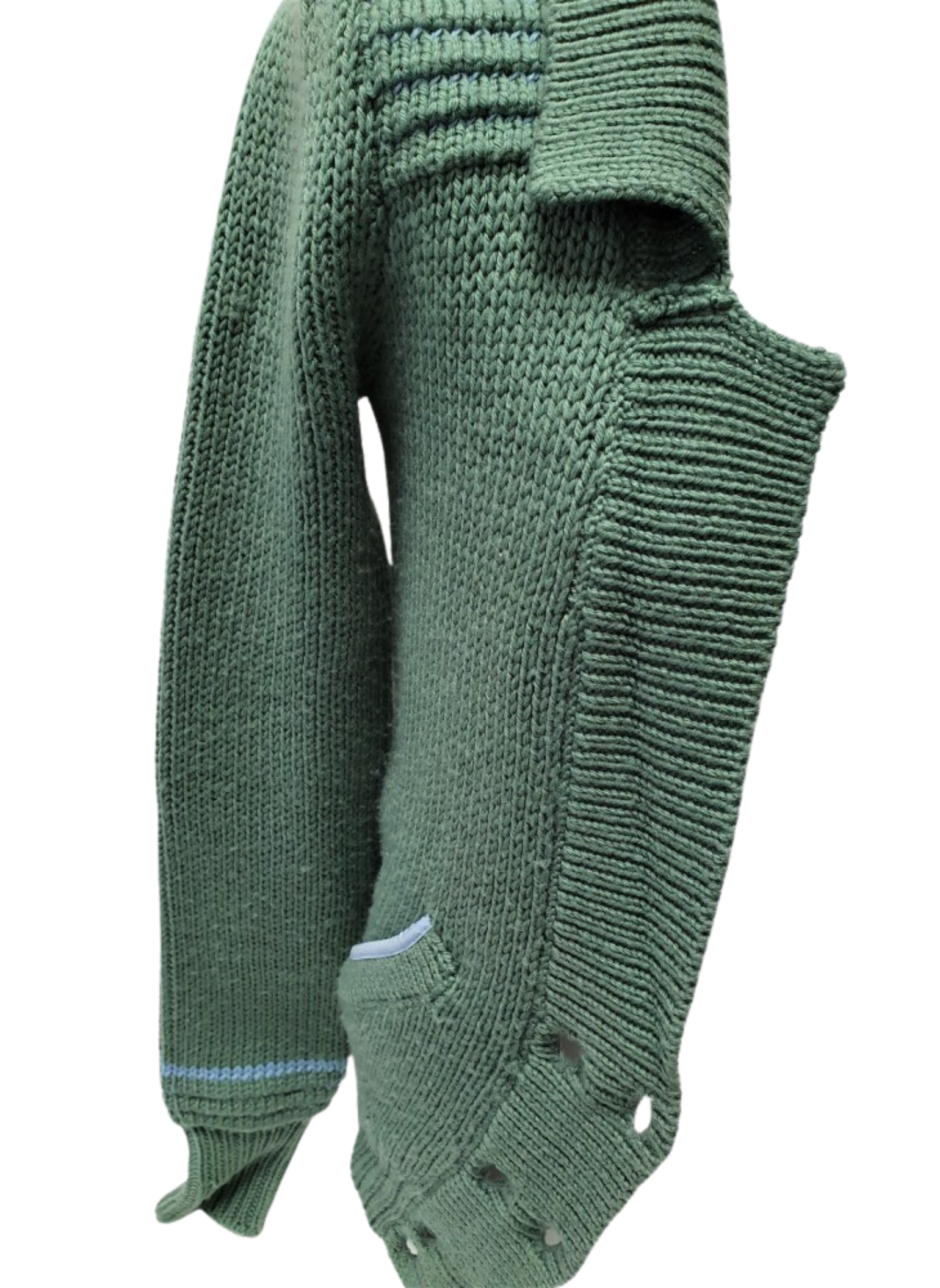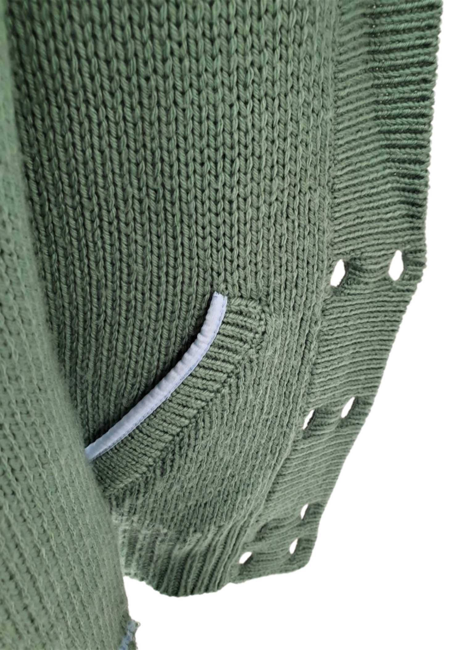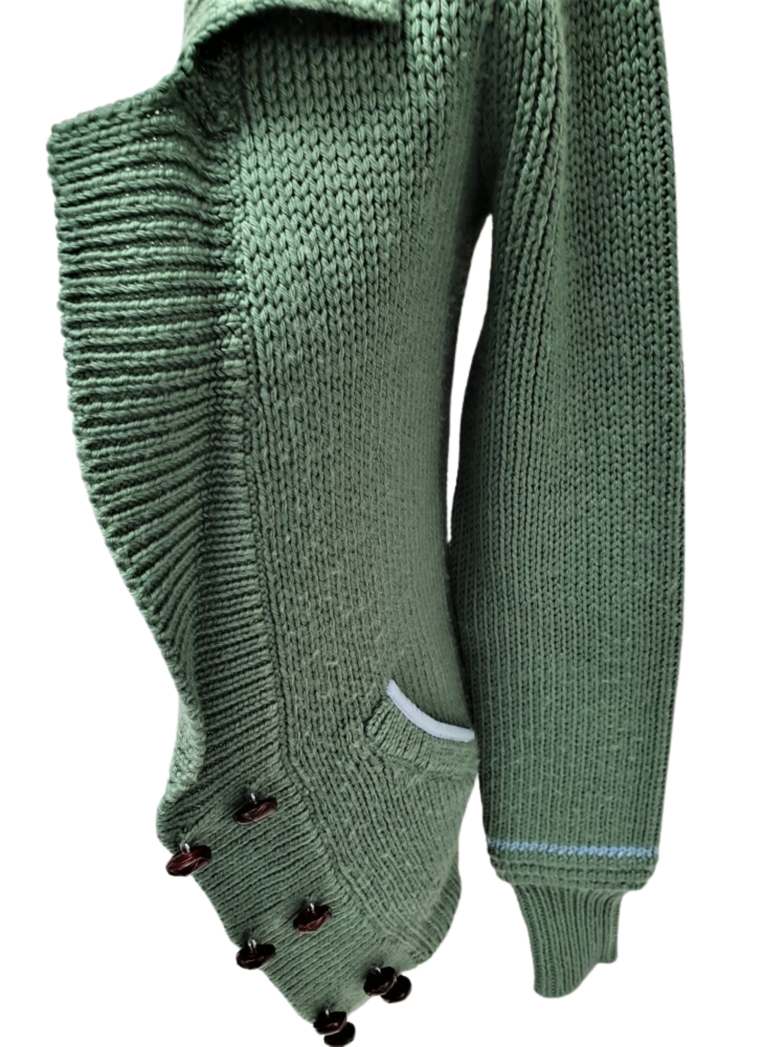 Chaqueta 100% elaborada con lana de la Marc Jacobs y de color verde con detalles color azul. Contiene unos botones trenzados de cuero marrón. Es una talla XS (36). Está chaqueta no presenta ningún tipo de señal de uso.