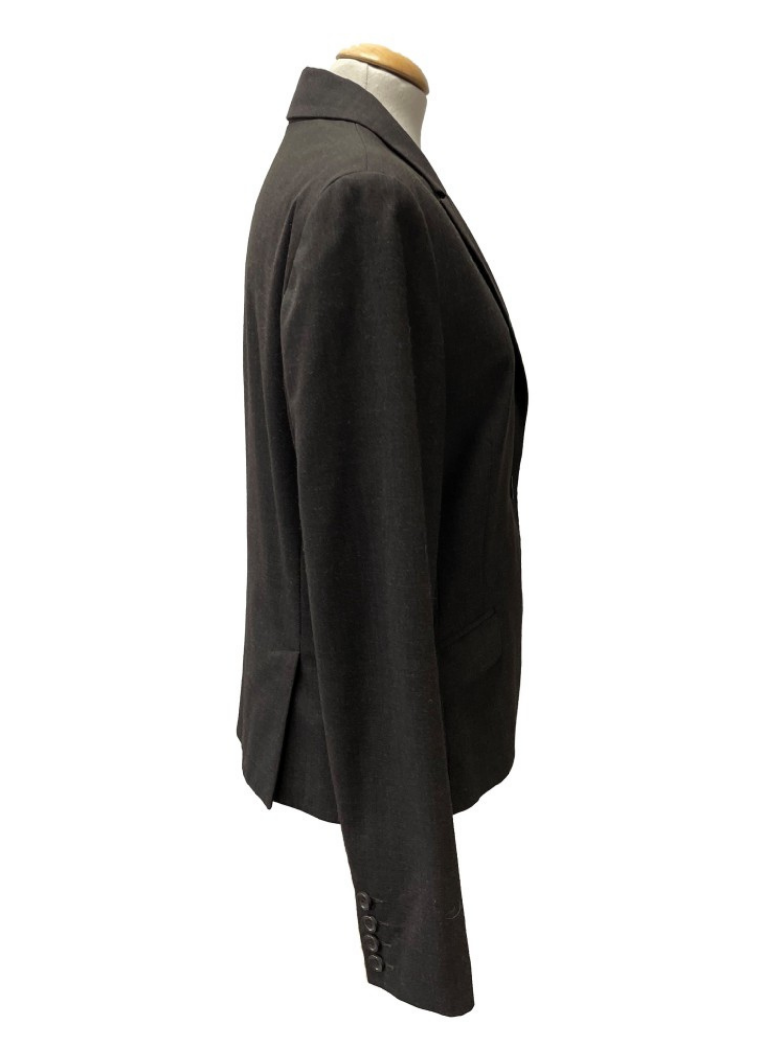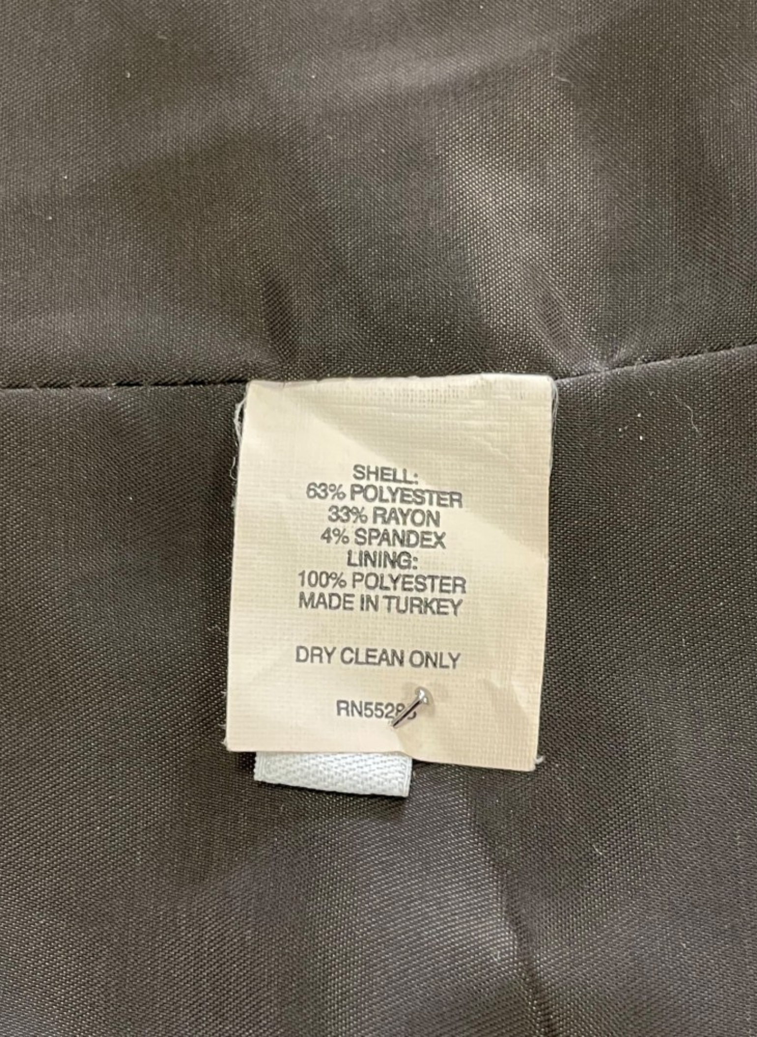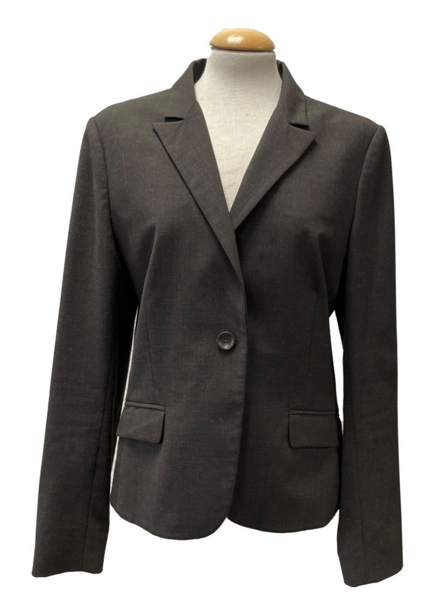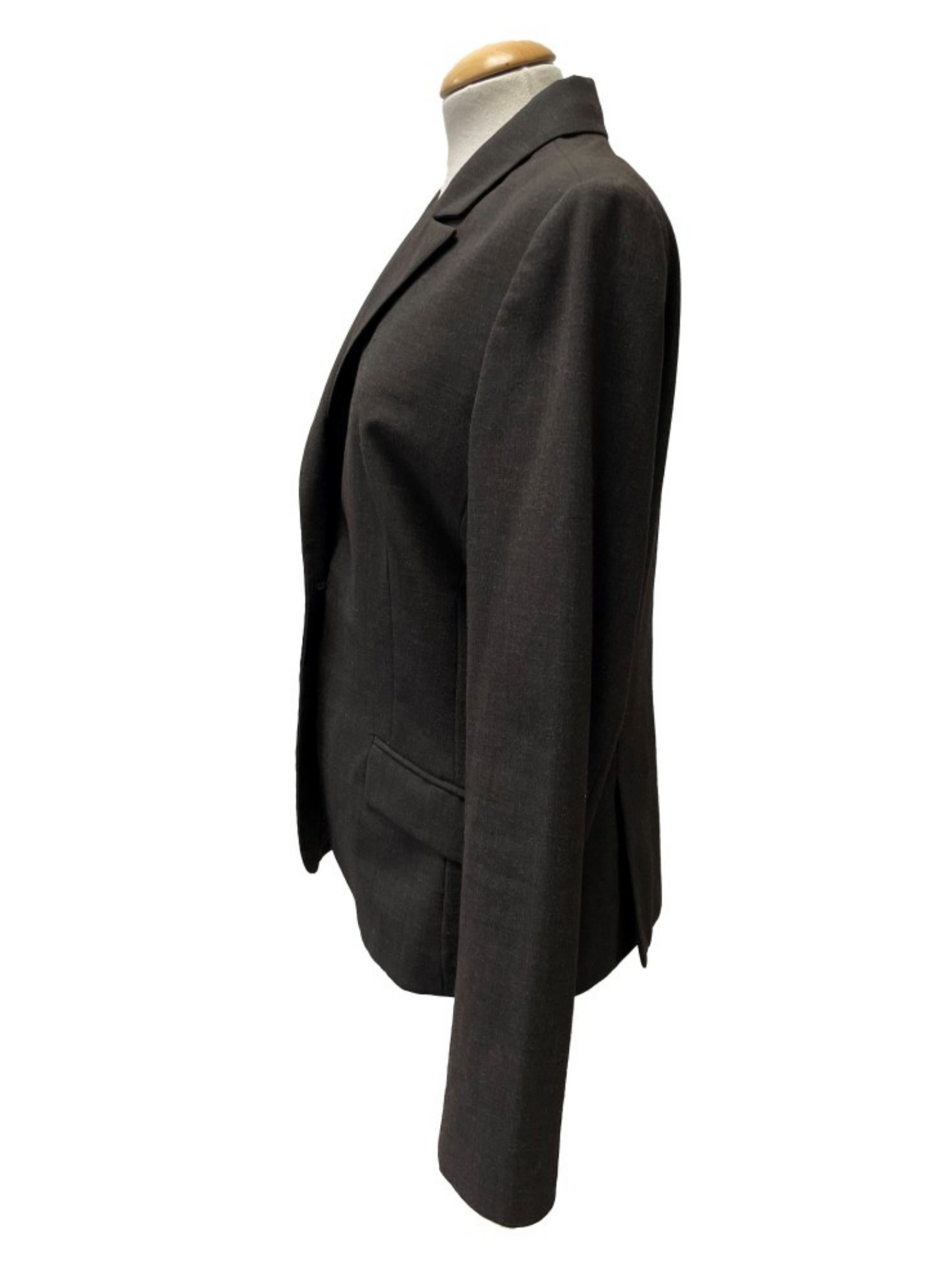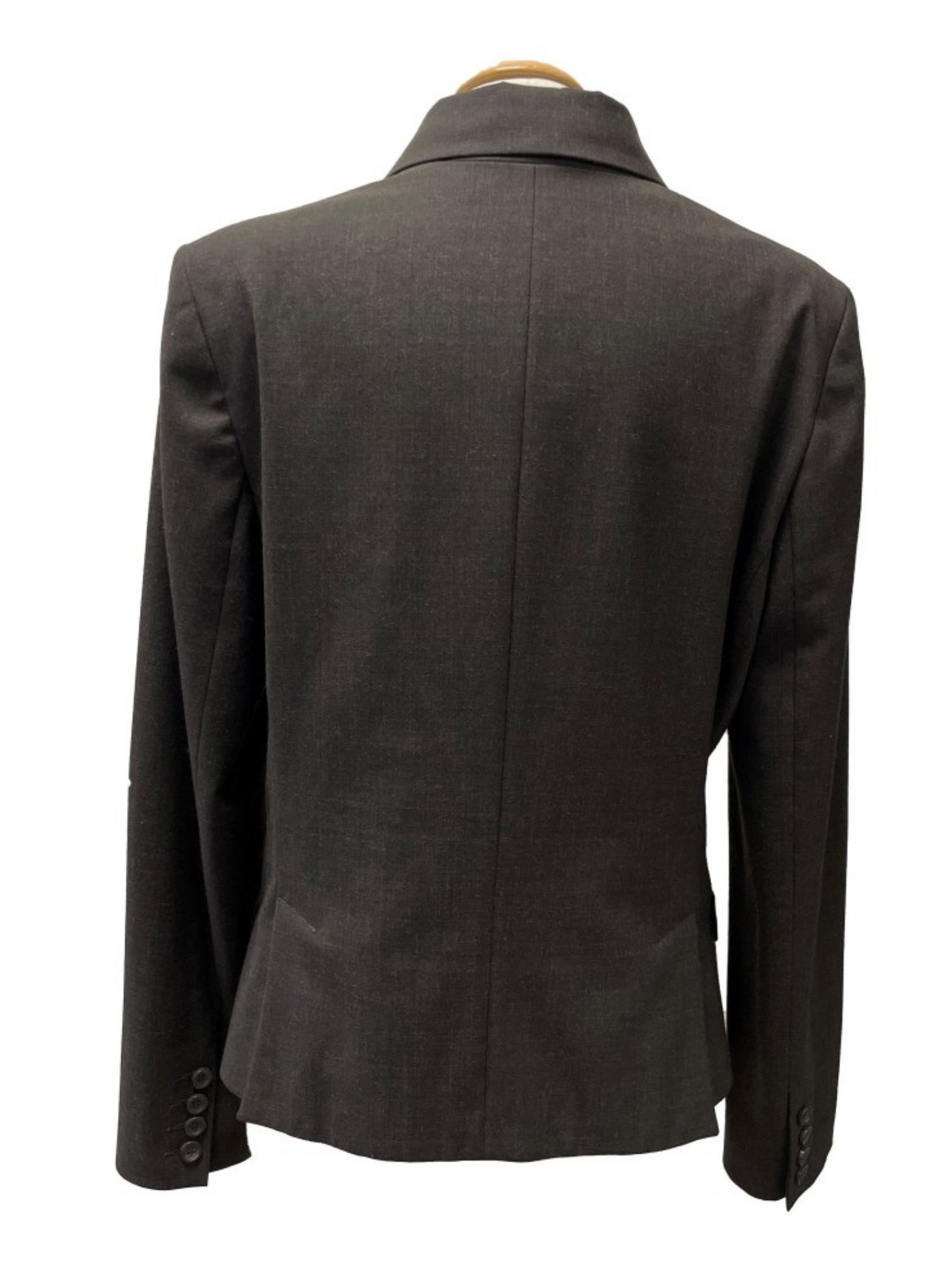 Chaqueta de la marca Express Desing Studio de color marrón de mujer, con dos bolsillos a nivel inferior derecho e izquierdo. Es una Talla 32. Esta chaqueta no presenta ninguna señal de uso.