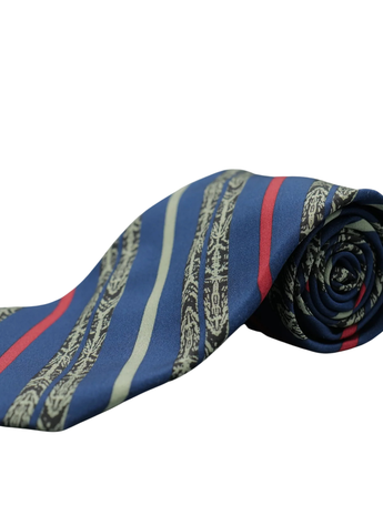 Corbata azul a rayas rojas y grises de la marca Trussardi.
