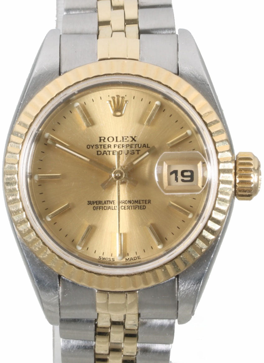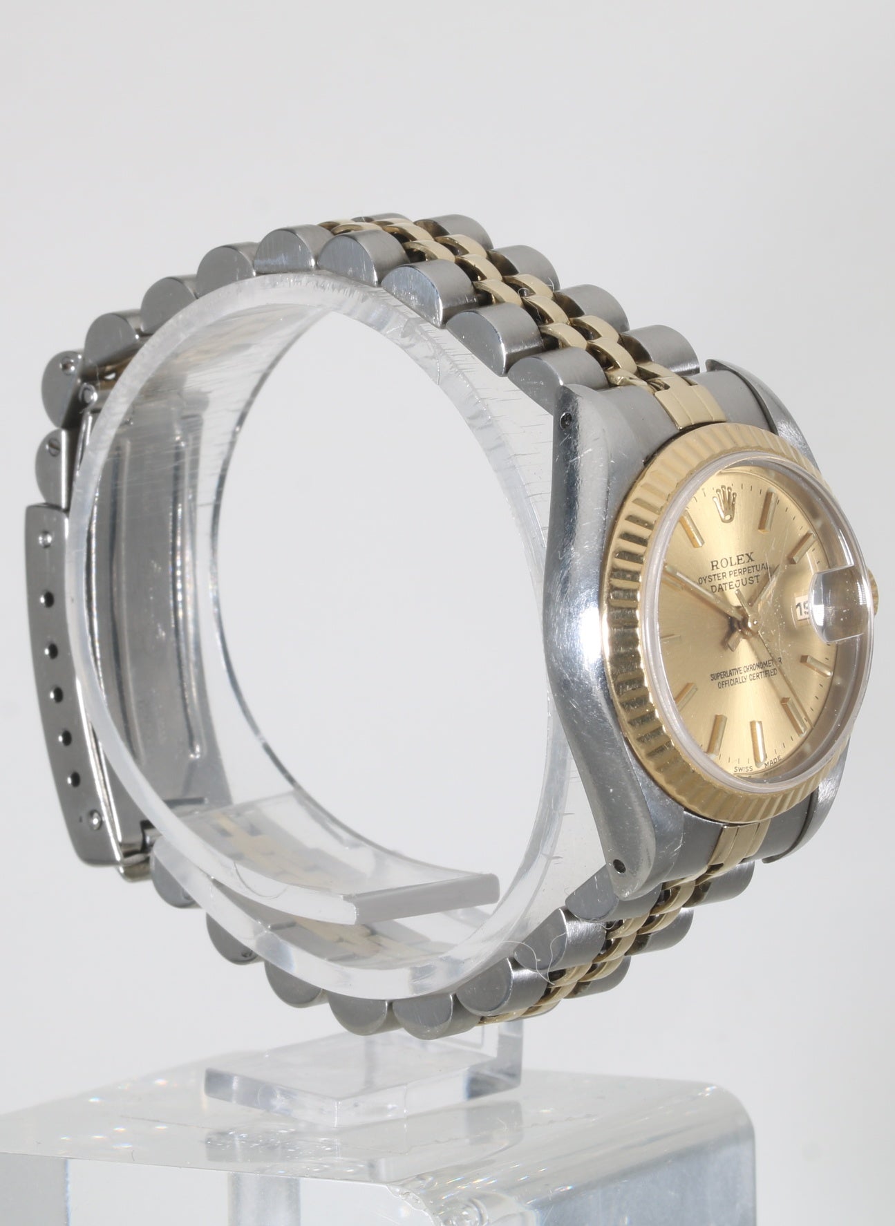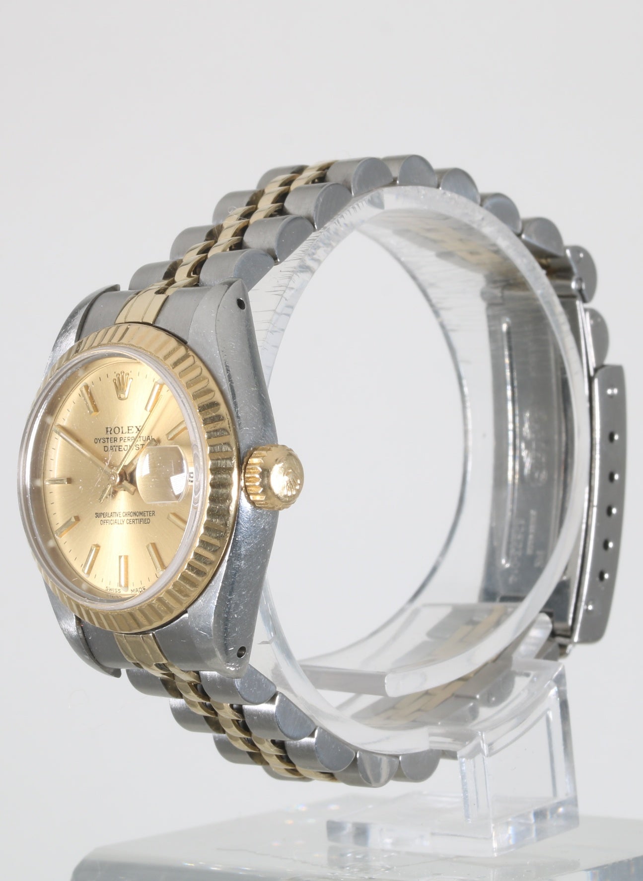 Rolex Datejust referencia 69173 de 1989 caja de acero y oro de 18kt de 26mm con cristal de zafiro. Esfera color champagne. Movimiento automático funcionando. Brazalete Rolex Jubilee de acero y oro para muñeca de 14,5 cm. El reloj está en buen estado.