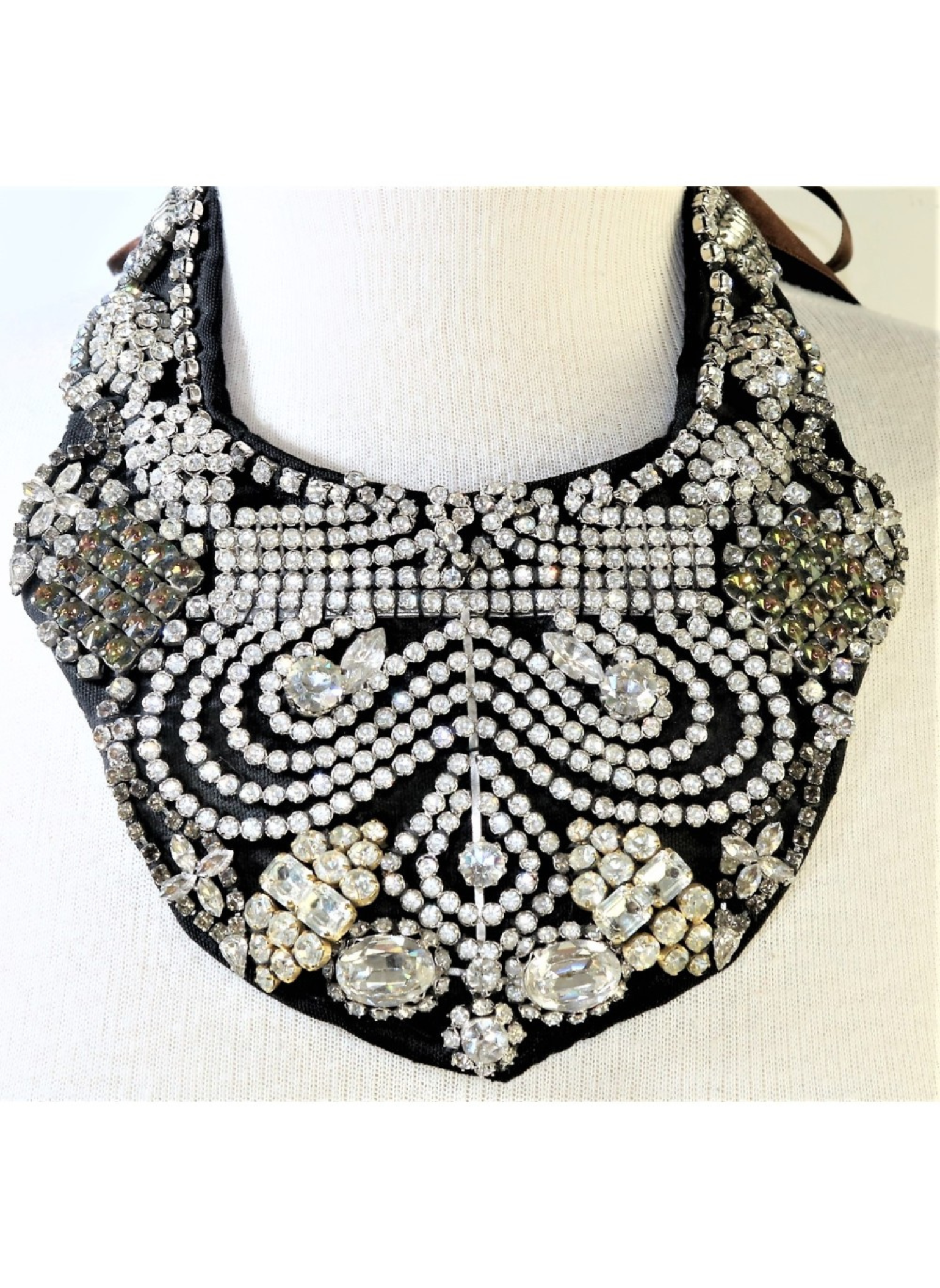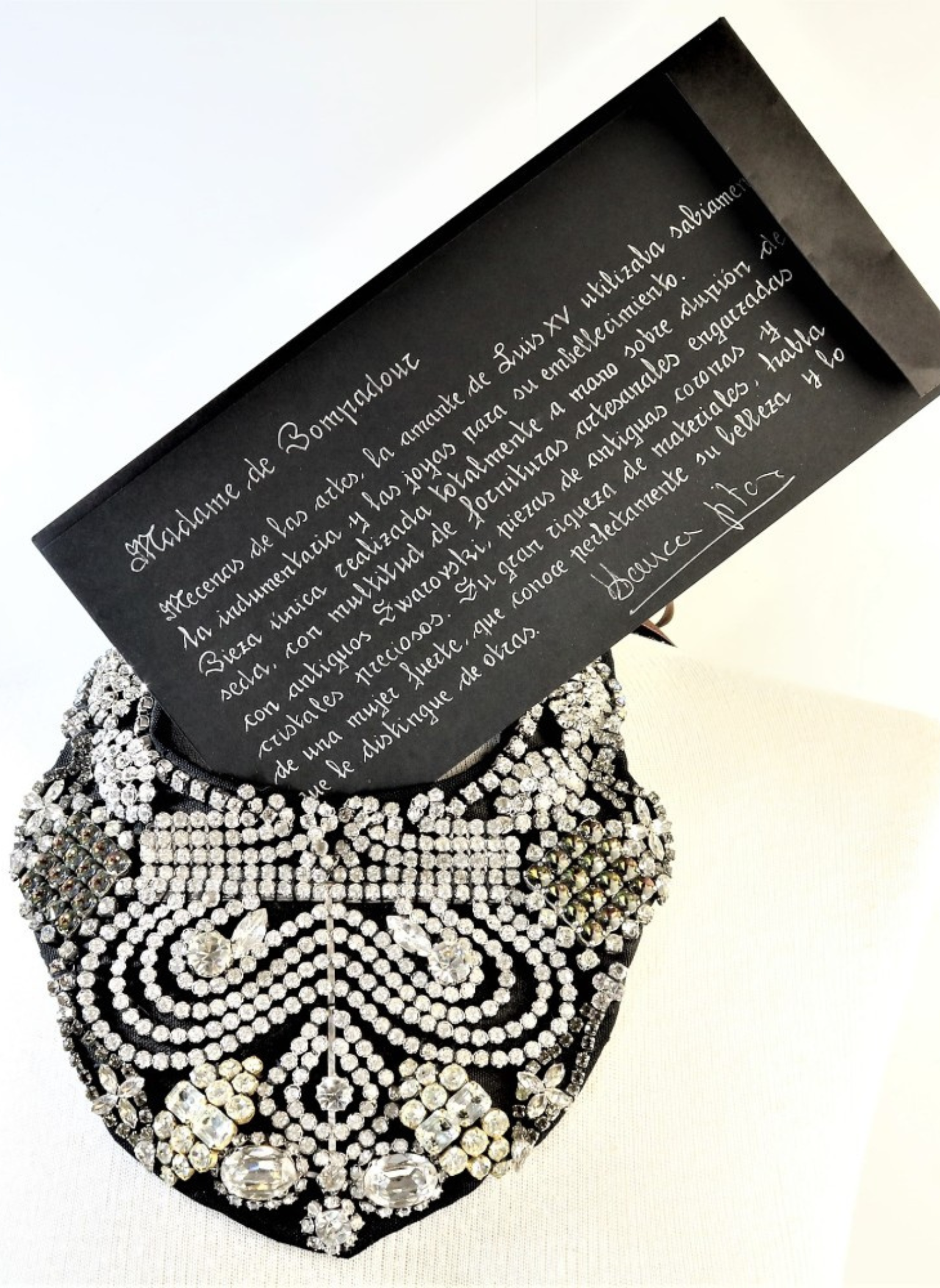 Collar de Blanca Fitera Madame Pompadouren cristales de Swarovsky en tela con lazo de seda para cerrar. Con bolsa guardapolvo y certificado de garantía. En muy buen estado.