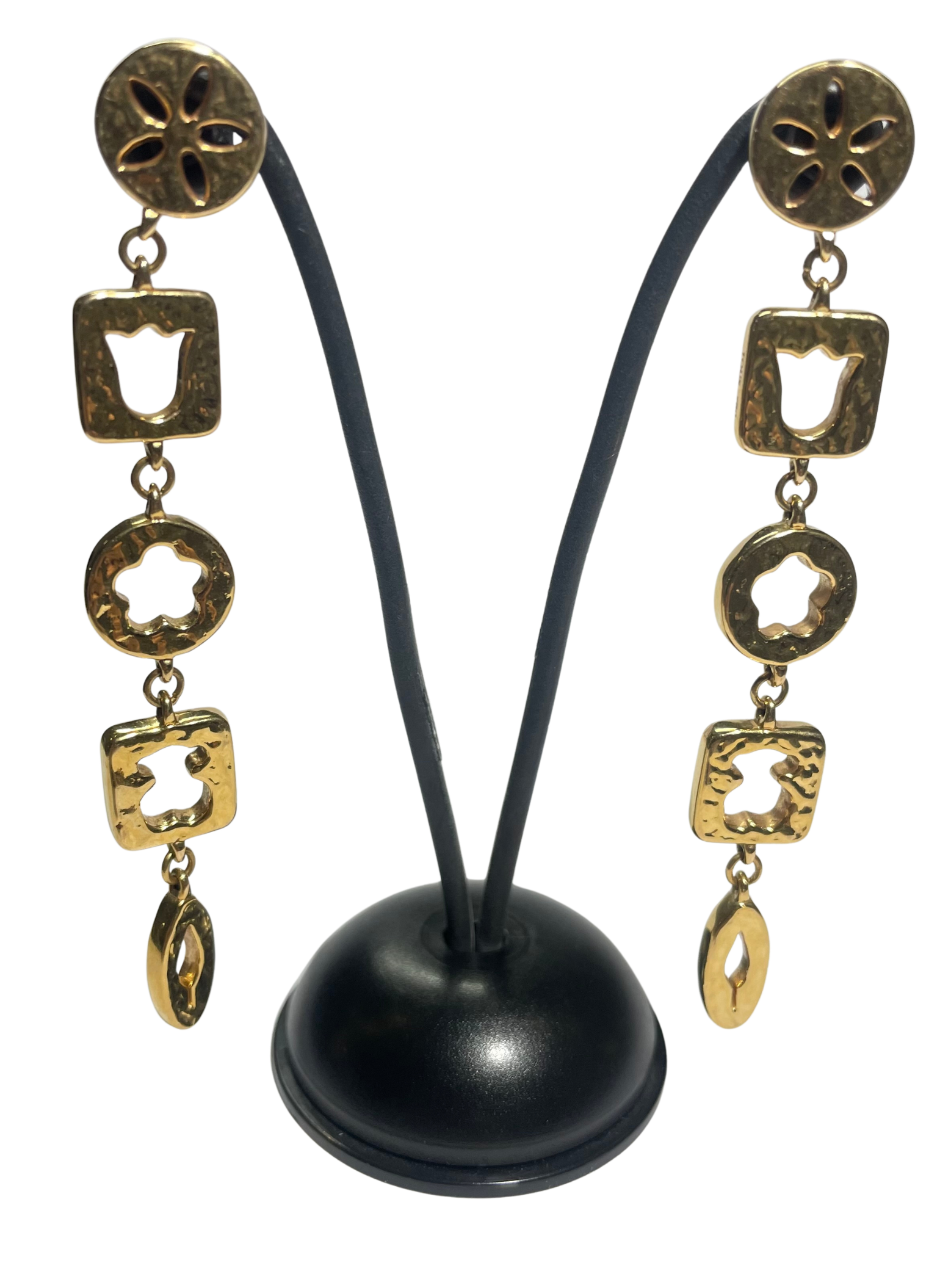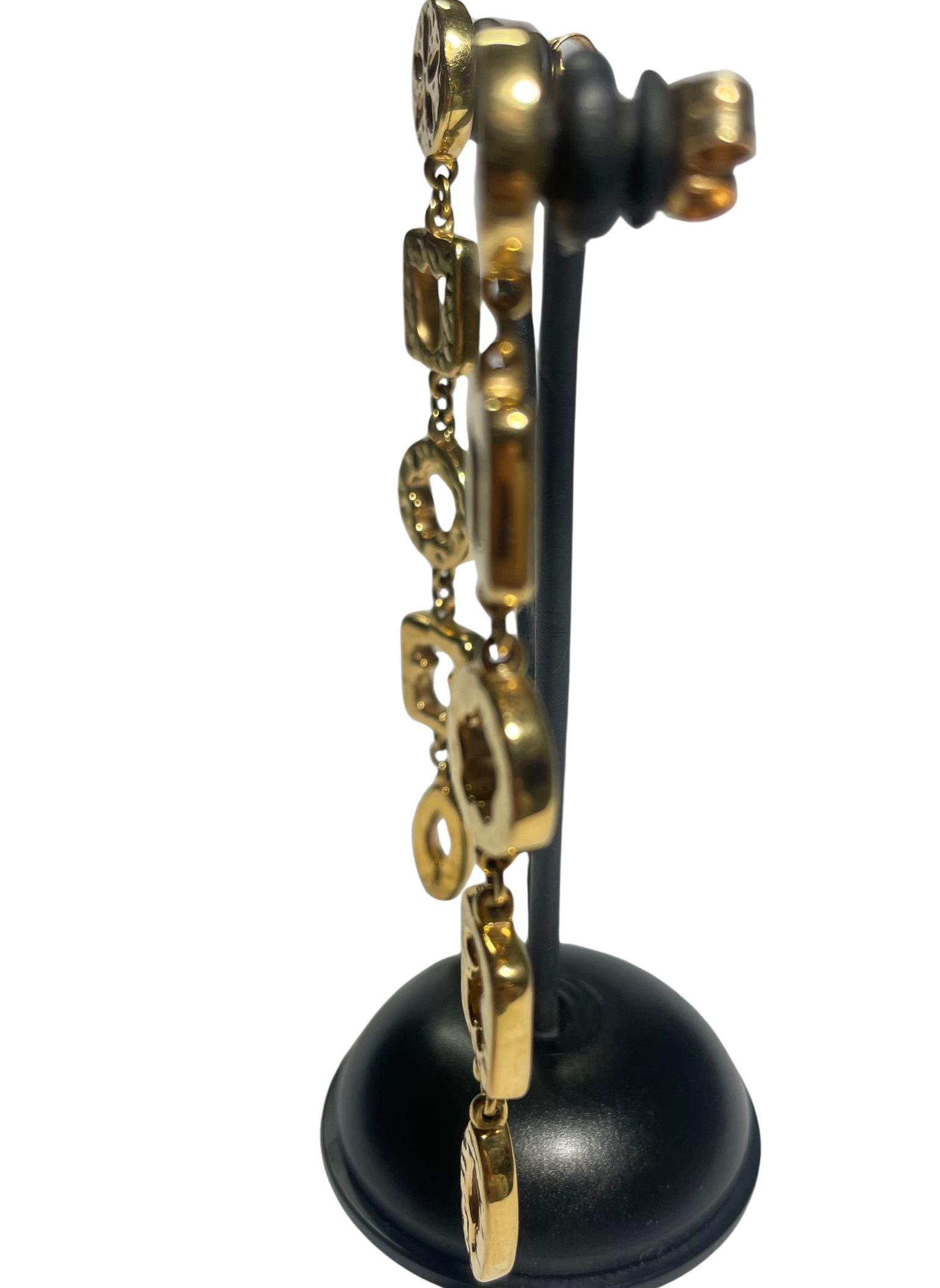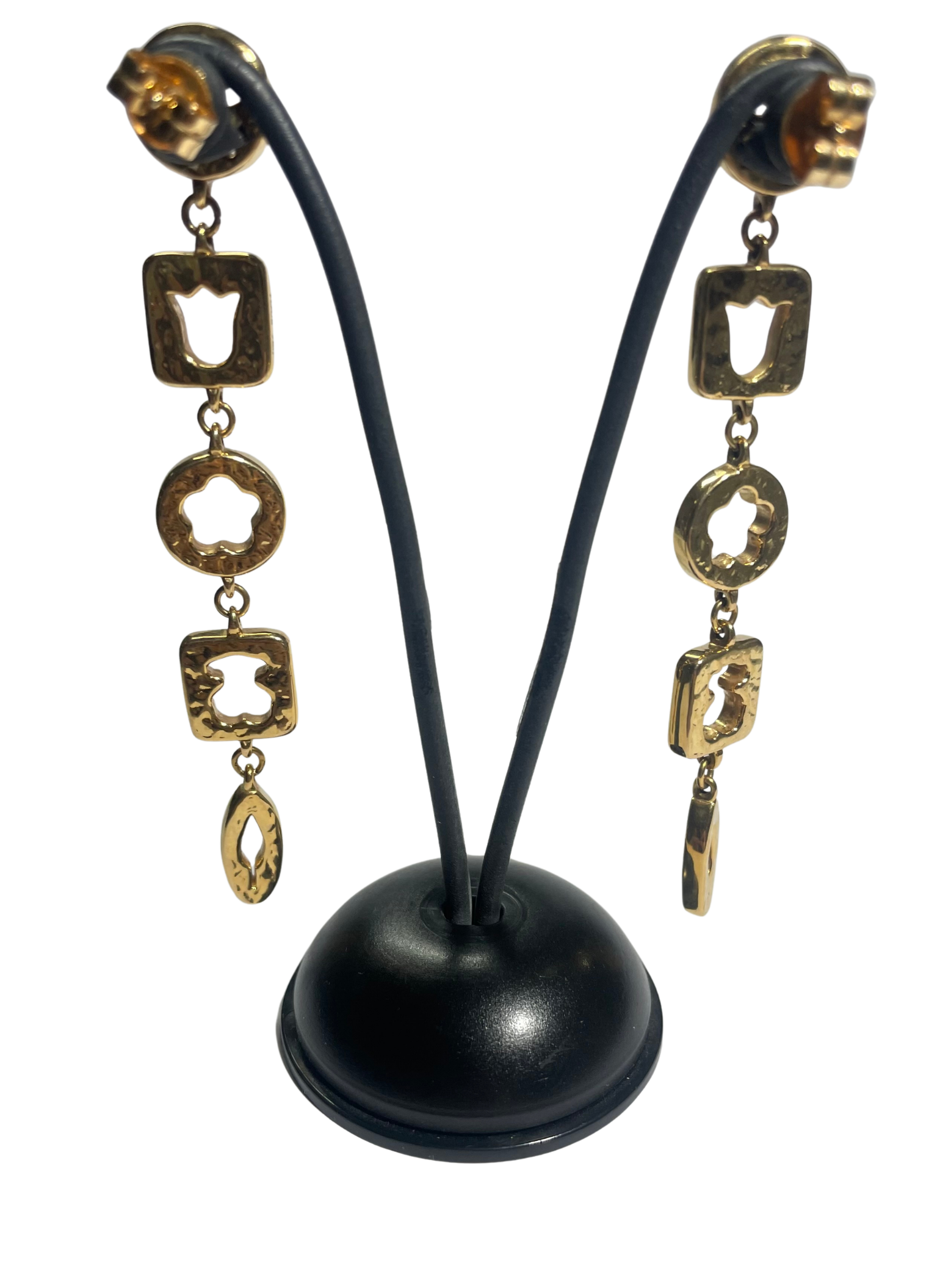 Pendientes largos Tous calados con formas de la firma, osito, tulipán.., montados en oro amarillo 18k. Cierre a presión