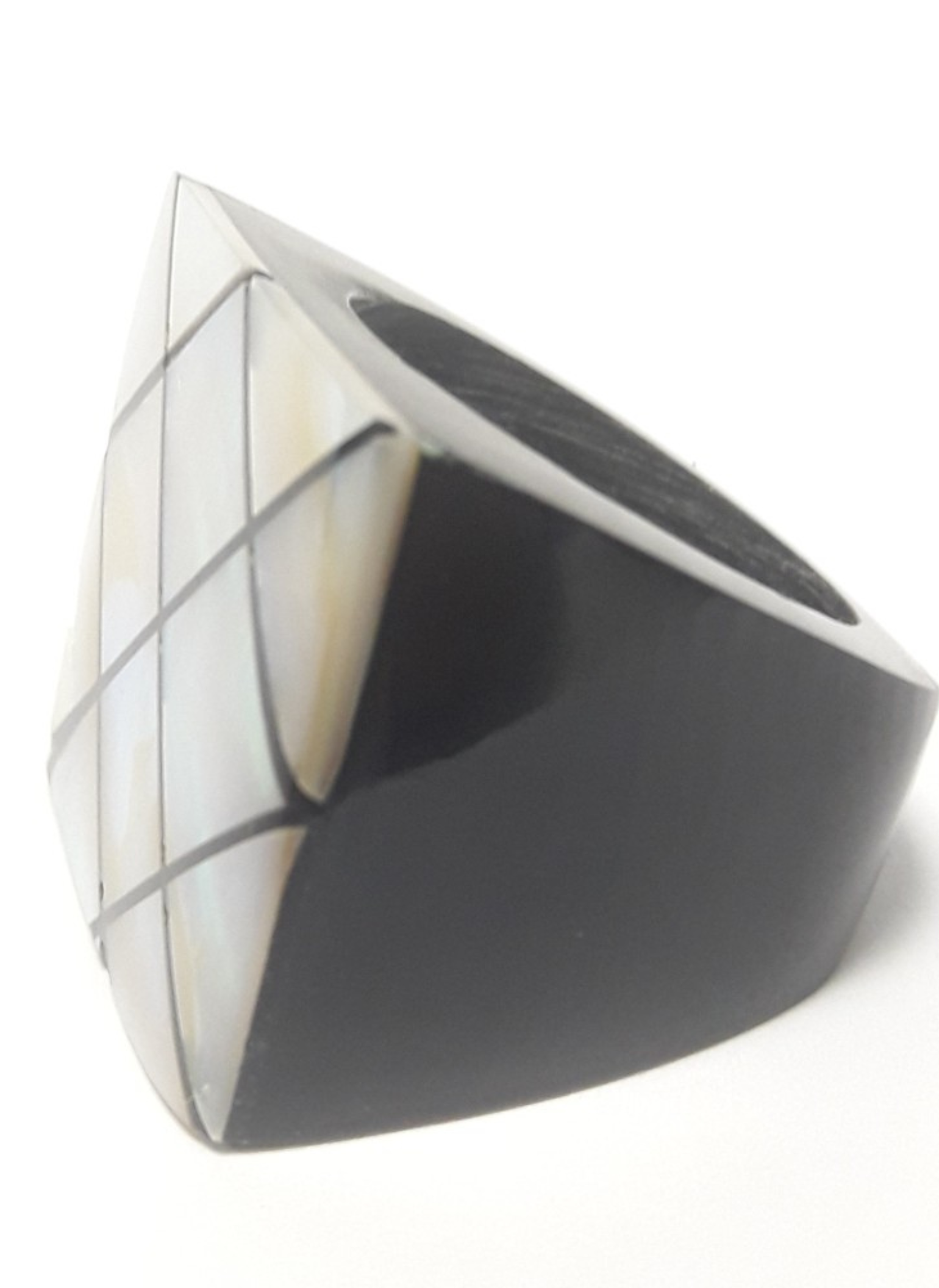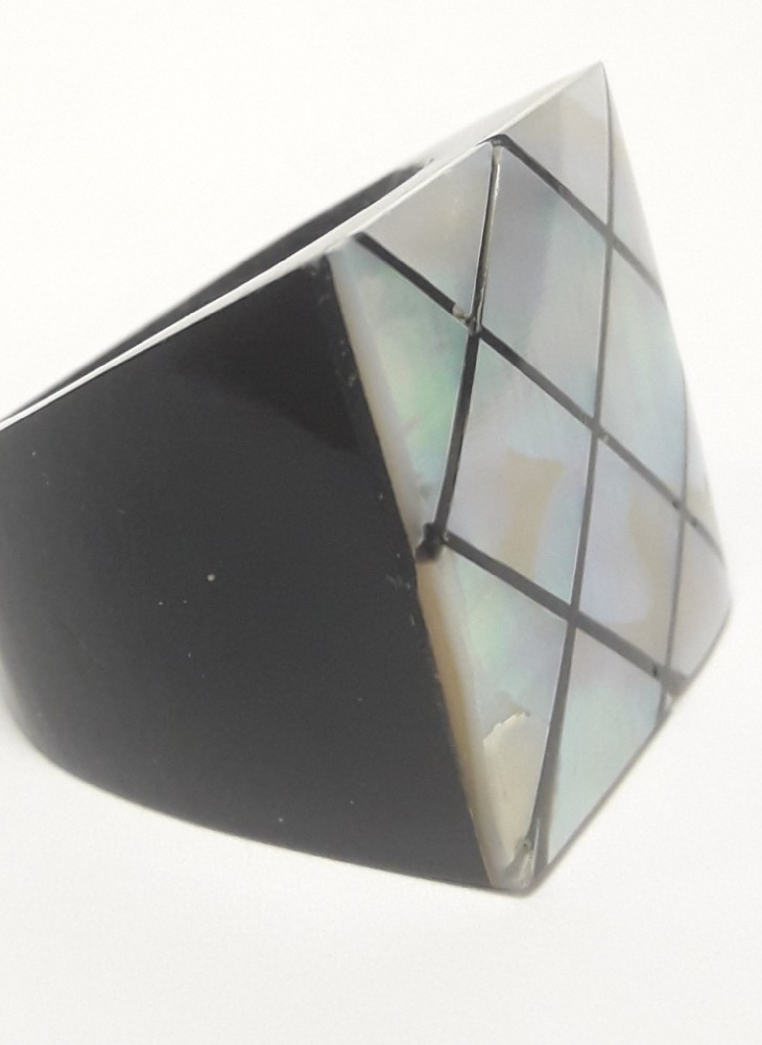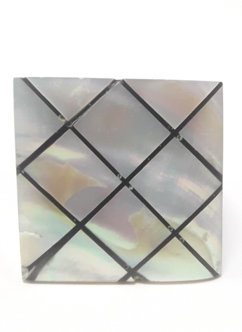 Sortija de madera cuadrada con nacar con diferentes colores.