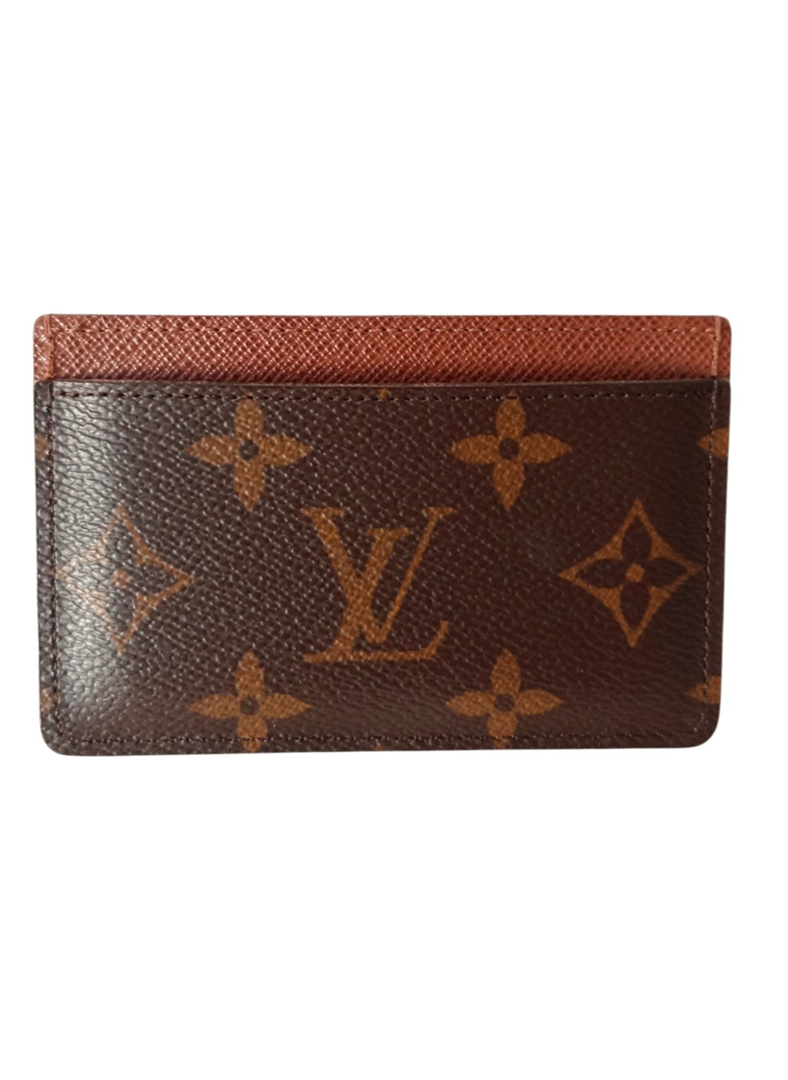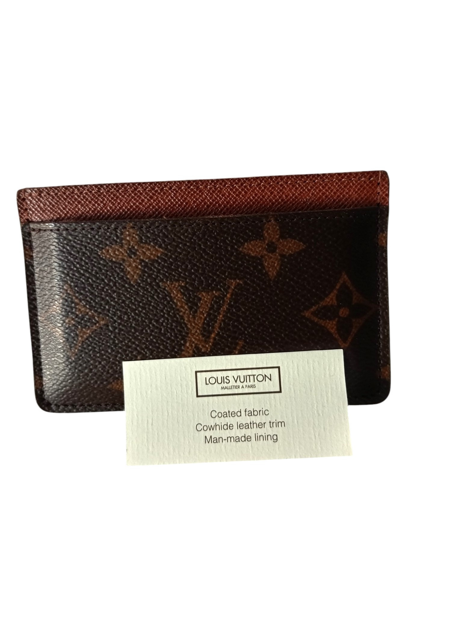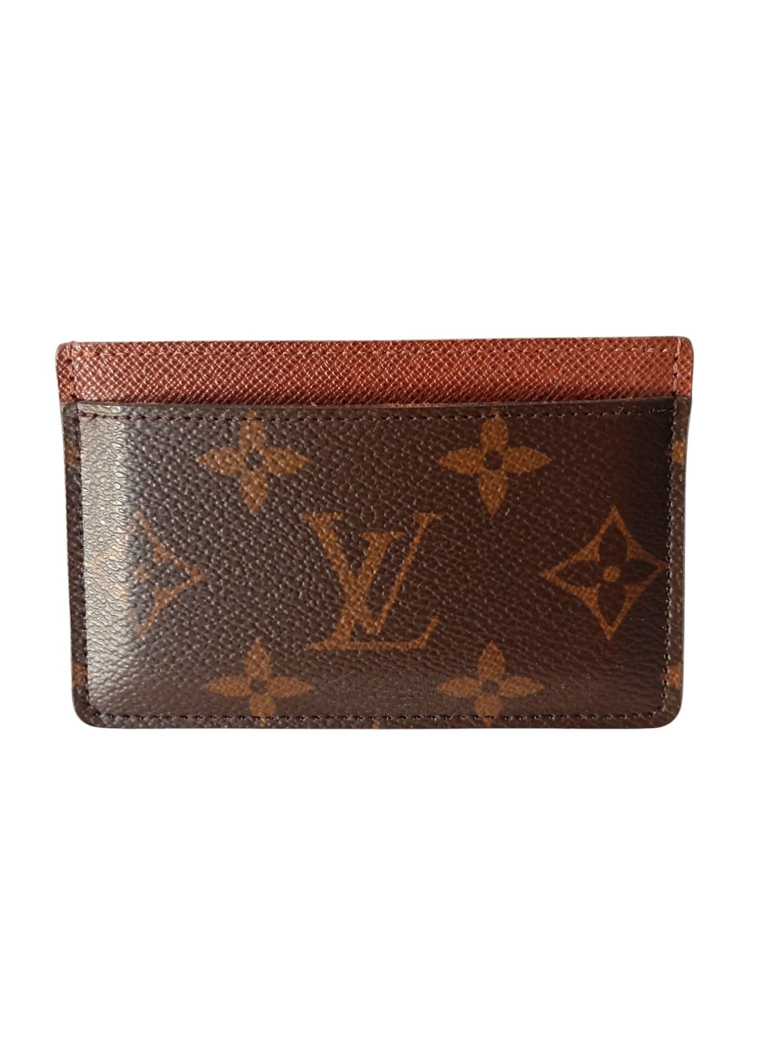 Tarjetero de Louis Vuitton confeccionado en lona monogram marron con interior de piel marron granulada.Tres ranuras para tarjetas.Muy buen estado con su bolsa guardapolvos y caja.Medidas. 11 cms de ancho x 7 cms de alto.